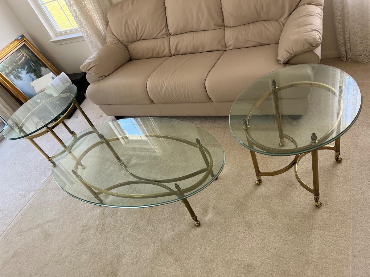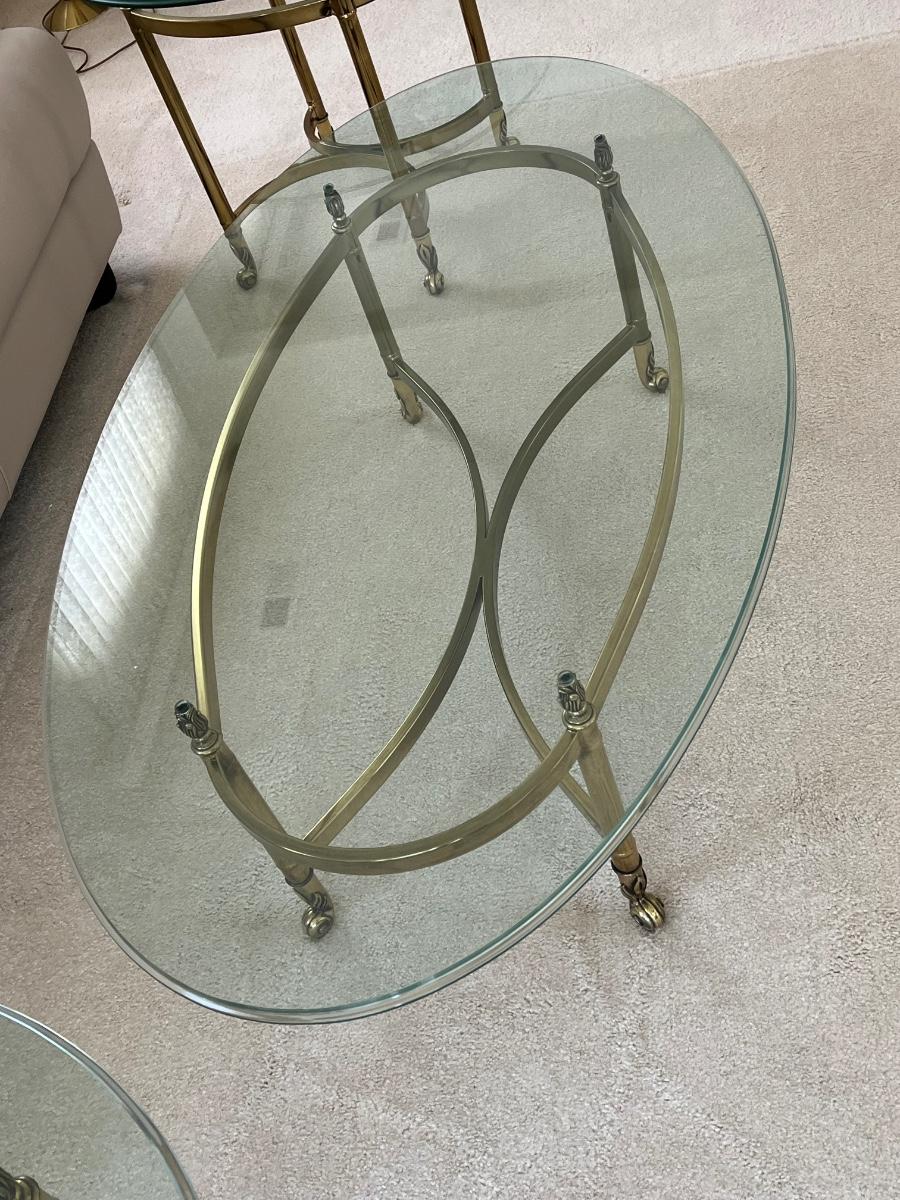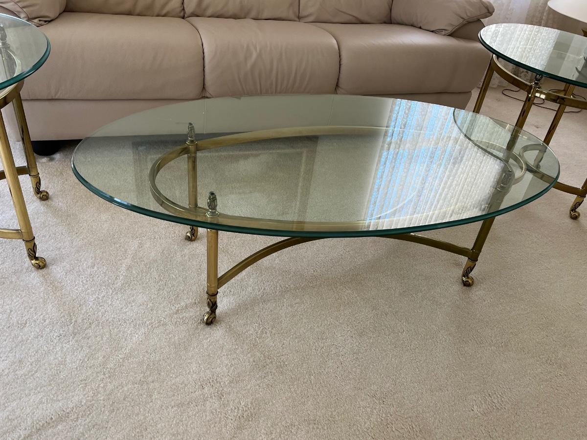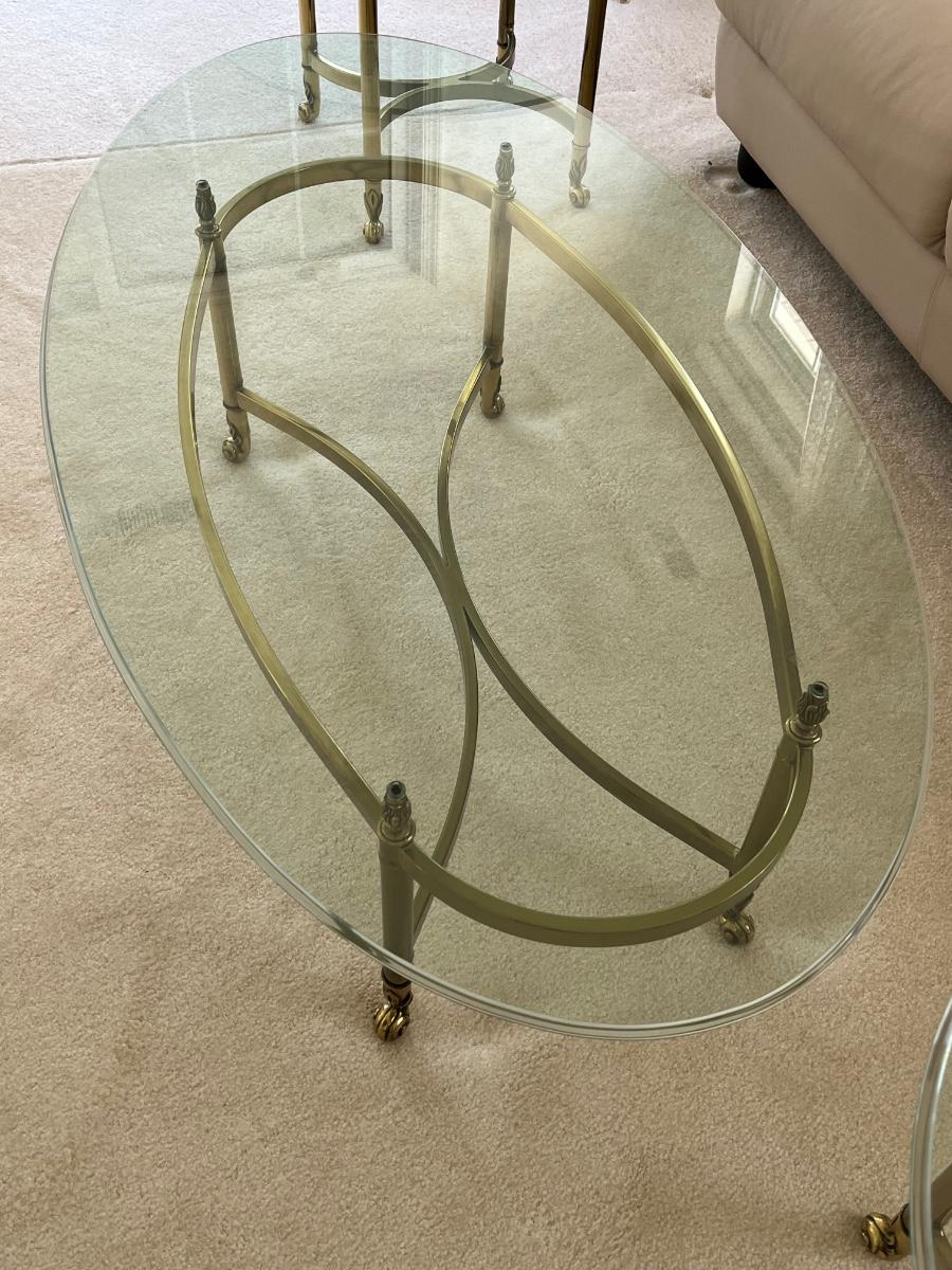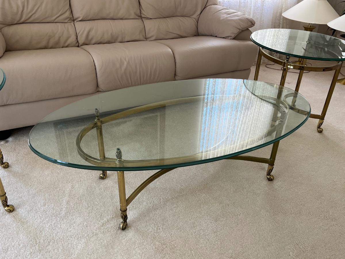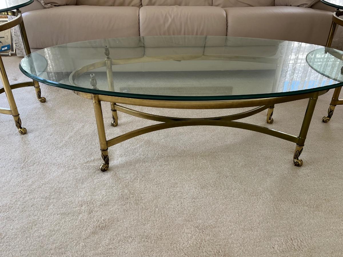 LOT 70X: MCM Hollywood Regency Styled Brass & Glass Coffee Table and End Tables