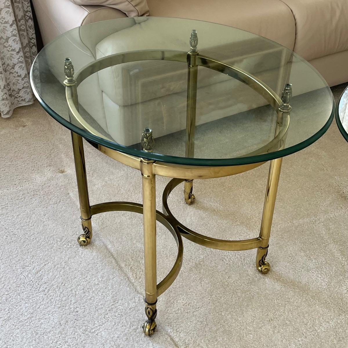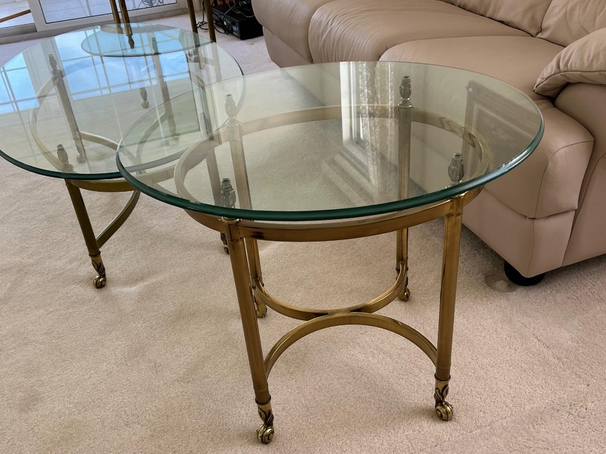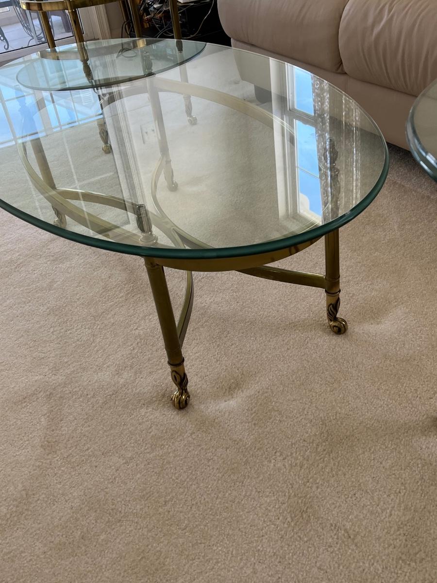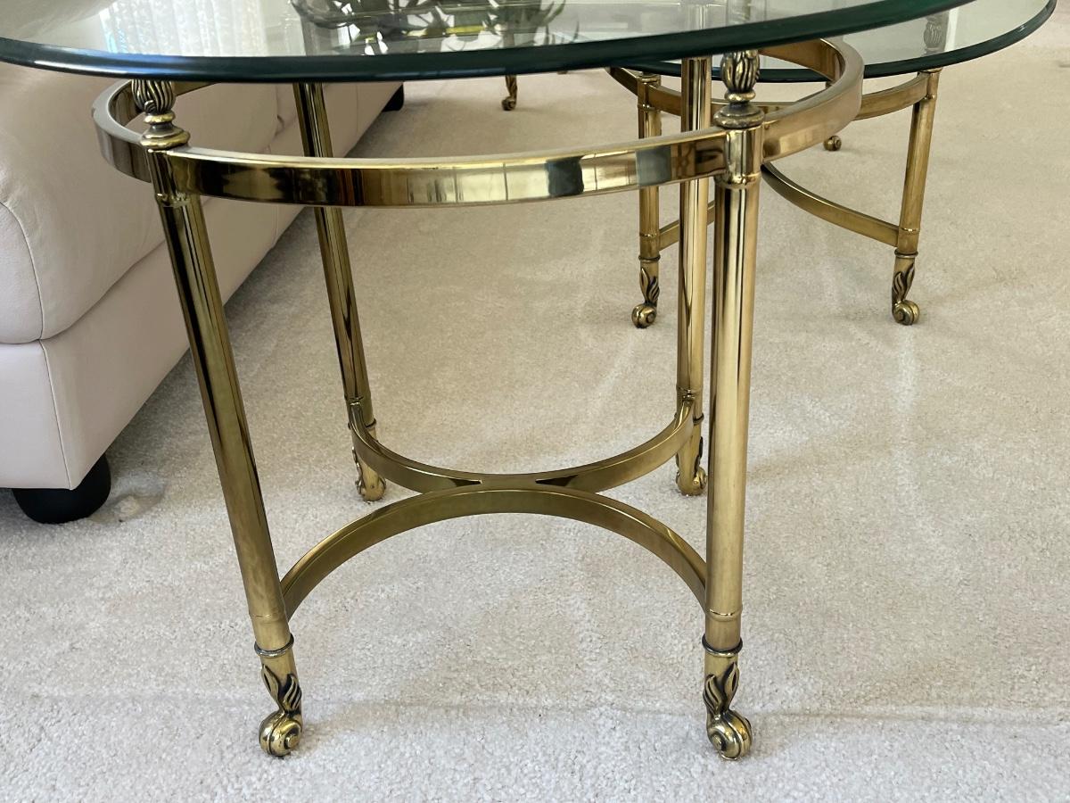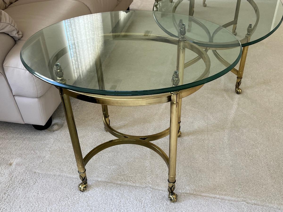 LOT 70X: MCM Hollywood Regency Styled Brass & Glass Coffee Table and End Tables
