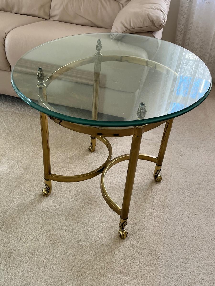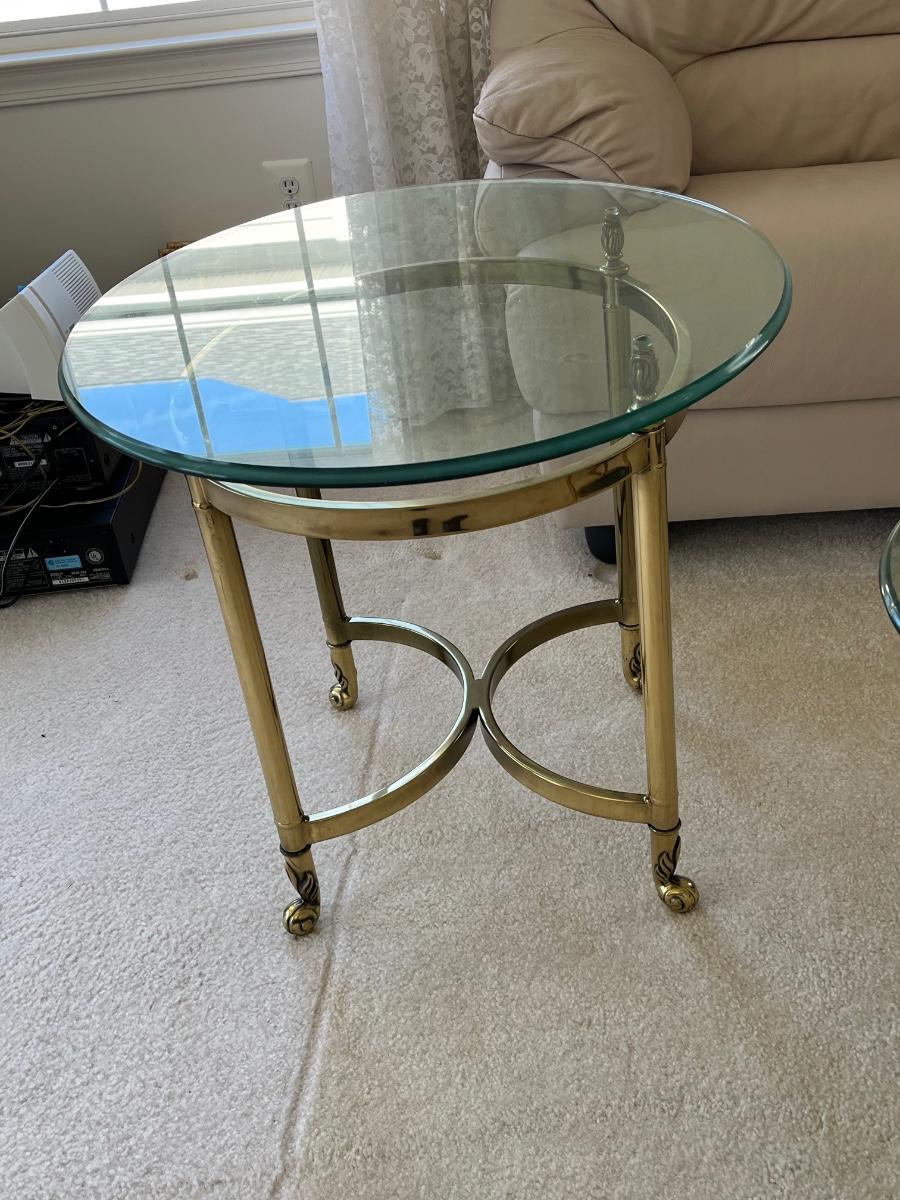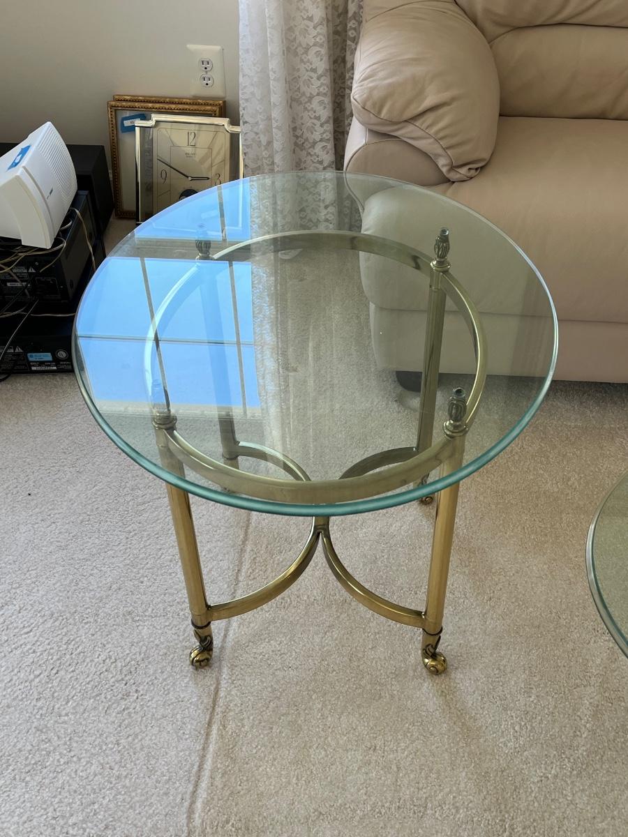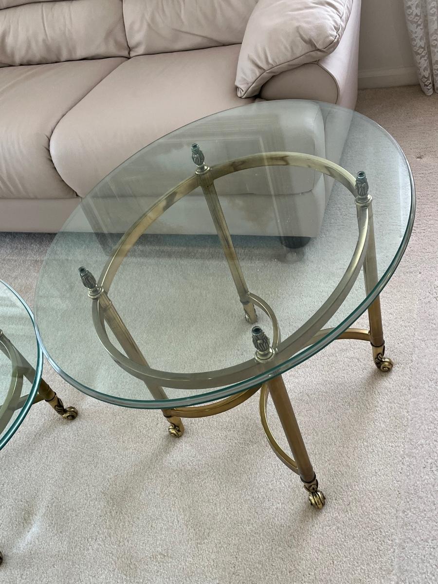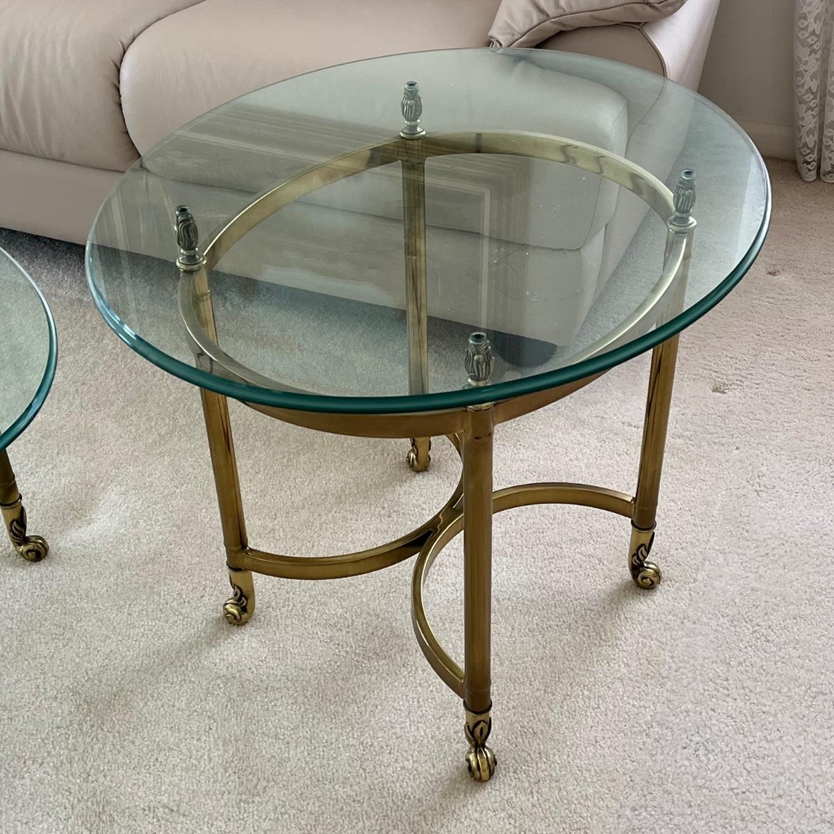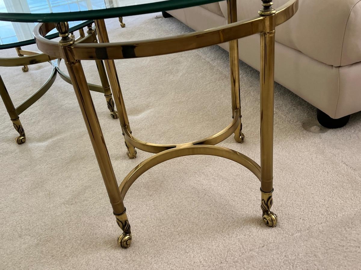 LOT 70X: MCM Hollywood Regency Styled Brass & Glass Coffee Table and End Tables