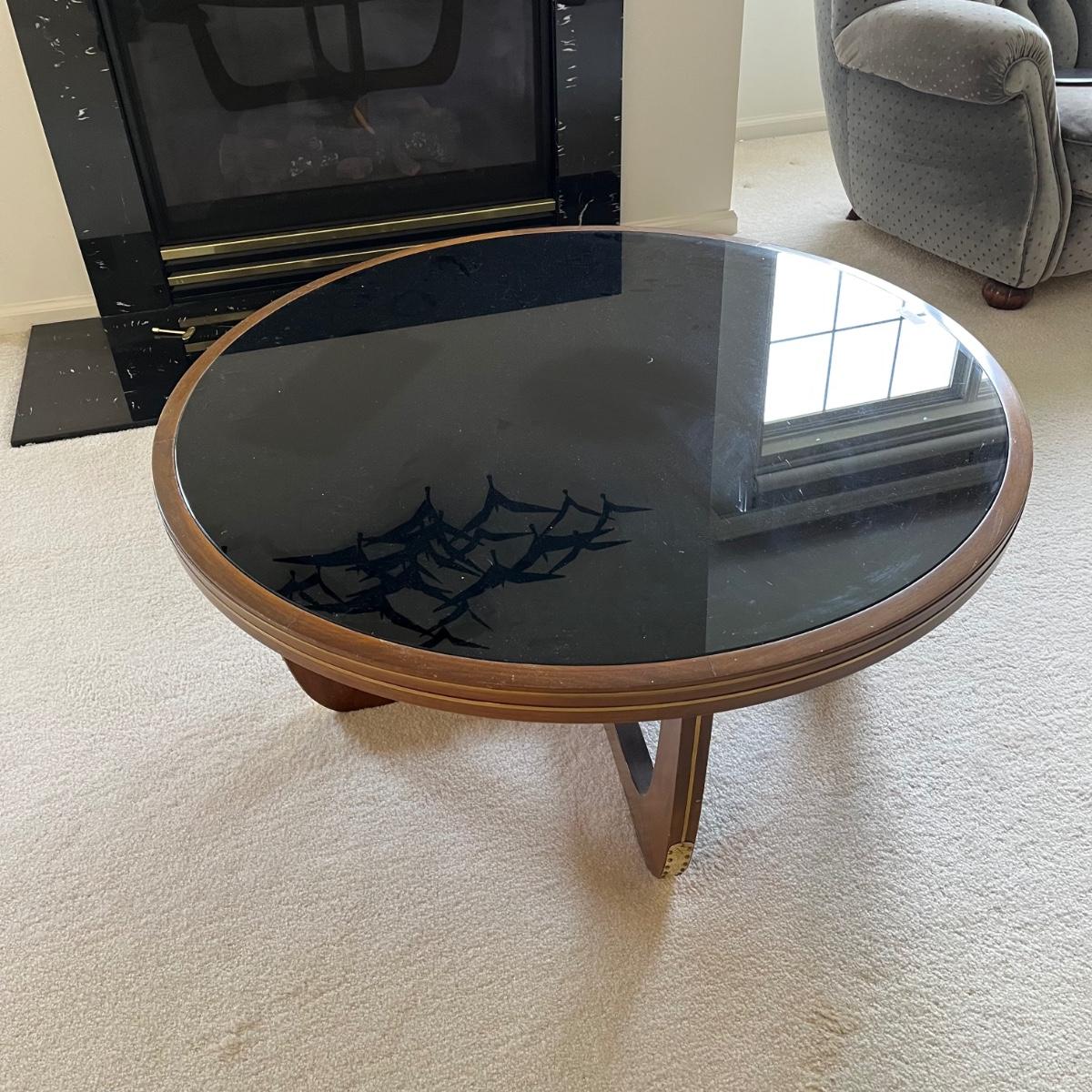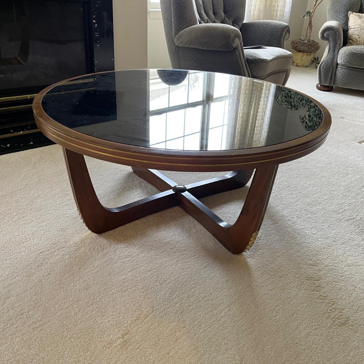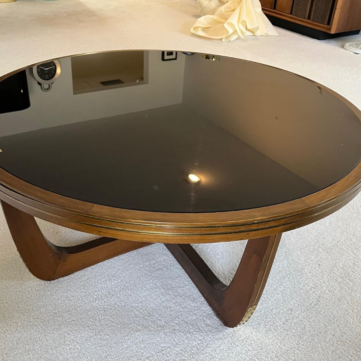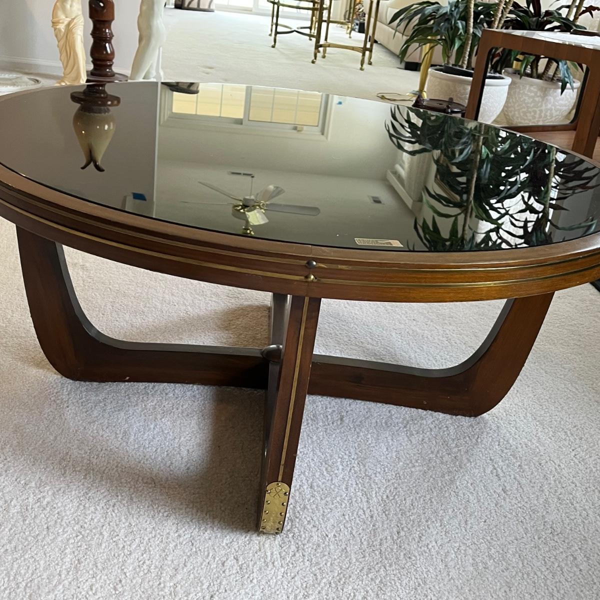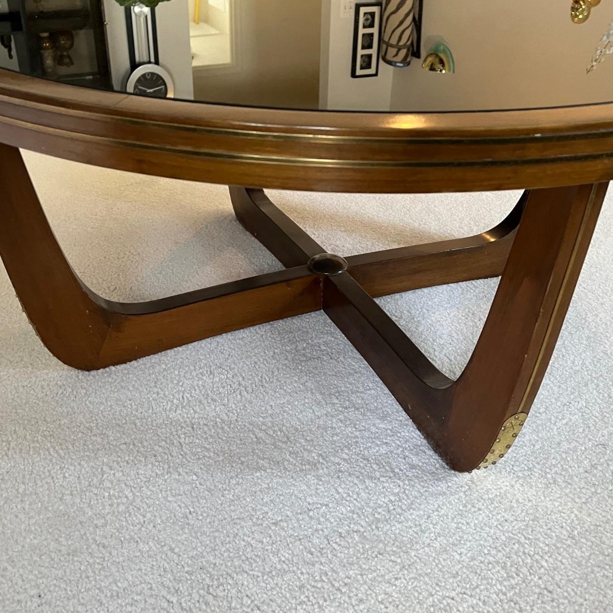 LOT 72L: Vintage Mid-Century Modern Echtes Kristall Spiegelglas Wood and Glass Coffee Table - MCM