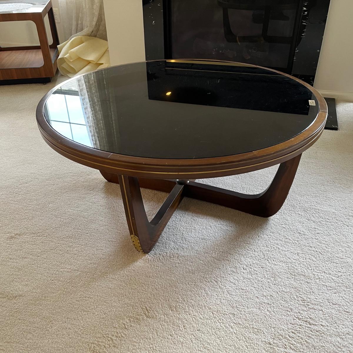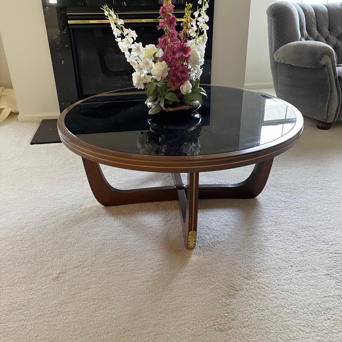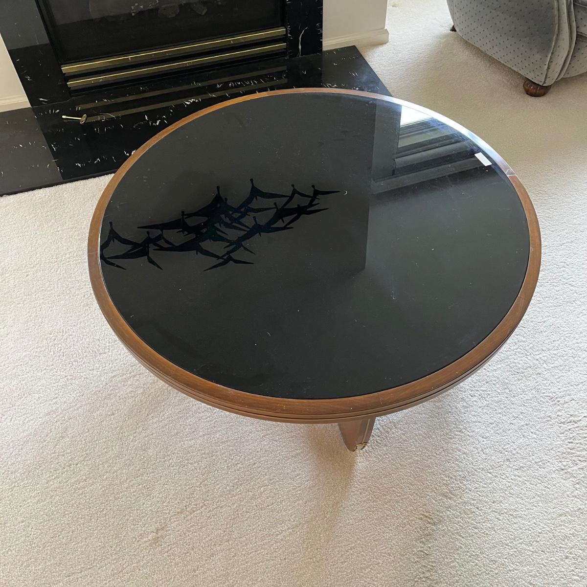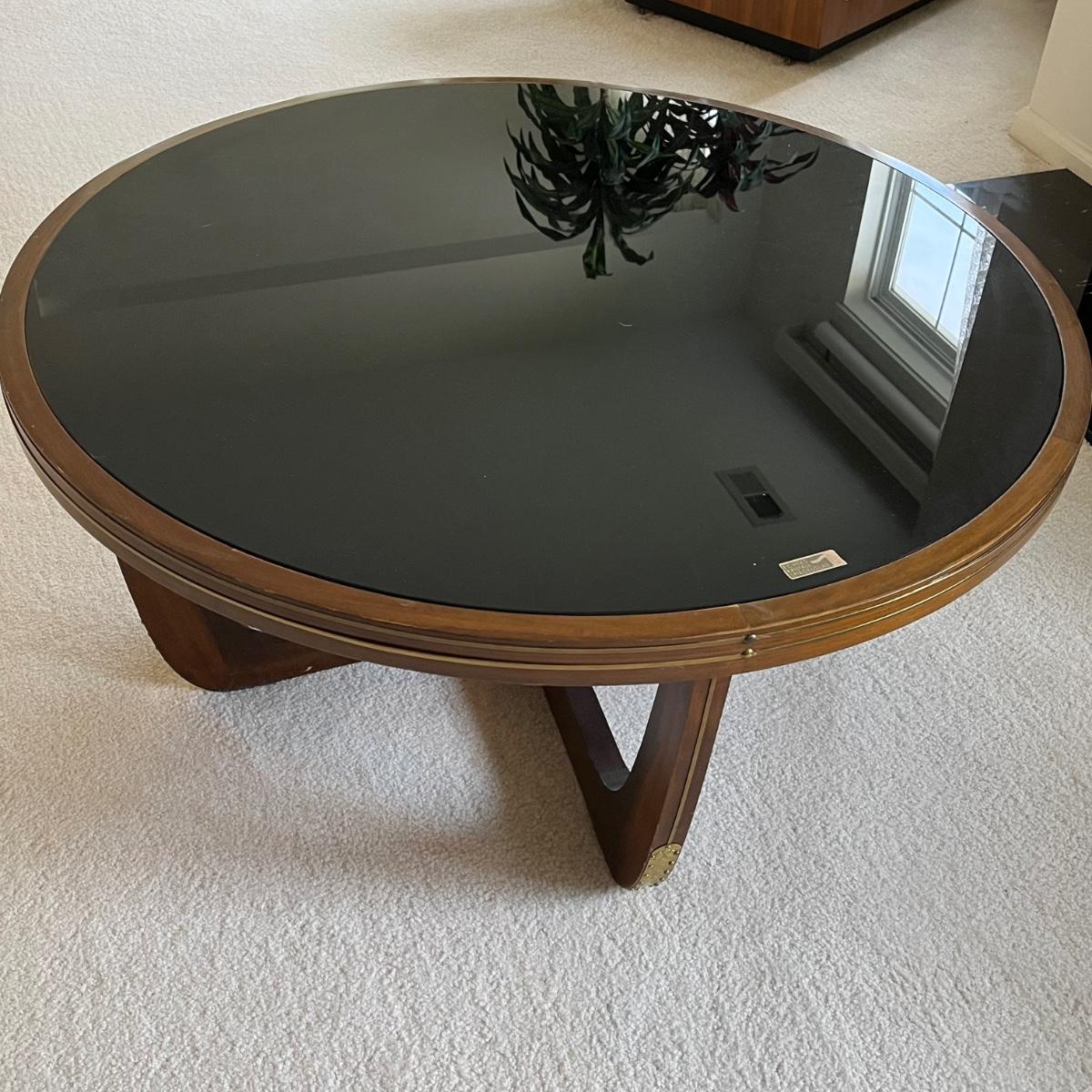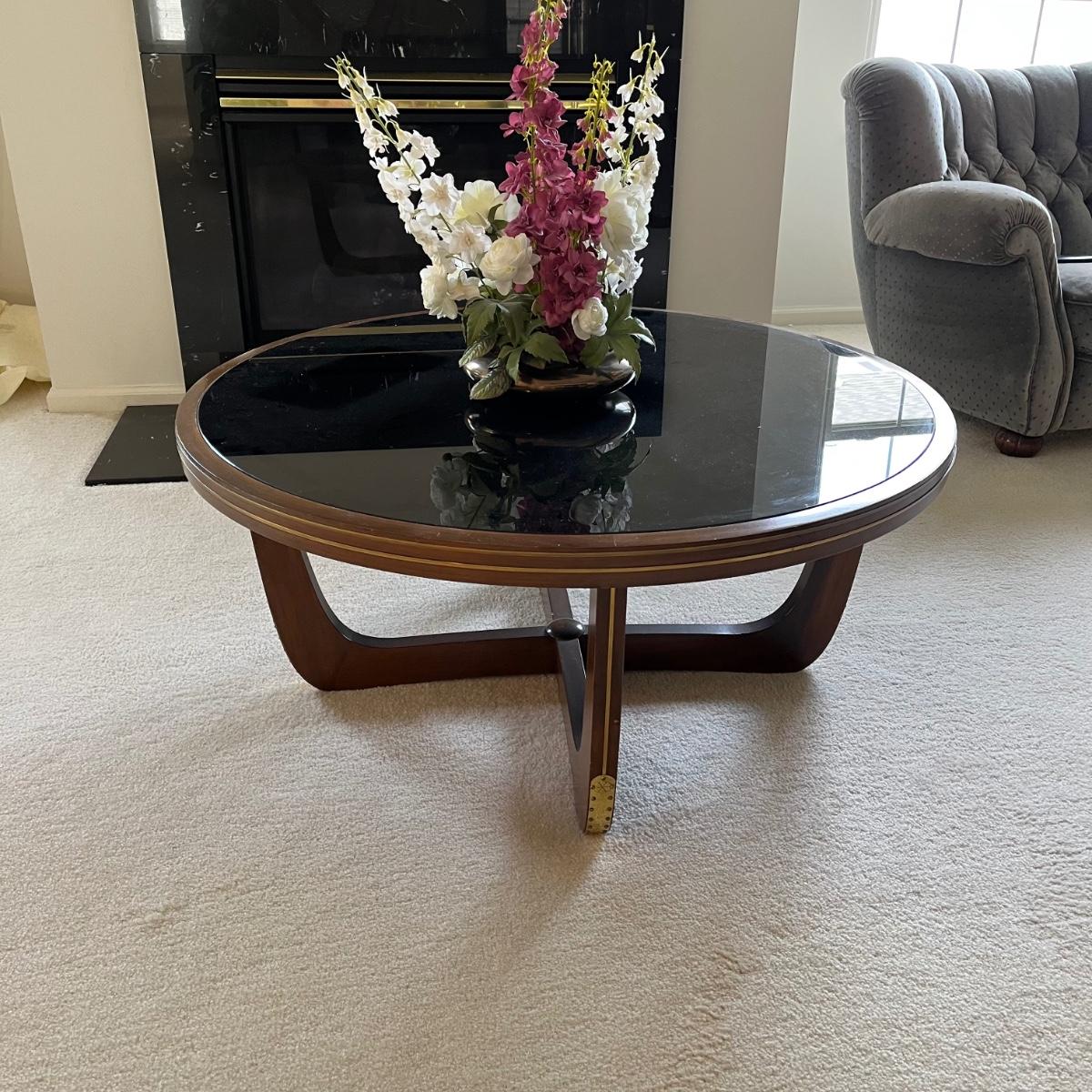 LOT 72L: Vintage Mid-Century Modern Echtes Kristall Spiegelglas Wood and Glass Coffee Table - MCM