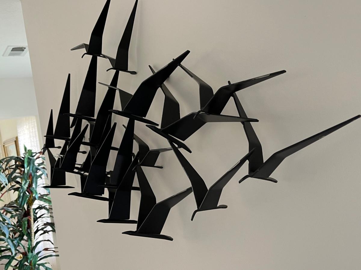 LOT 76L: Signed MCM Curtis Jere Birds in Flight Wall Sculpture