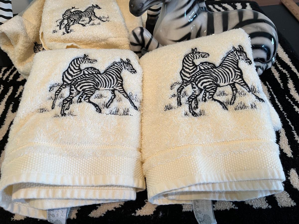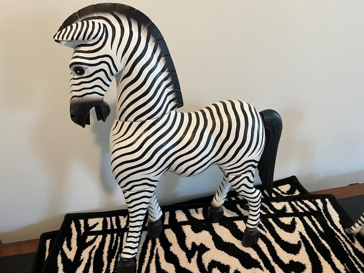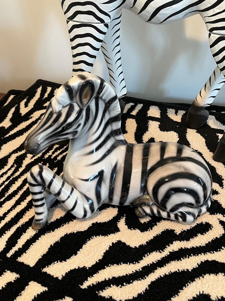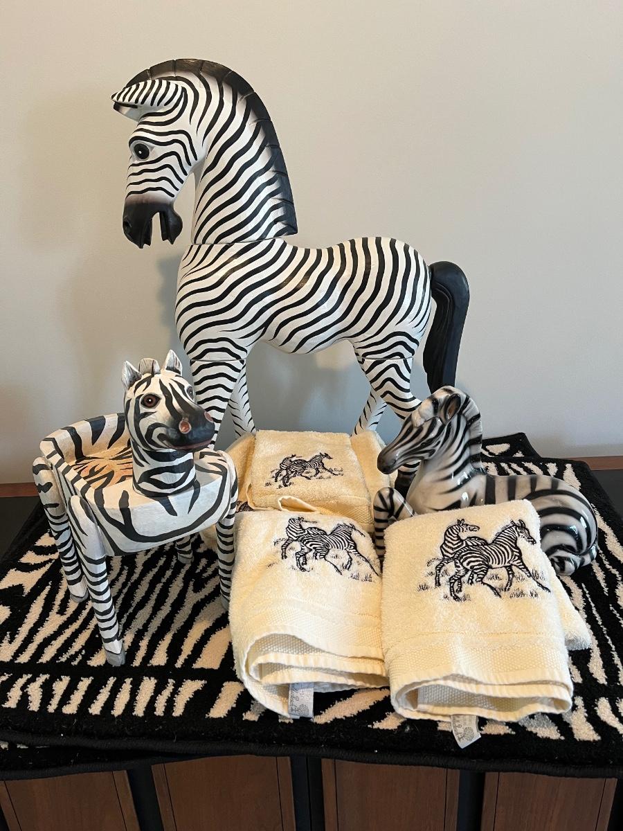 LOT 80L: Zebra Home Decor - Statues, Throw Rugs, Towel Set
