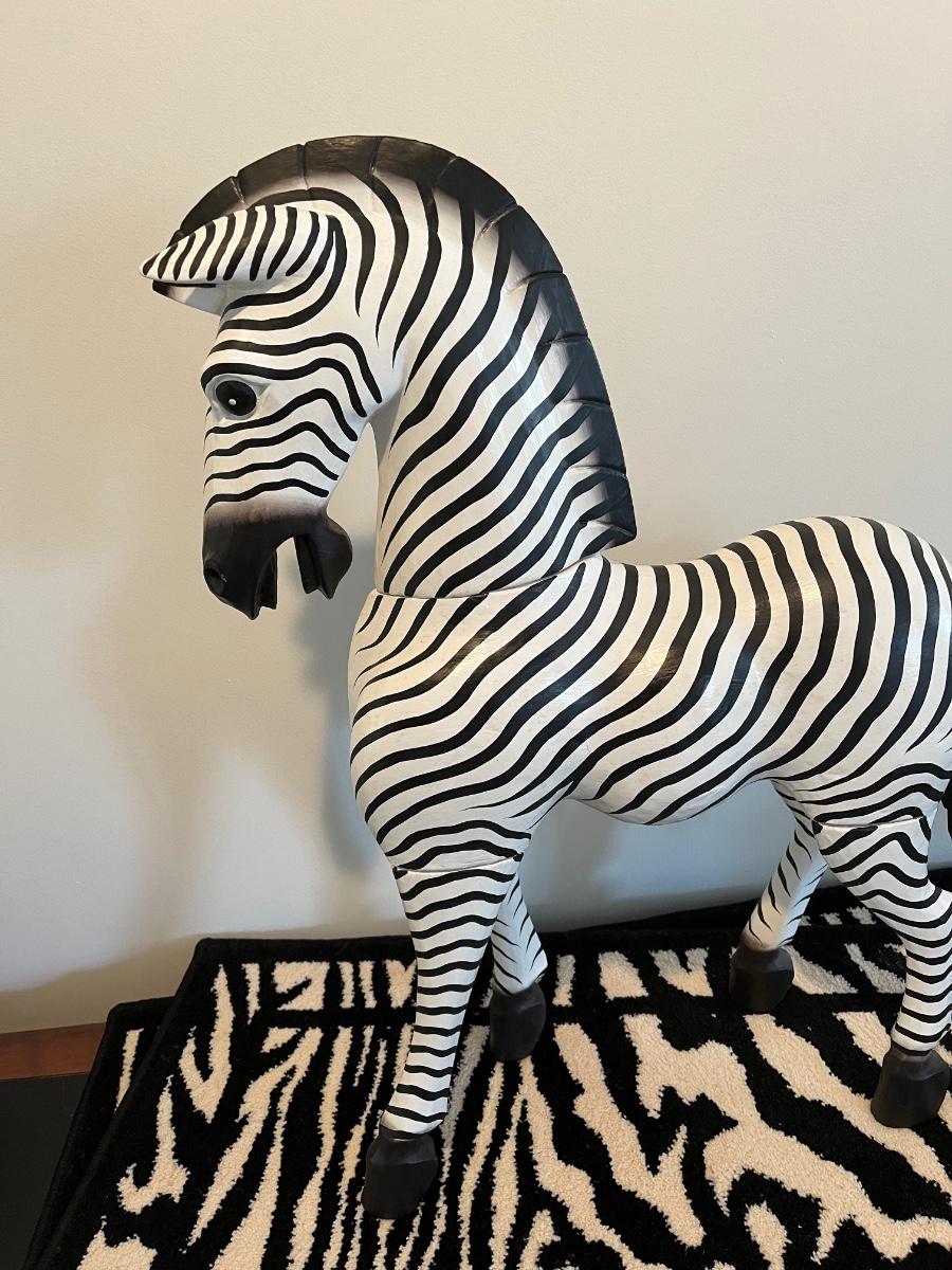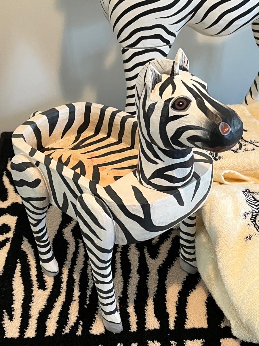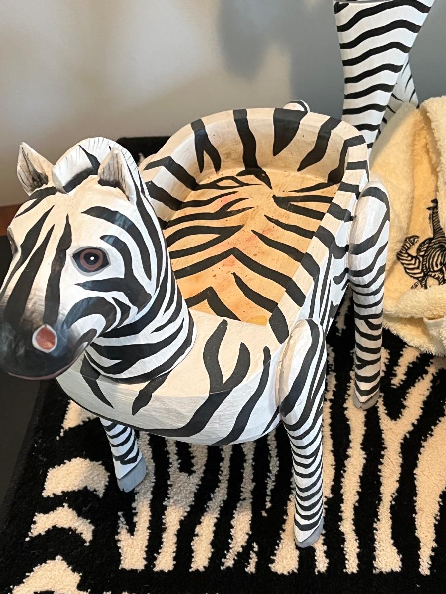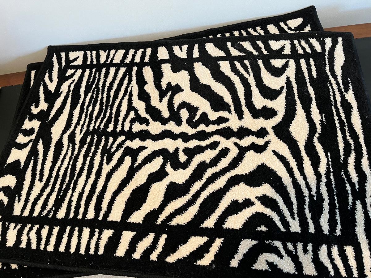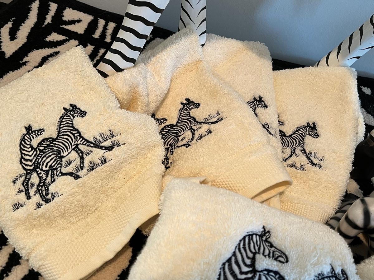 LOT 80L: Zebra Home Decor - Statues, Throw Rugs, Towel Set