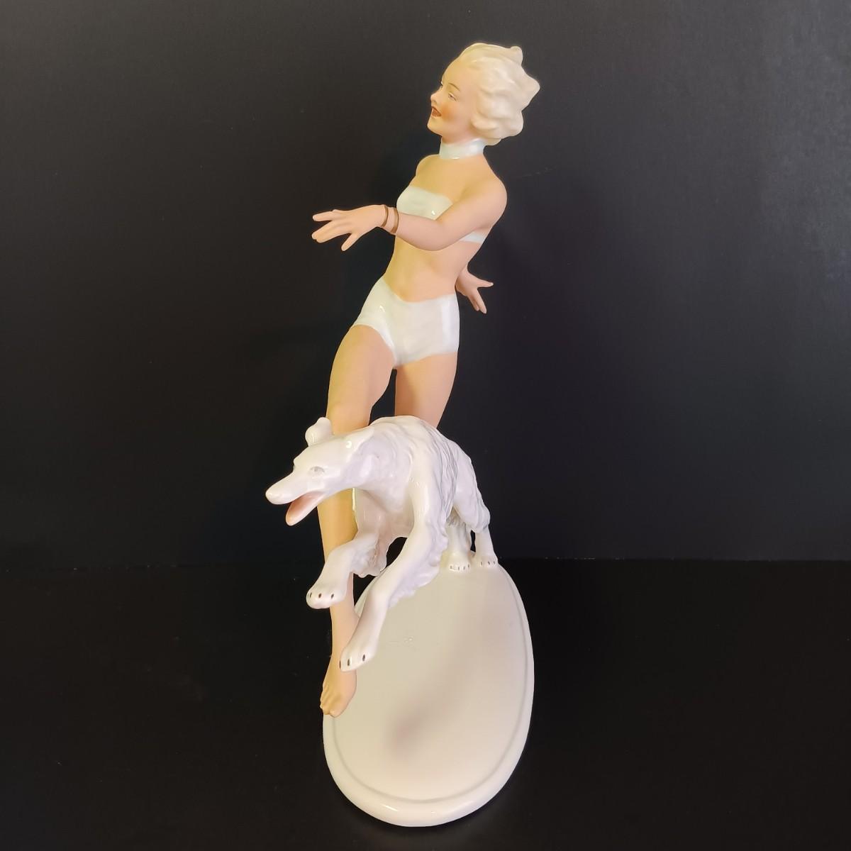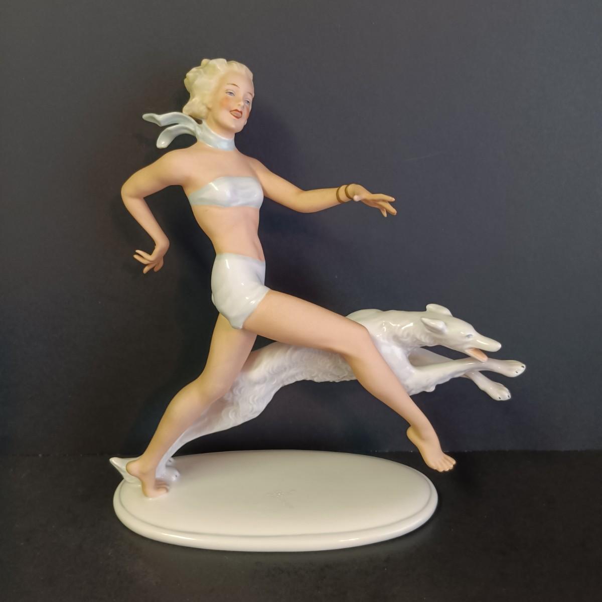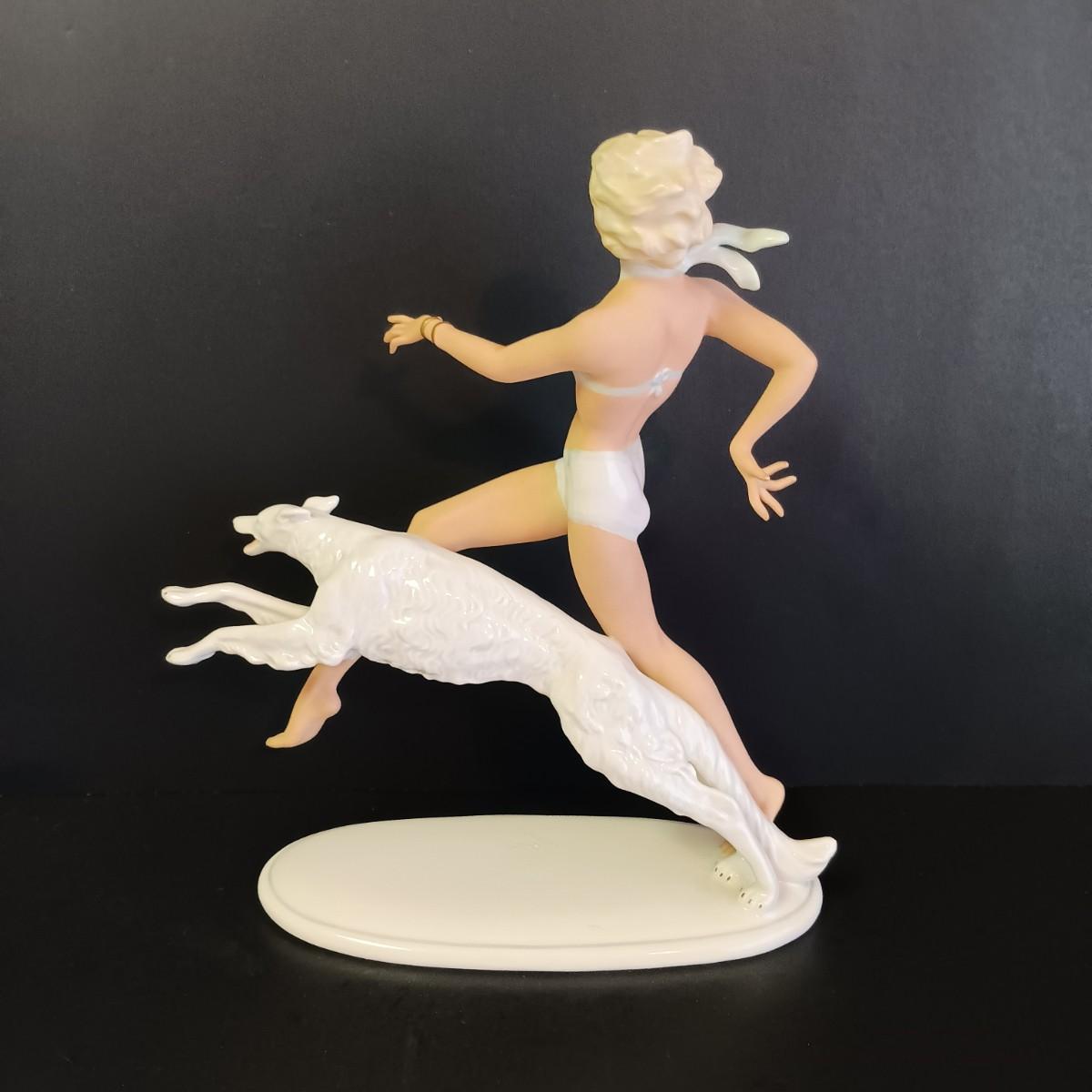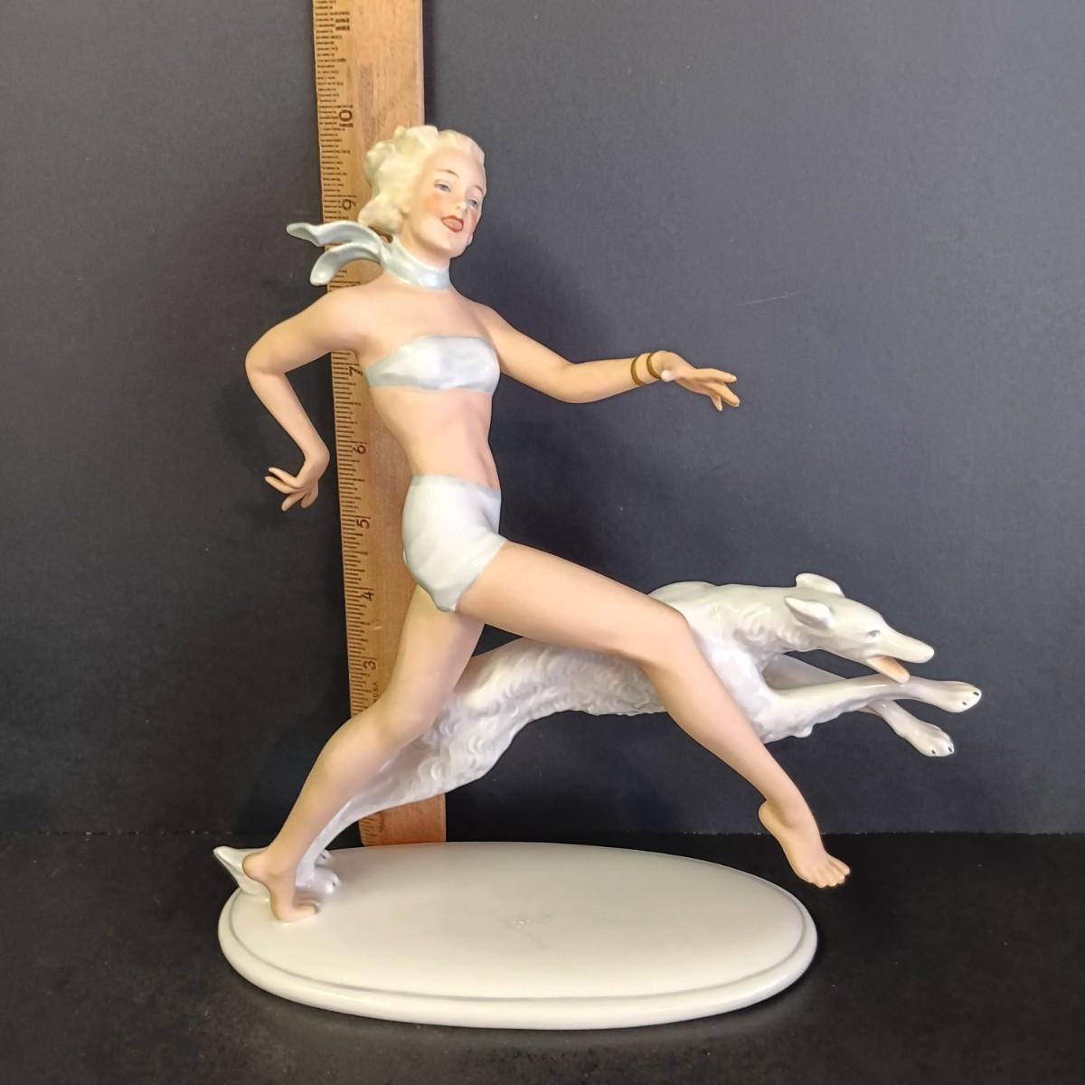 LOT 95K: Schaubach Kunst Woman with Dog Porcelain Figurine