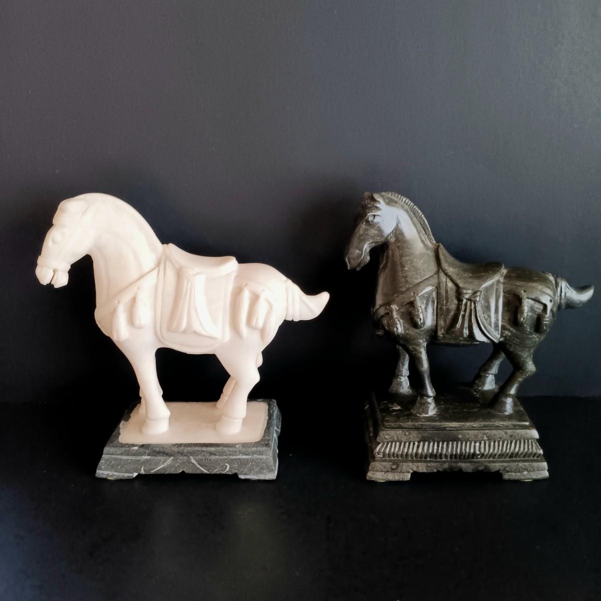 LOT 96K: Set of 2 Marble Chinese Warhorses