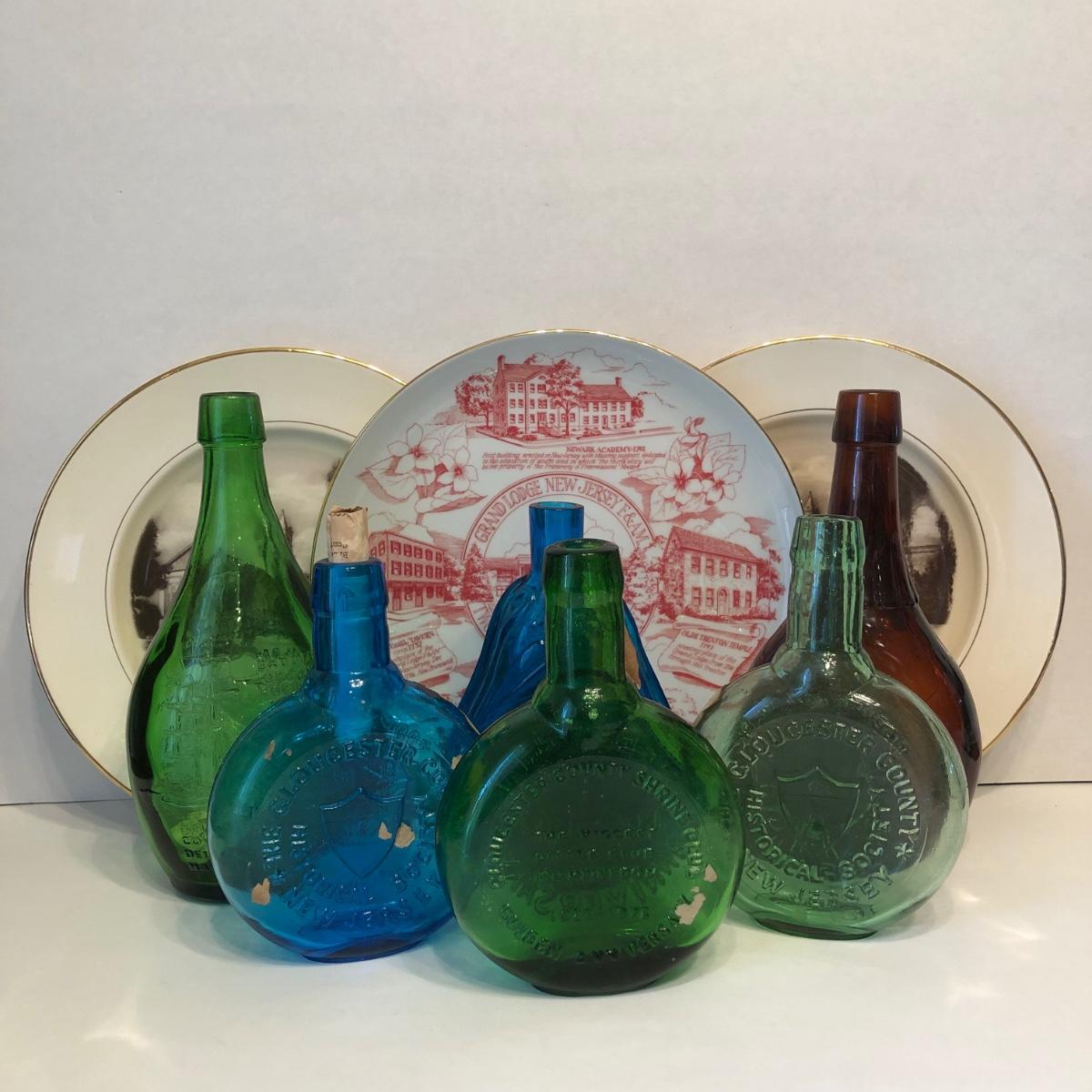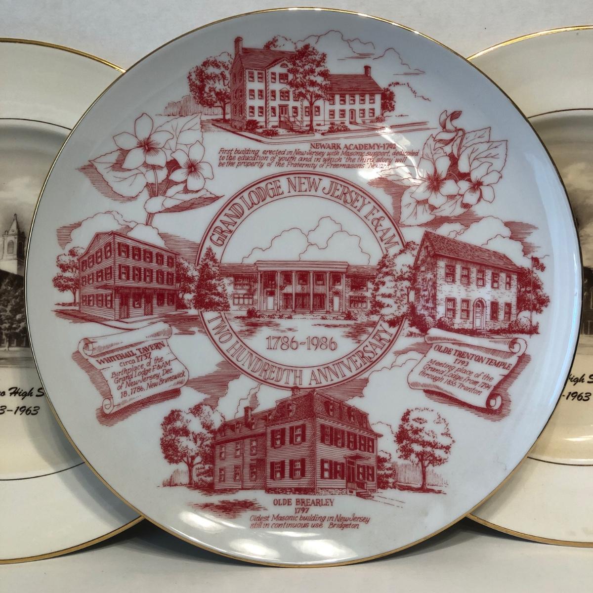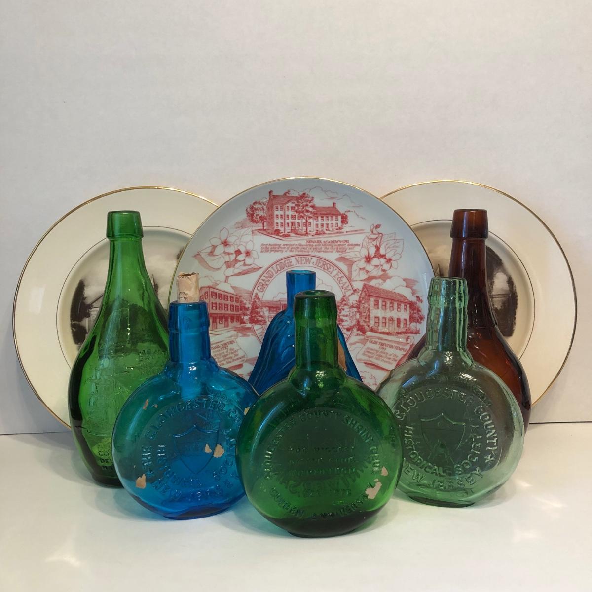 LOT 7M: Local New Jersey Collection - Clevenger Bros Bottles, Swedesboro High School Plates, 200th Anniversary Grand Lodge New Jersey F&AM Plate & More