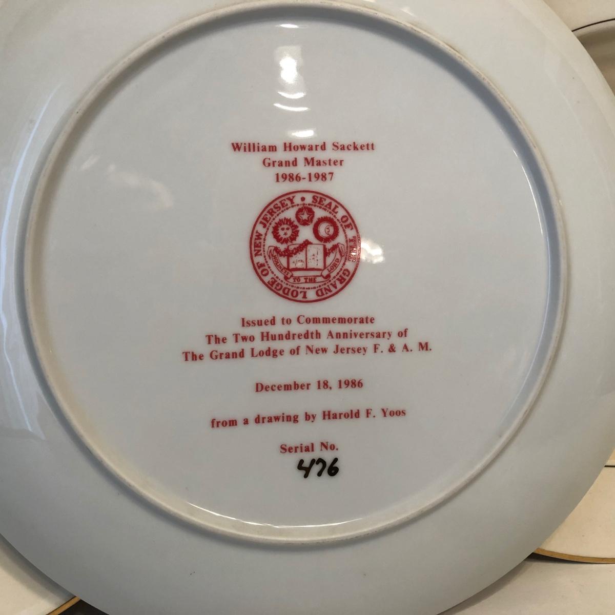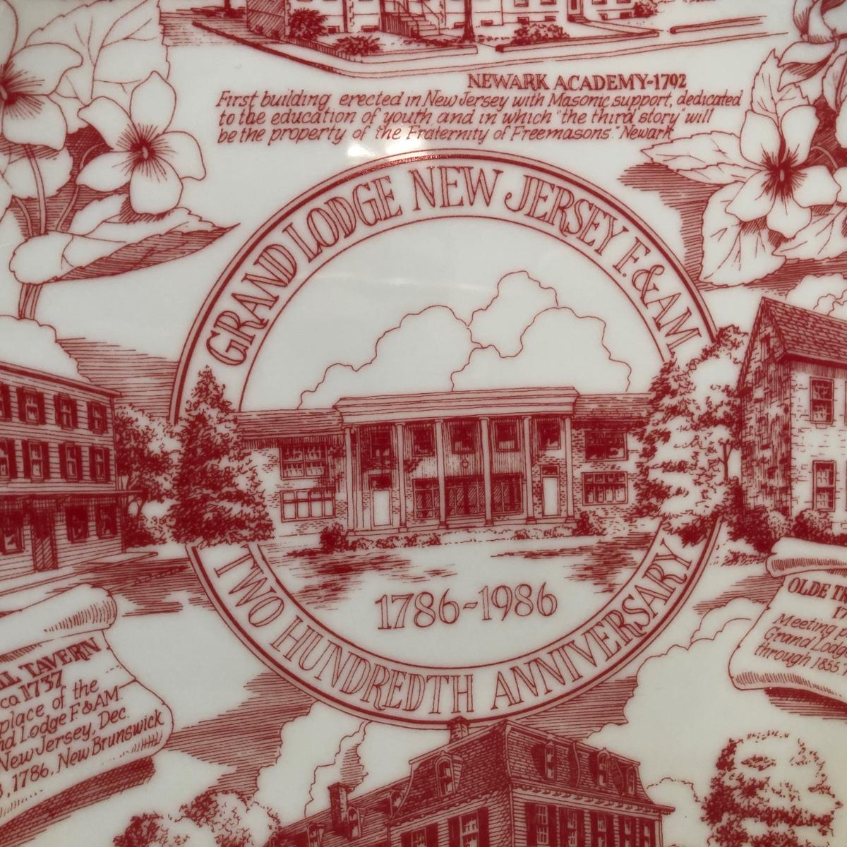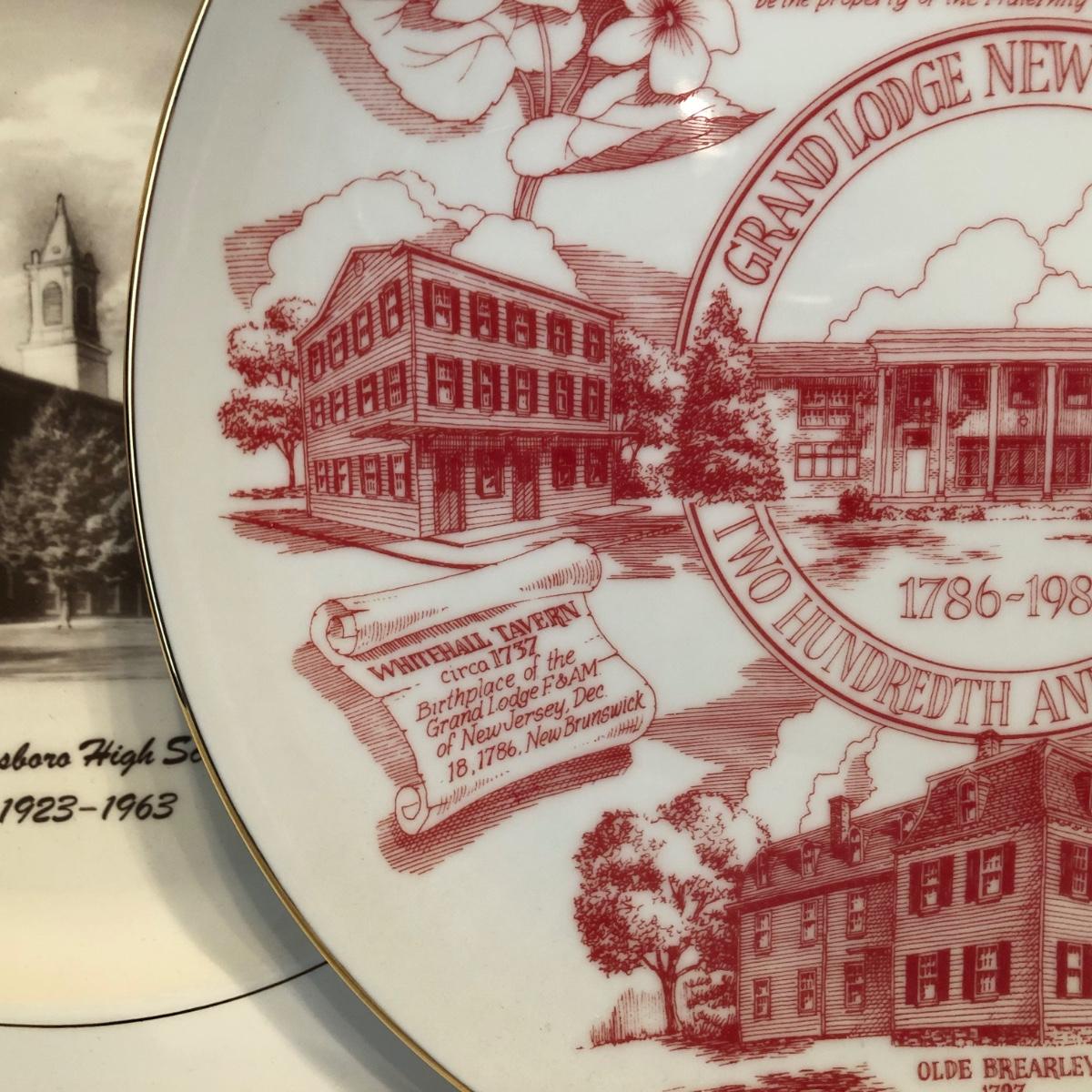 LOT 7M: Local New Jersey Collection - Clevenger Bros Bottles, Swedesboro High School Plates, 200th Anniversary Grand Lodge New Jersey F&AM Plate & More