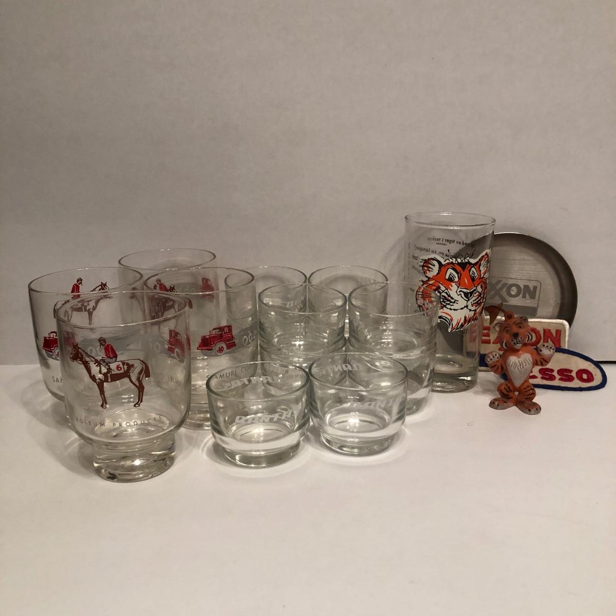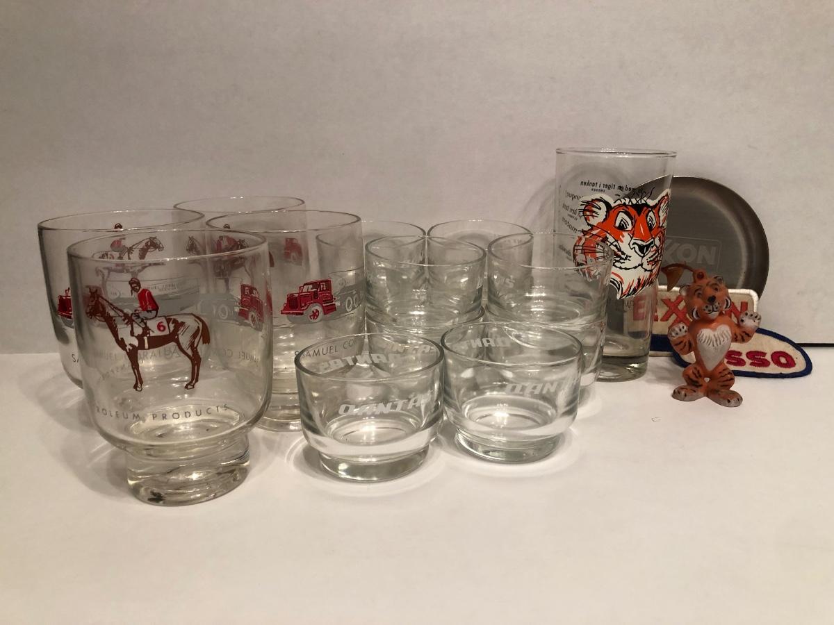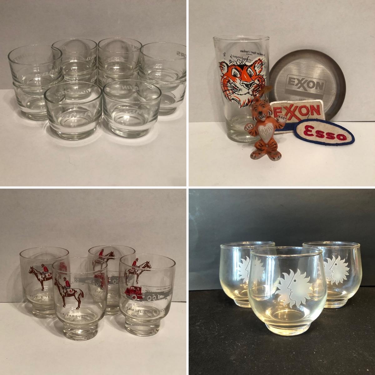 LOT 11M: Dantas Airline Glasses, Vintage 1960s National Airlines Glasses, Samuel Coraluzzo Petroleum Glasses & Exxon Collectibles,