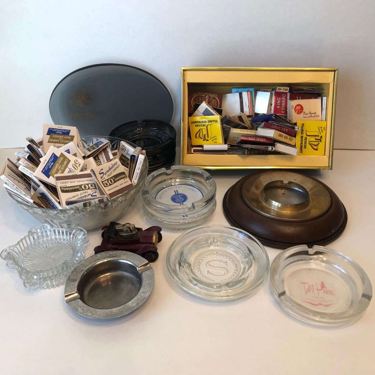 LOT 23M: Vintage Ash Tray & Matchbook Collection w/ Car Lighter