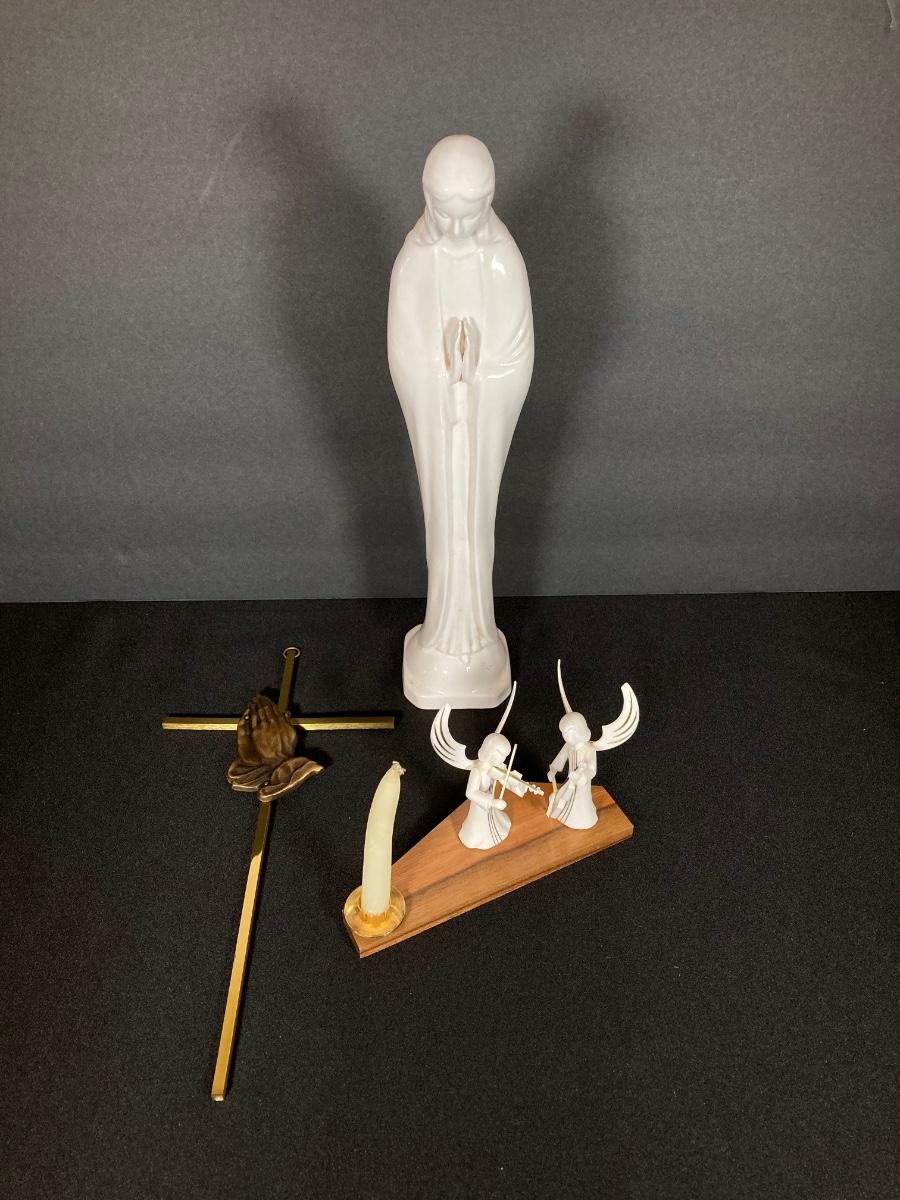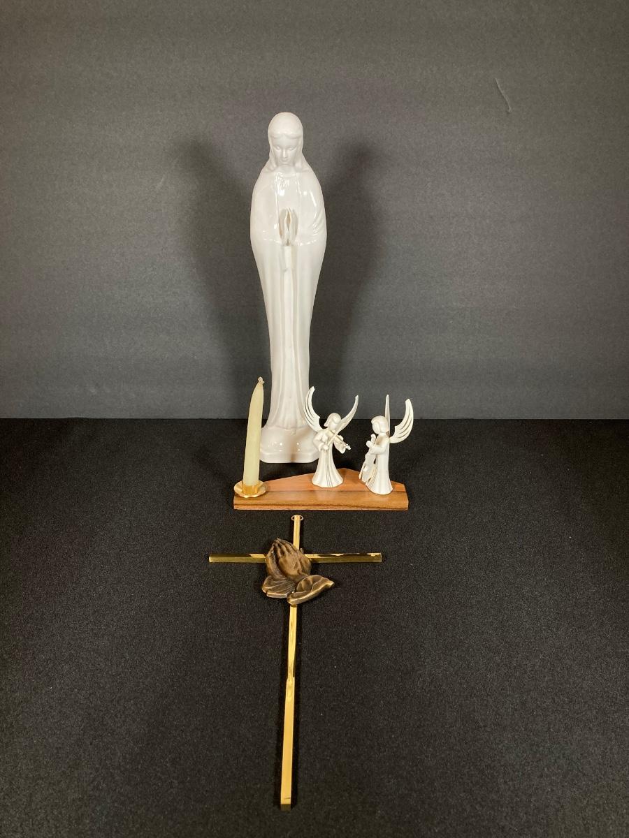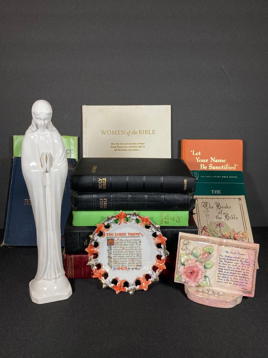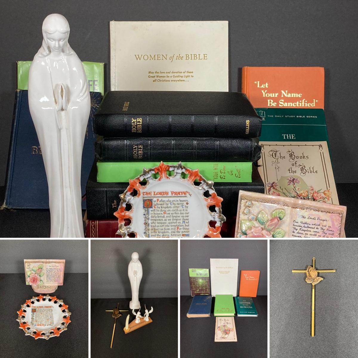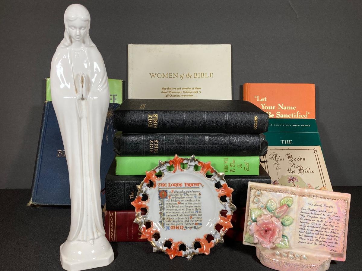 LOT 44J: Decorative Religious Collection - Madonna Statue, Plate, Books and More
