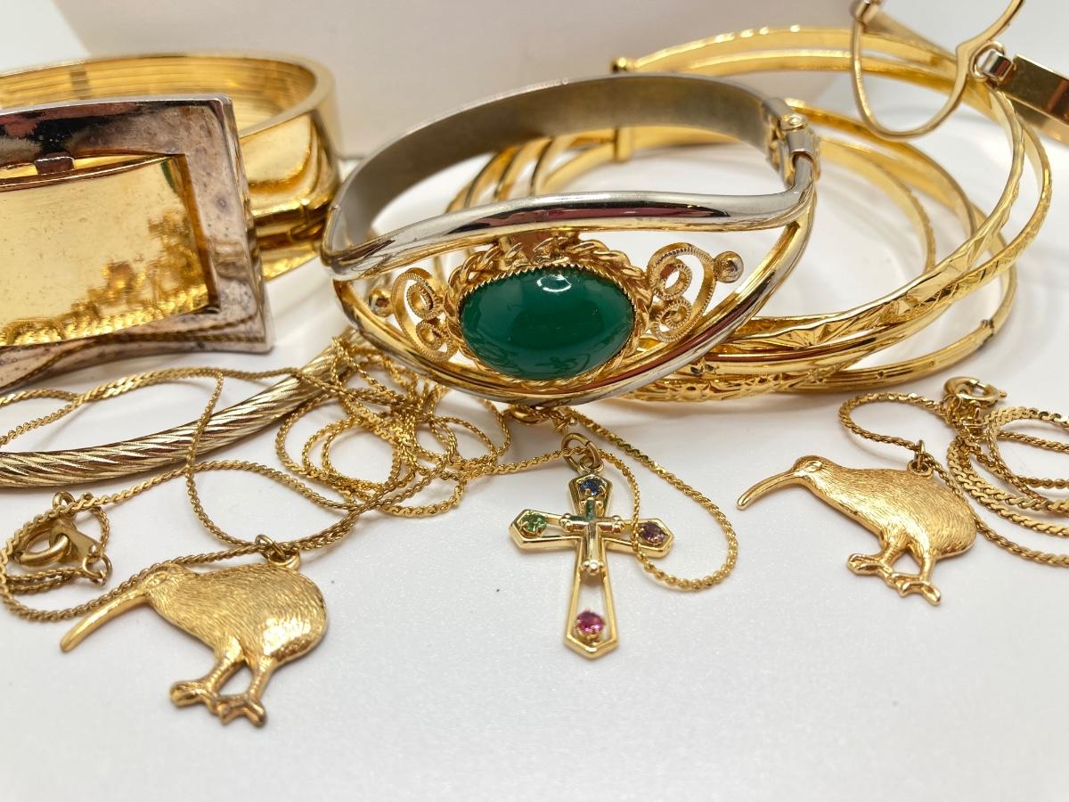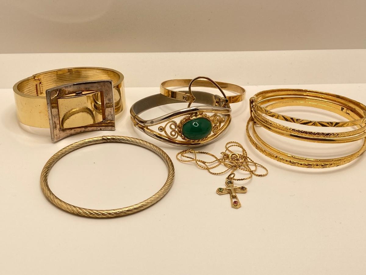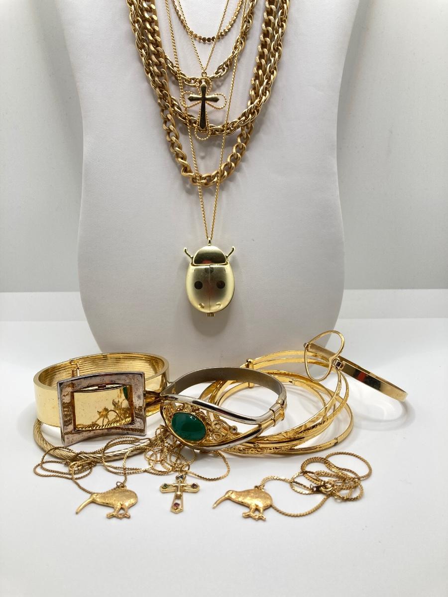 LOT 49J: Gold Tone Jewelry Collection - Necklaces, Bracelets, Lucerne Ladybug Pendant Watch and More
