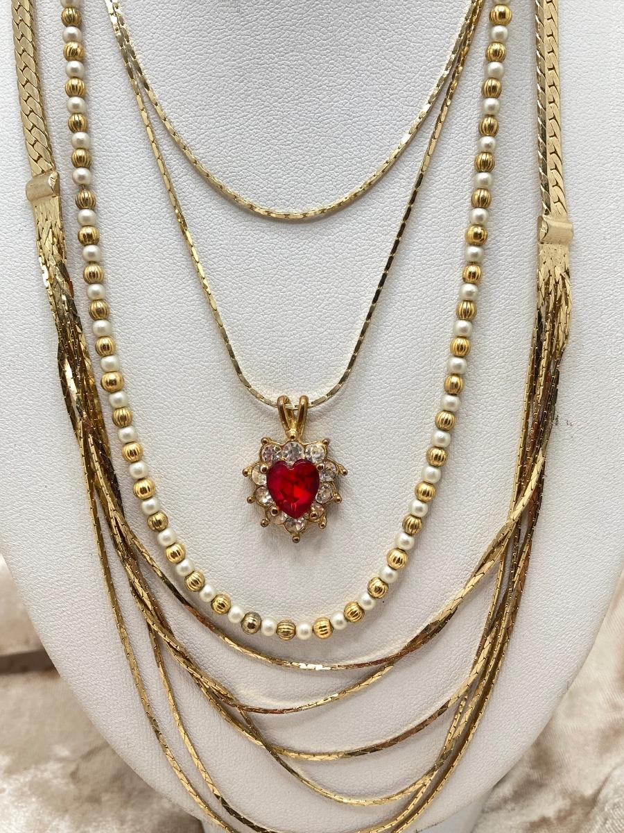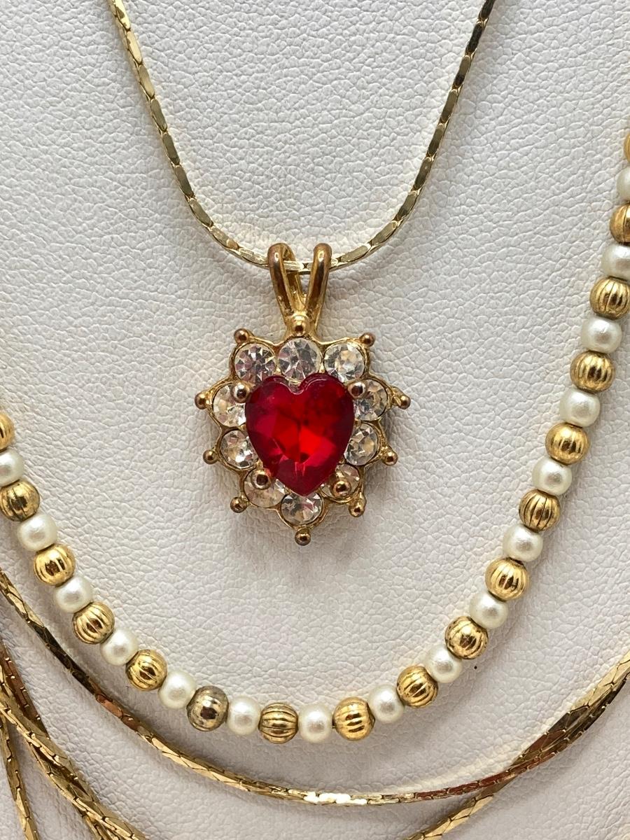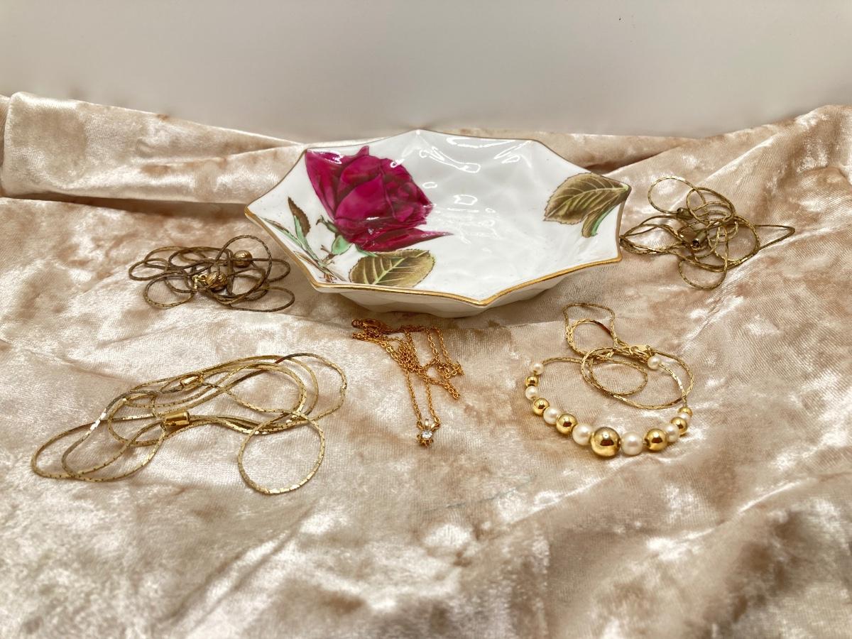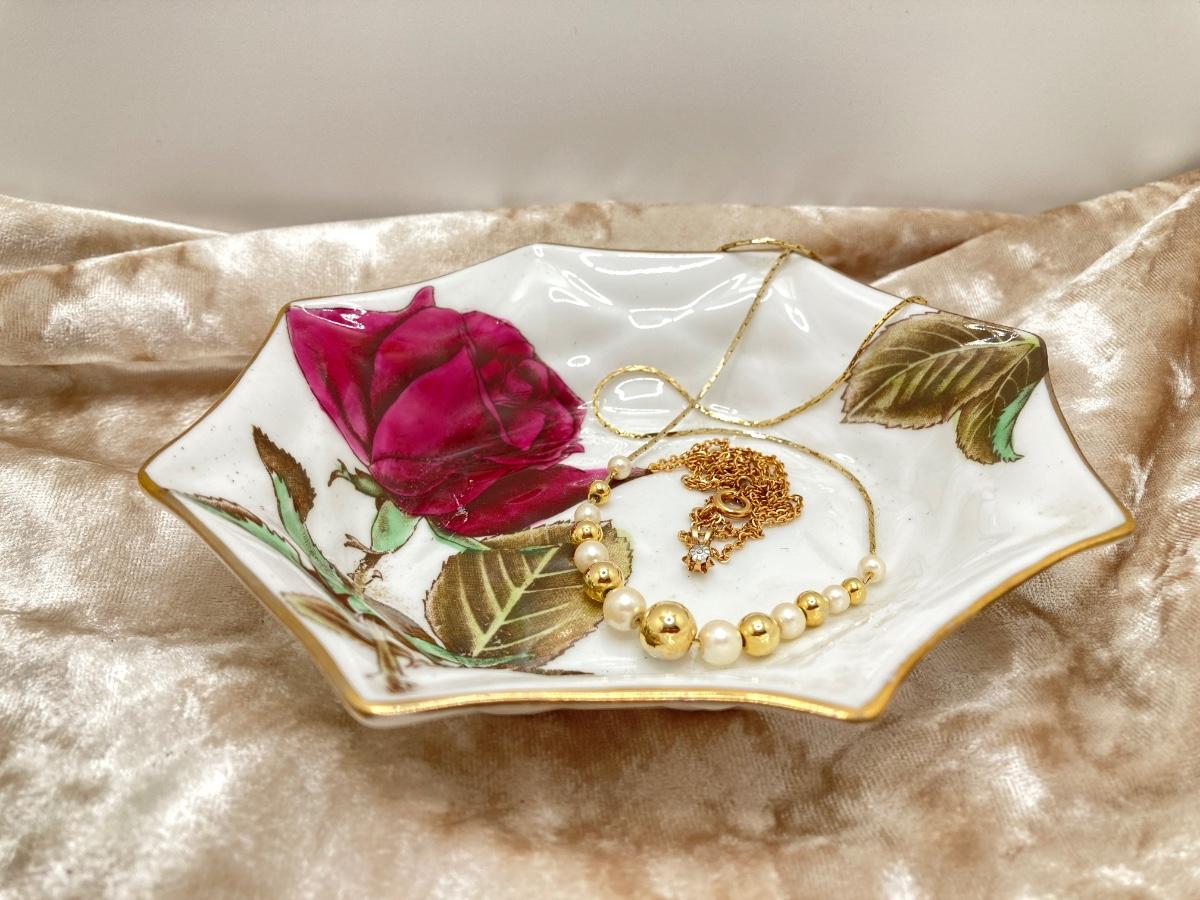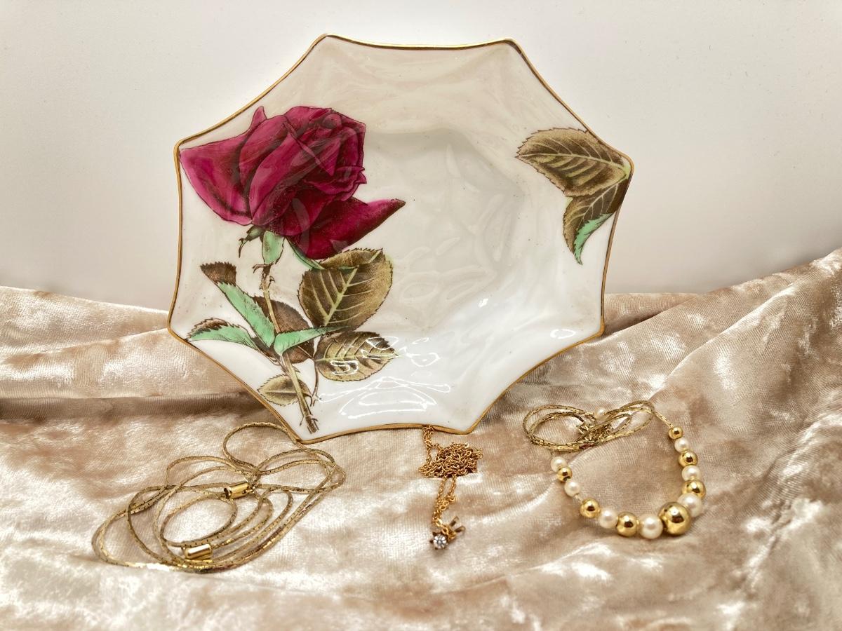 LOT 51J: Gold Tone Necklaces with English Rose China Dish