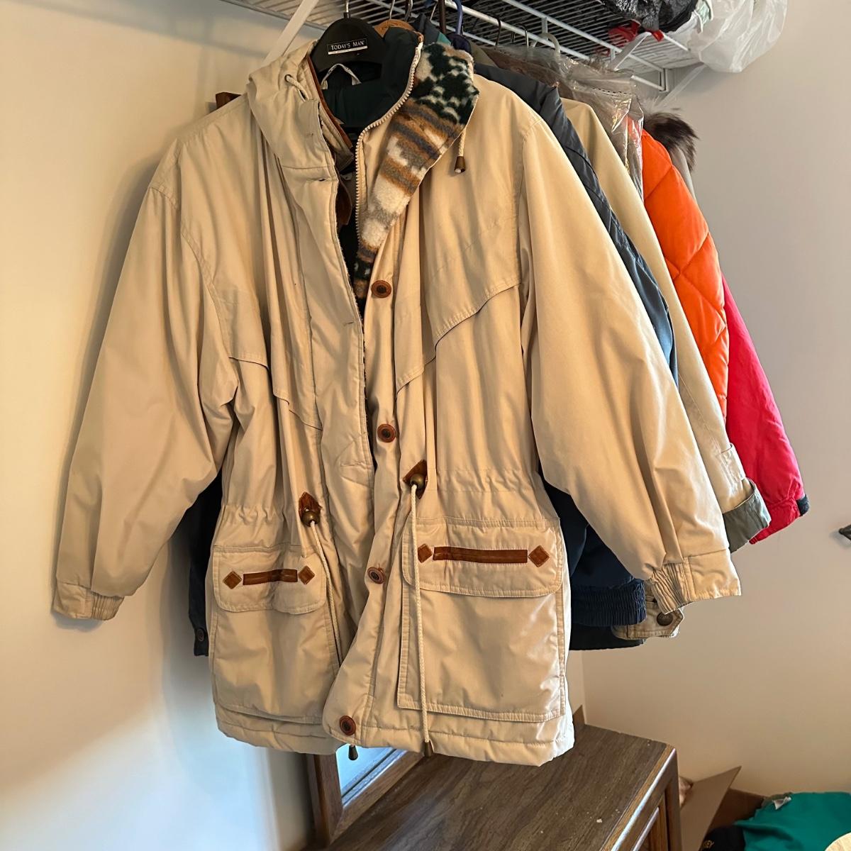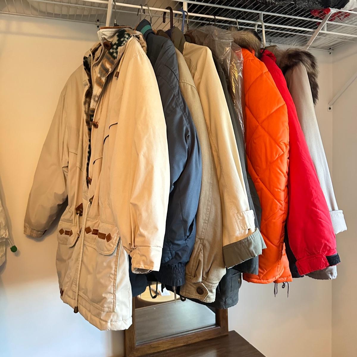 9 coats - Please see all pictures as they are the best representation of the items. The pictures show condition, measurements if taken, and what is included in the lot. Due to the large amount that we photograph and the time frame, we are not always able to take measurements. All items unless noted, are pre-owned and have been used. If you purchased furniture, you must bring help. We do not allow one person to carry large furniture out on their own. Bring help, tools and a truck for the safety of our client’s homes, and your personal safety. Any damages that result to the property including walls, and floors due to moving of the furniture will be charged to the buyer. Company policy. Thank you.