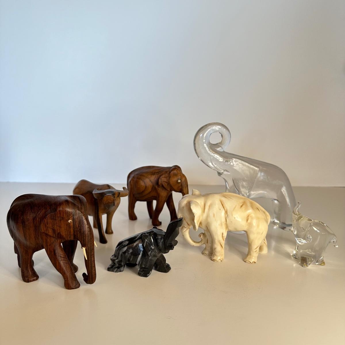 LOT 65N: Elephant Figurines - Crystal, Glass, Wood & More