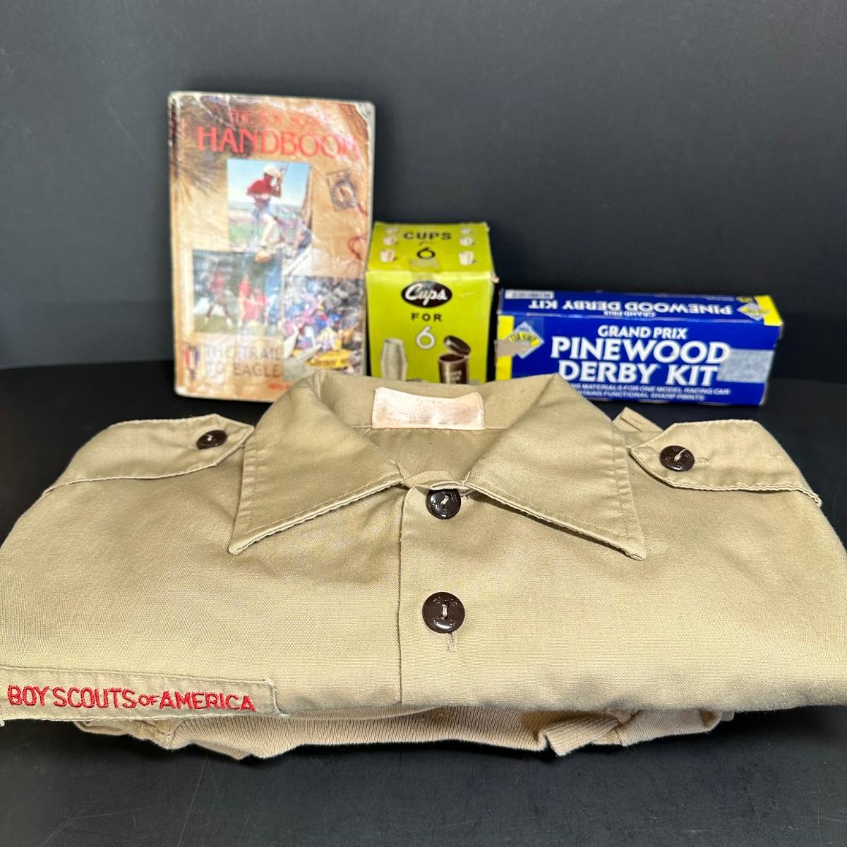 LOT 78N: Vintage Boys Scouts of America Uniform Shirt, T-shirts, Handbook & More