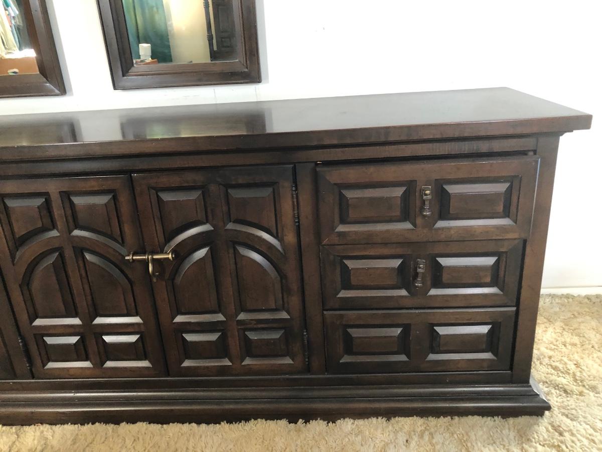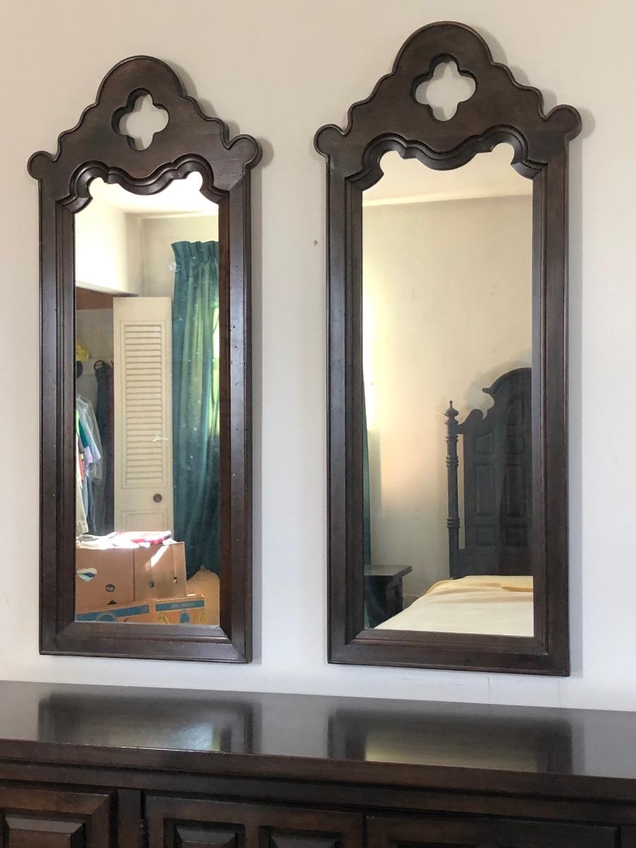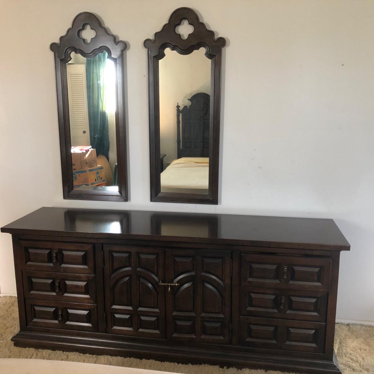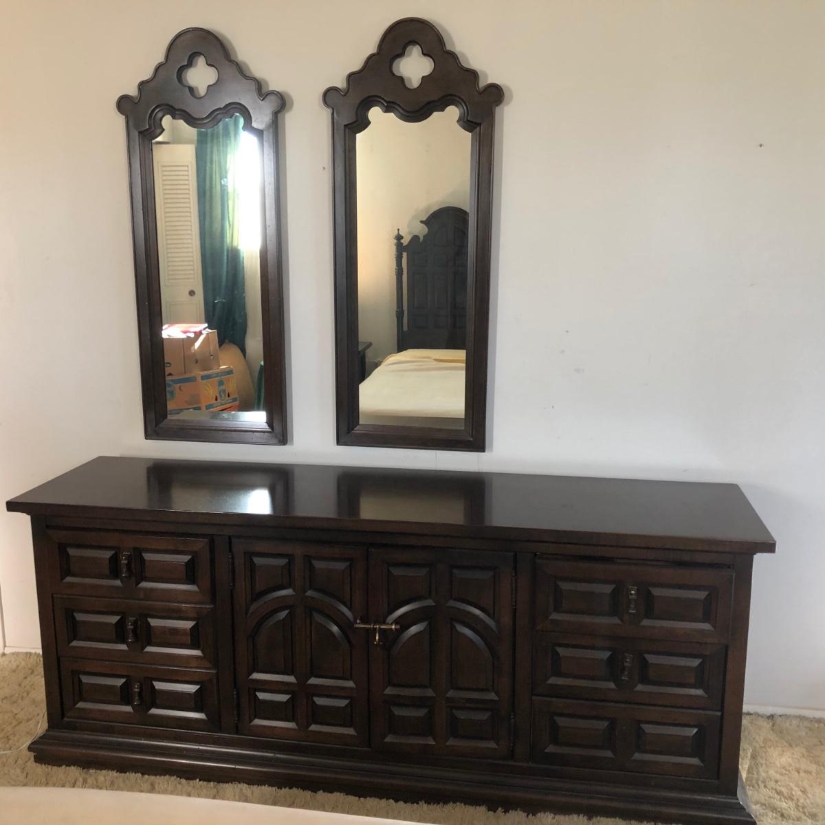 LOT 85M: Vintage Matching Bedroom Set - Bed, Dresser, Wardrobe, Nightstand & 2 Mirrors