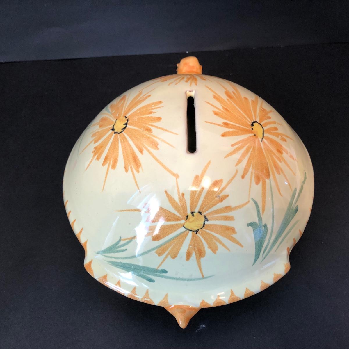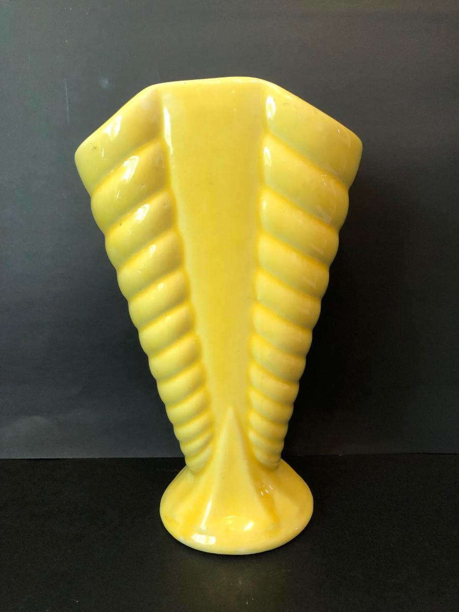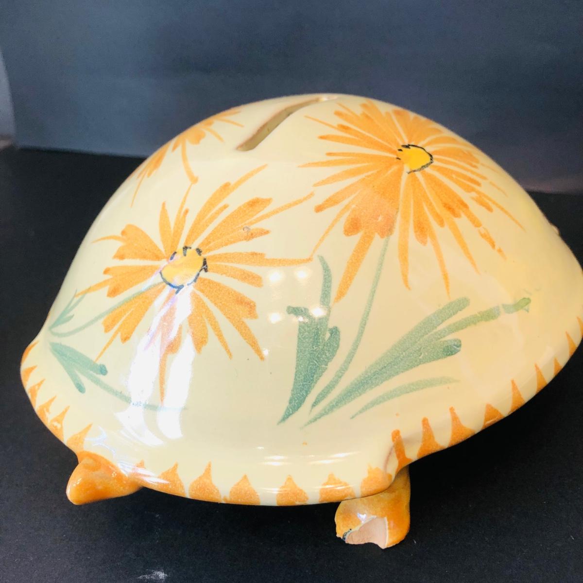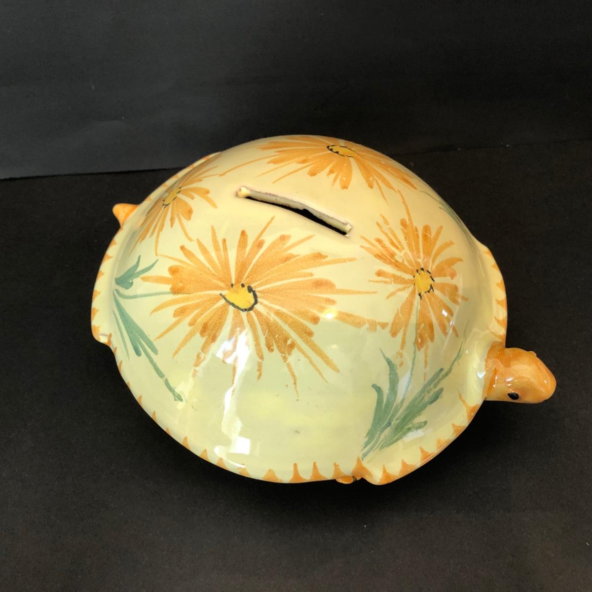 LOT 98M: Vintage Pottery - Painted Turtle Coin Bank & Yellow Art Deco Vase (by Shawnee)