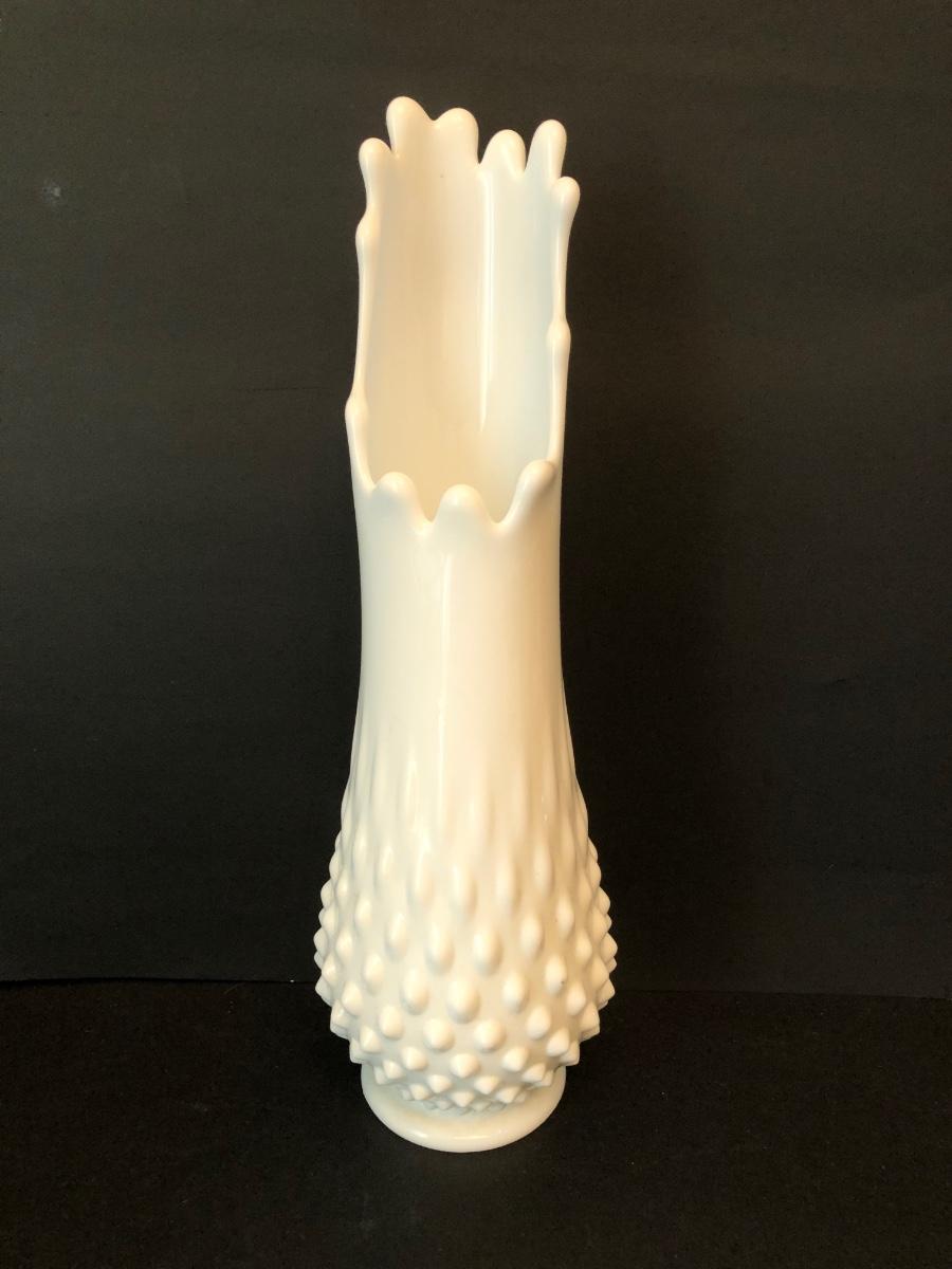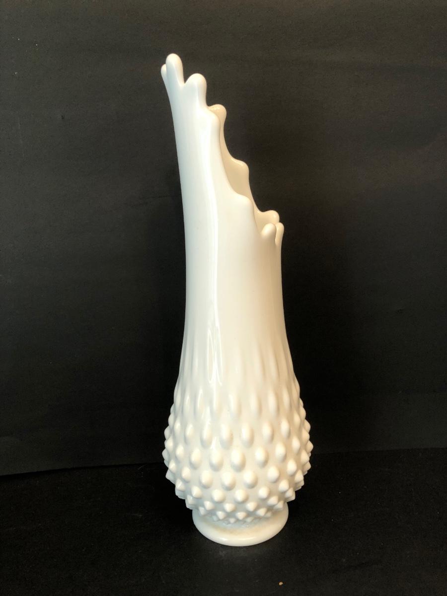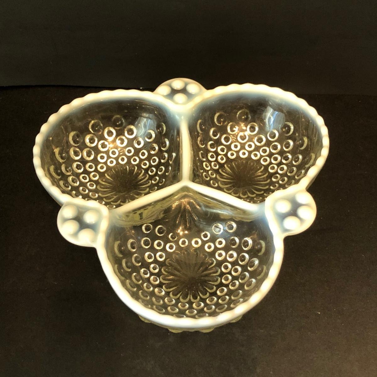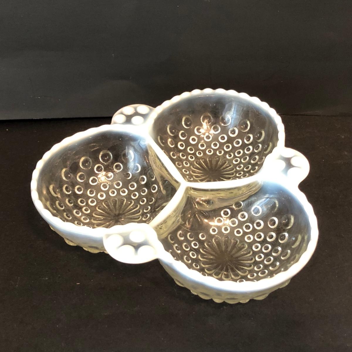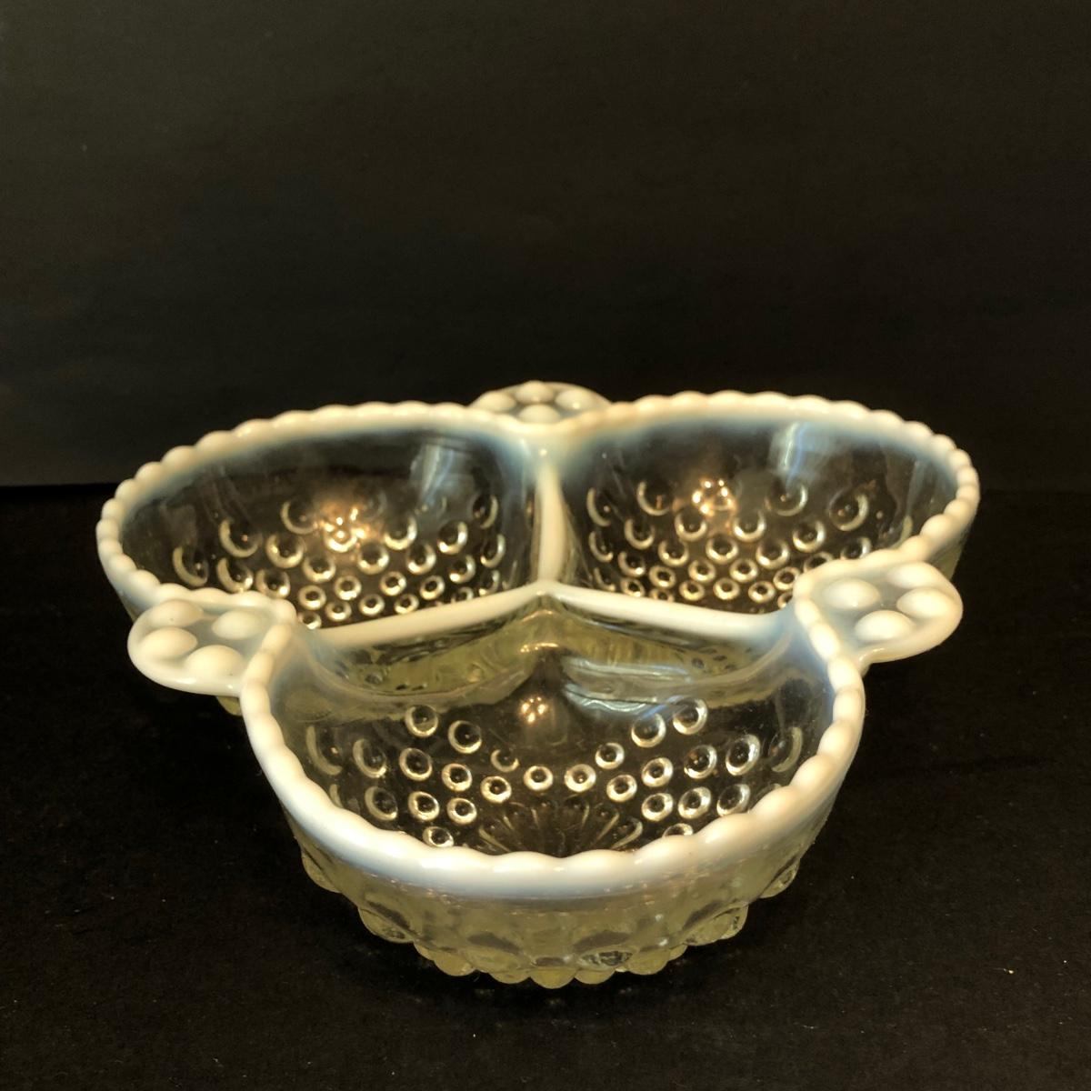 LOT 108M: Vintage Glass - Fenton Opalescent Hobnail Moonstone Condiment Dishes (2), Westmoreland Milk Glass Bud Vase & Milk Glass Hobnail Swung Vase
