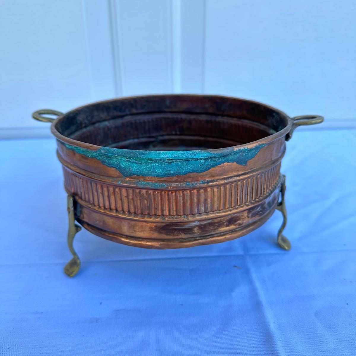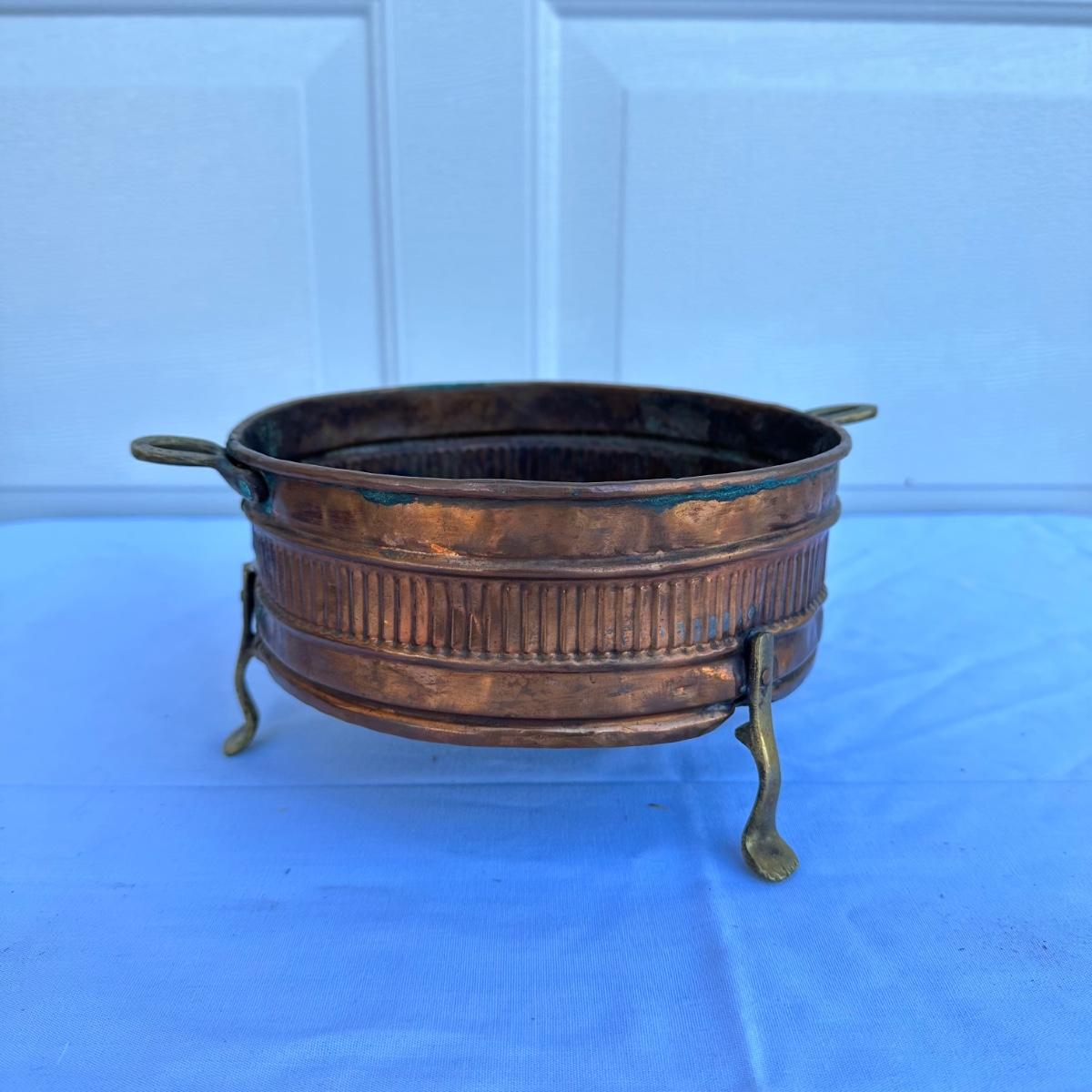 Copper planter has condition issues - Please see all pictures as they are the best representation of the items. The pictures show condition, measurements if taken, and what is included in the lot. Due to the large amount that we photograph and the time frame, we are not always able to take measurements. All items unless noted, are pre-owned and have been used. If you purchased furniture, you must bring help. We do not allow one person to carry large furniture out on their own. Bring help, tools and a truck for the safety of our client’s homes, and your personal safety. Any damages that result to the property including walls, and floors due to moving of the furniture will be charged to the buyer. Company policy. Thank you.