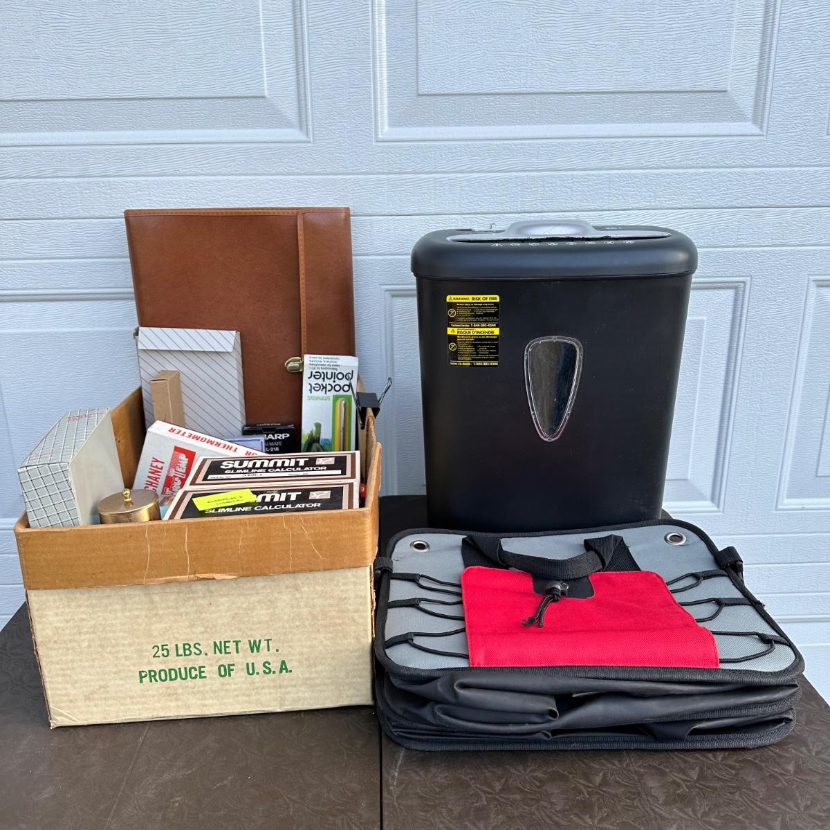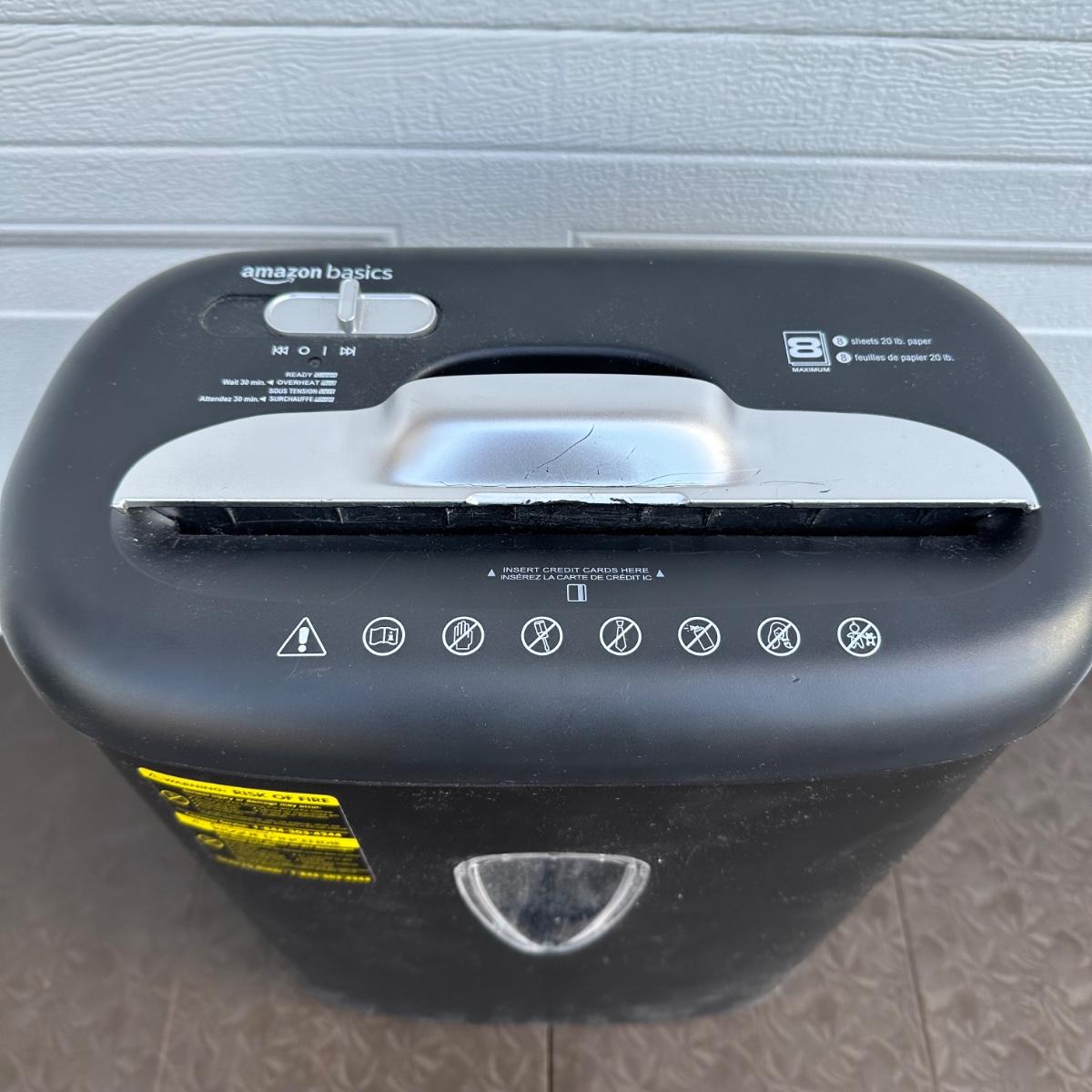 LOT 117N: Amazon Basics Paper Shredder w/ Office Supplies