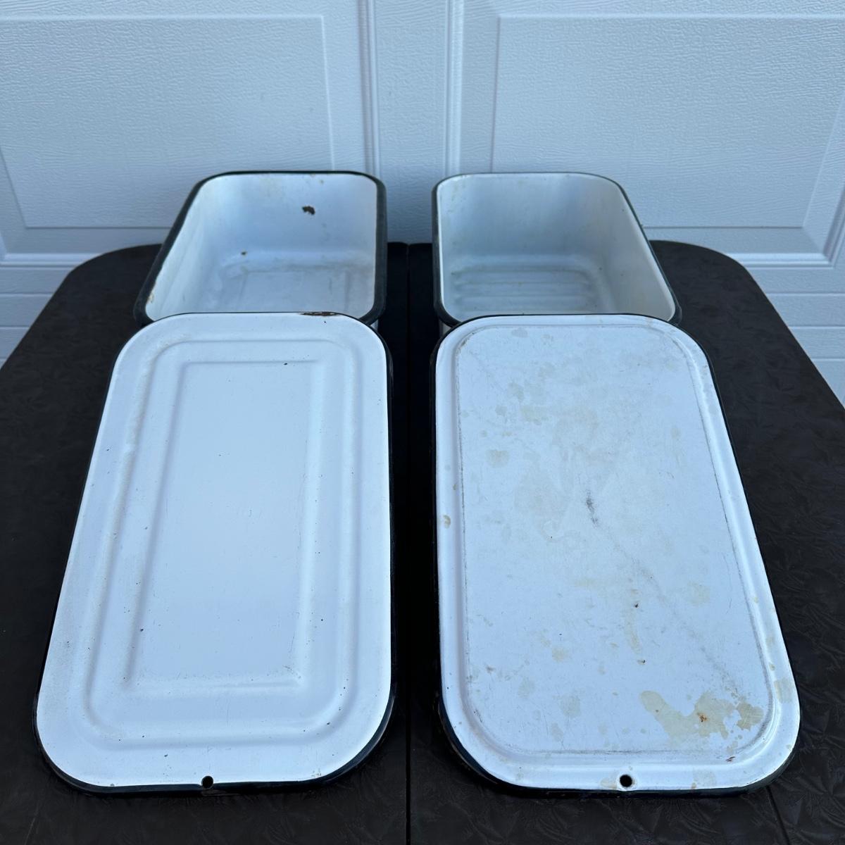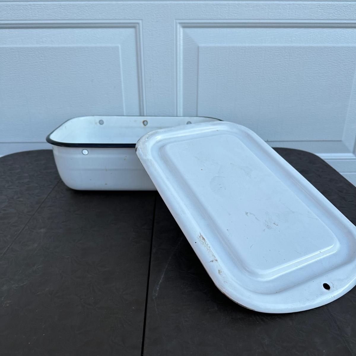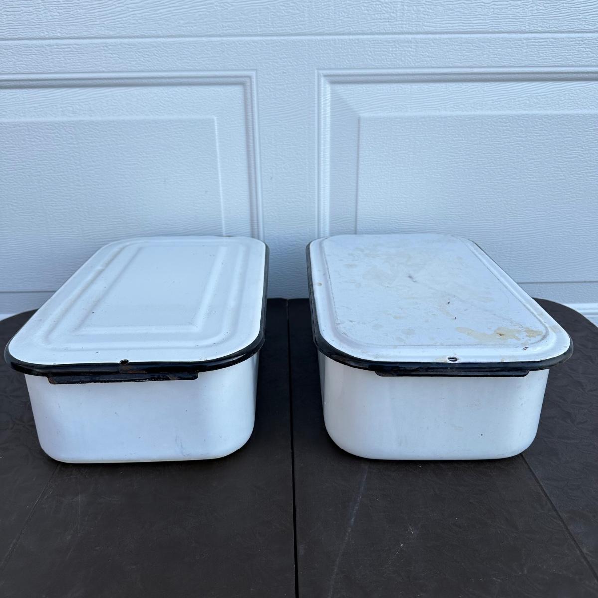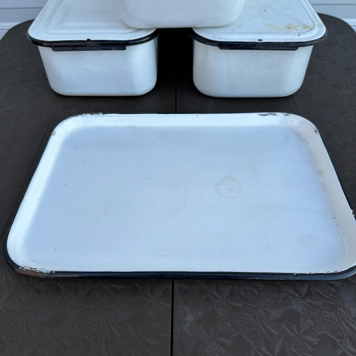 LOT 121N: Vintage White Enamel Refrigerator Boxes & Pans