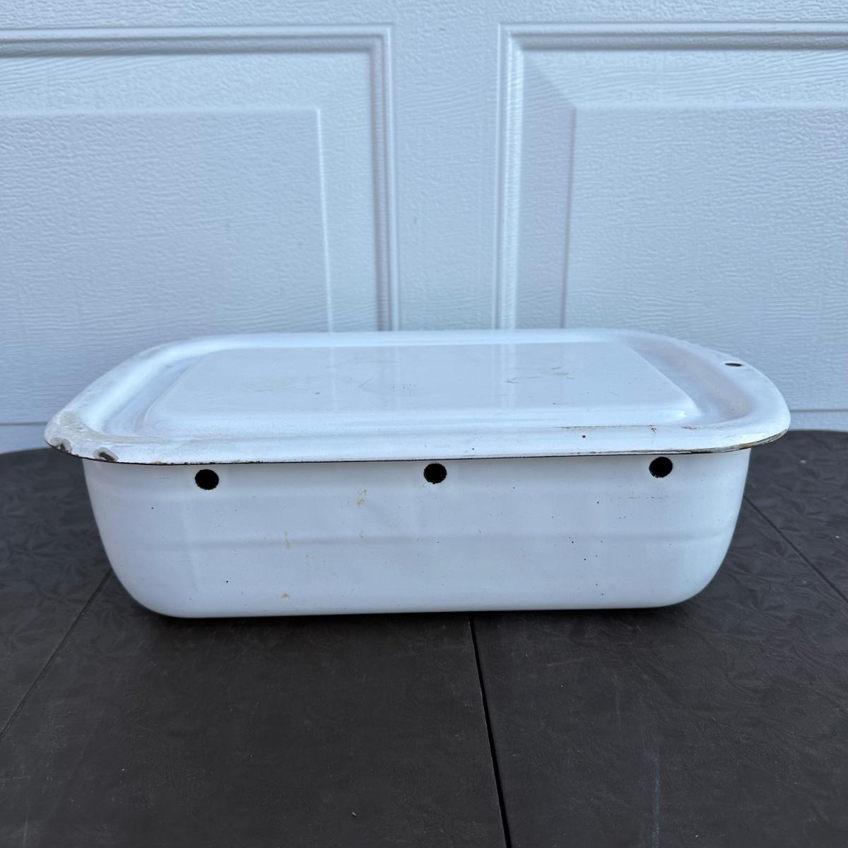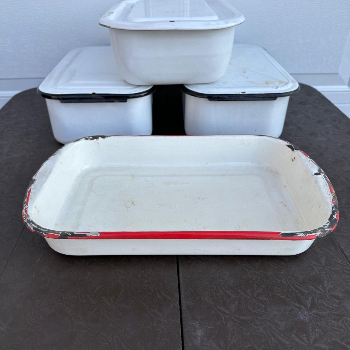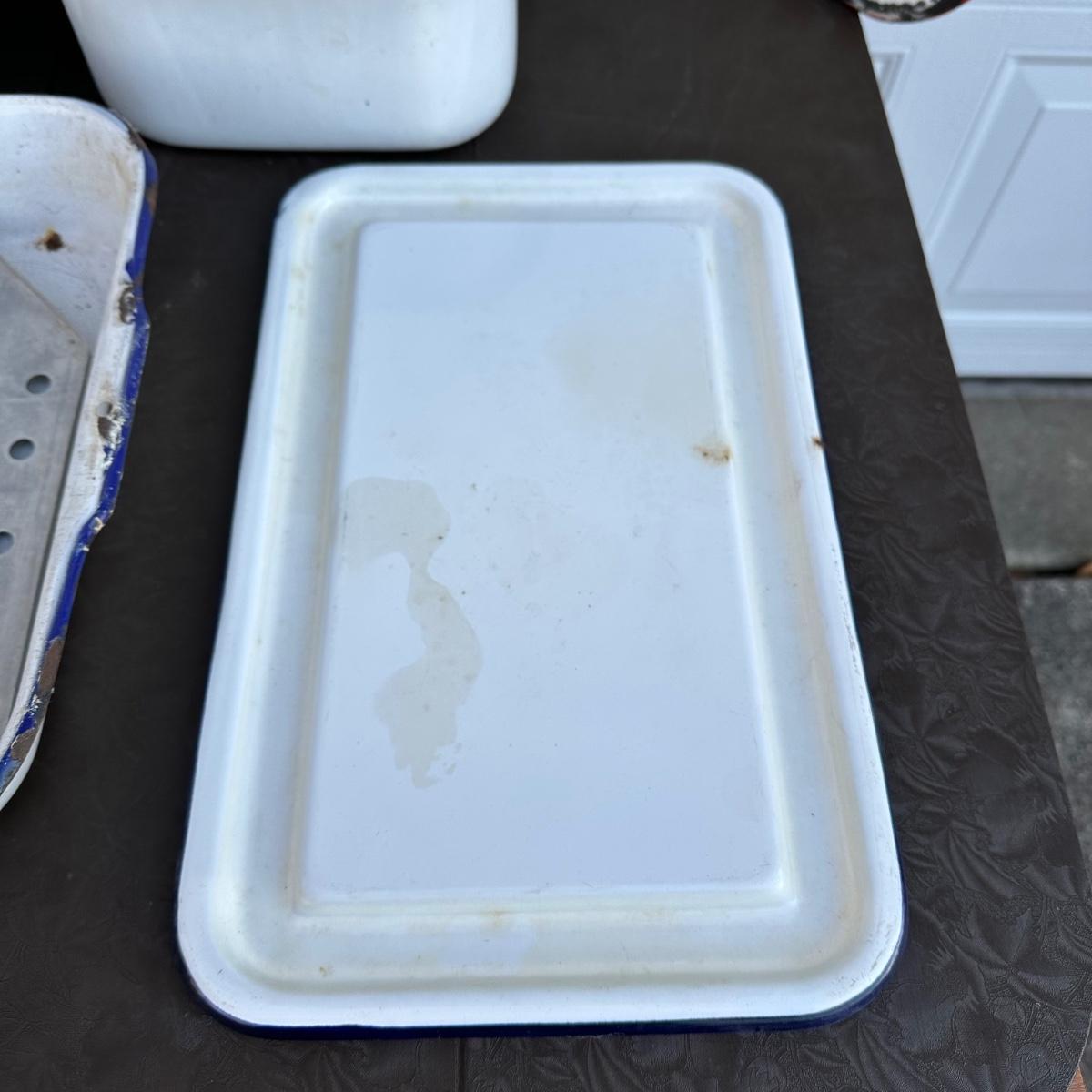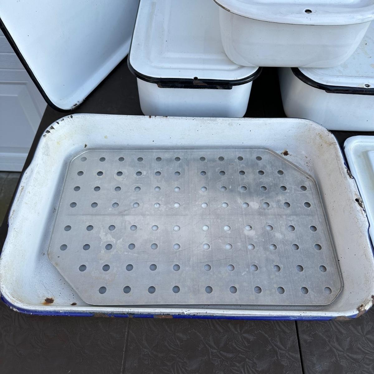 LOT 121N: Vintage White Enamel Refrigerator Boxes & Pans