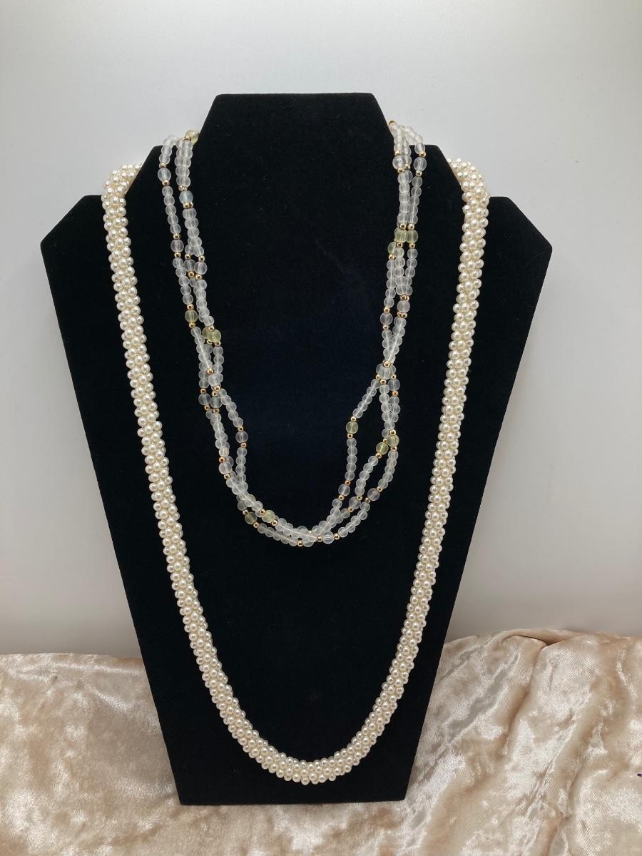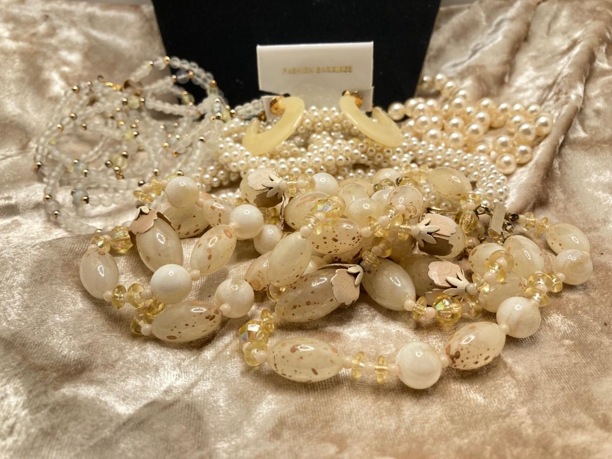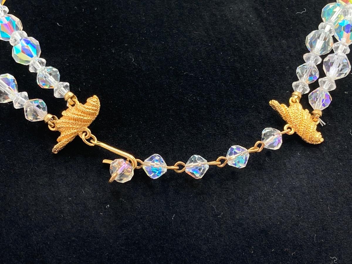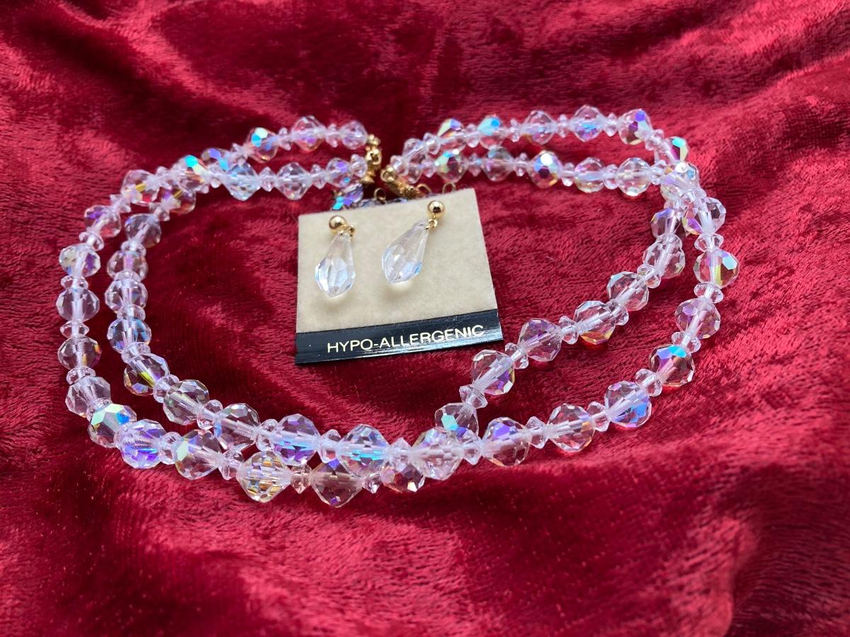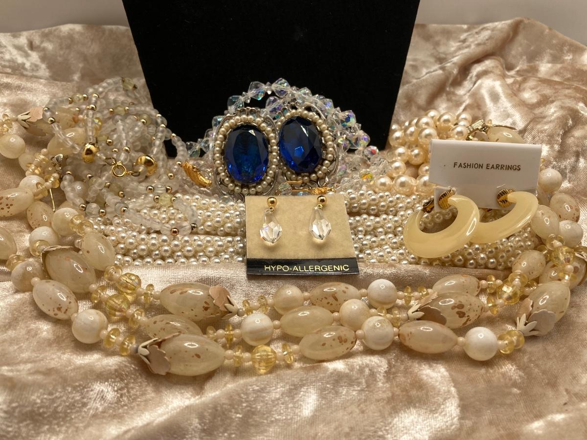 LOT 139J: Aurora Borealis Beaded Set, Glass Beaded Necklace, Blue Stone / Faux Pearl Earrings and More