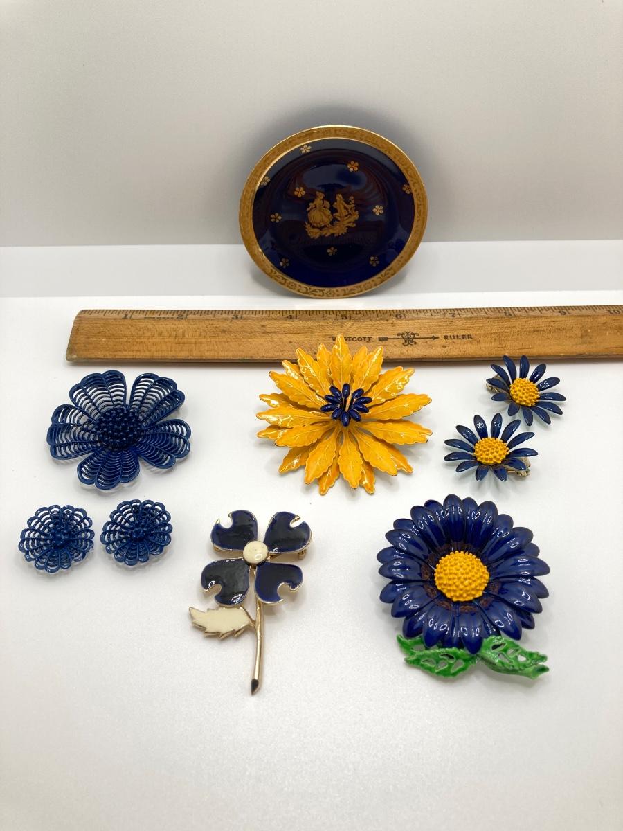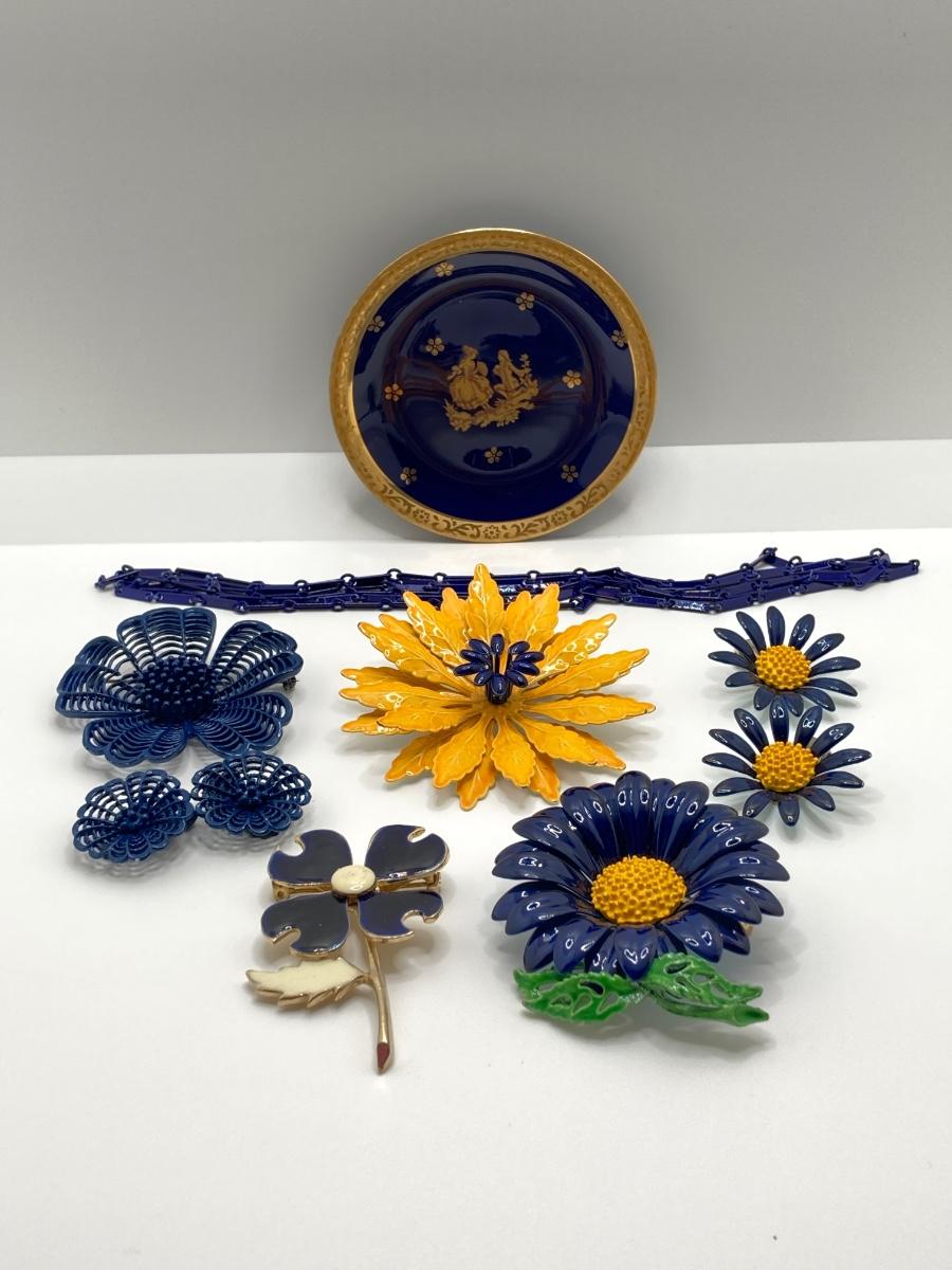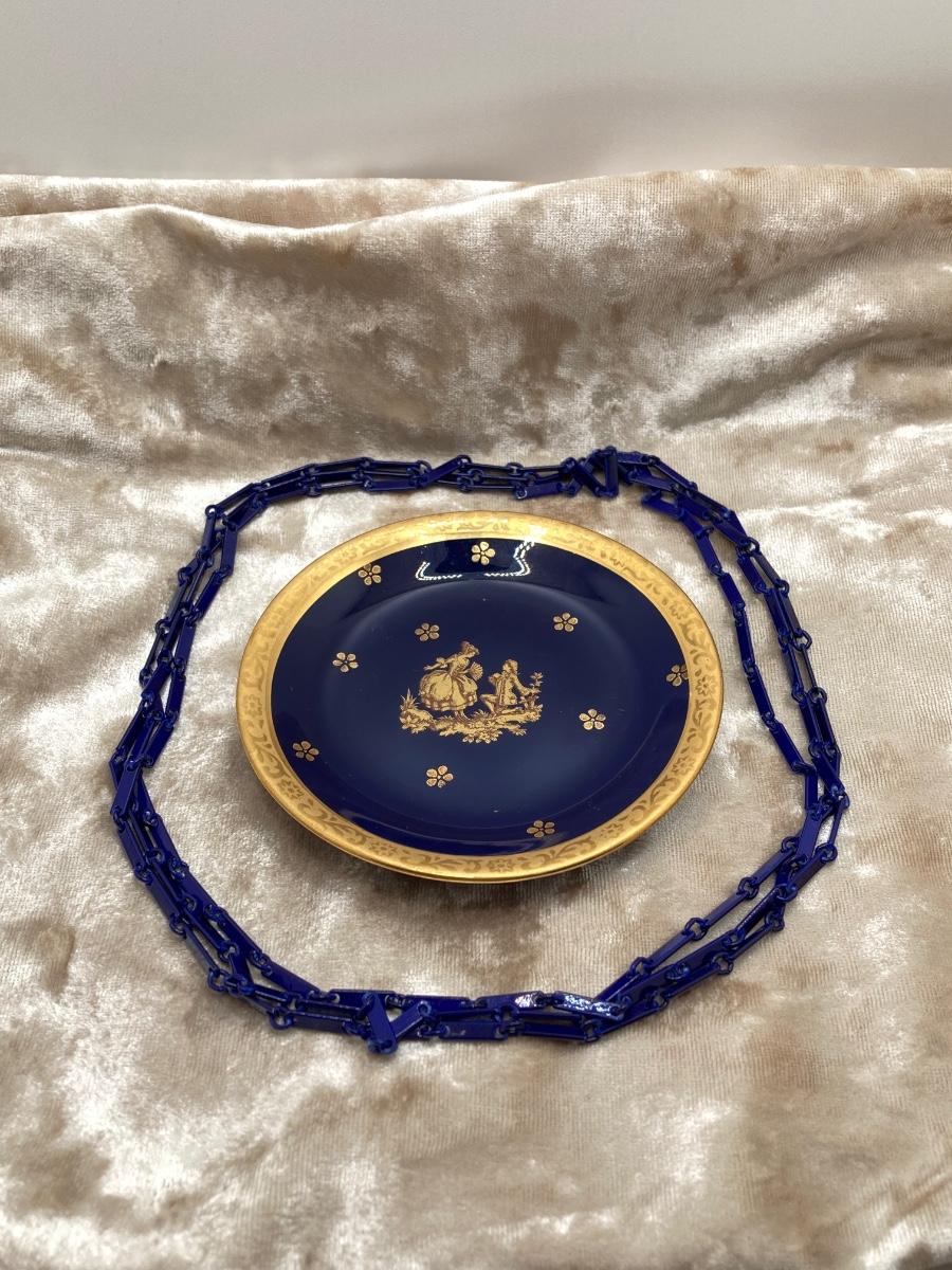 LOT 141J: Limoges Trinket Dish with Blue Themed Jewelry Collection