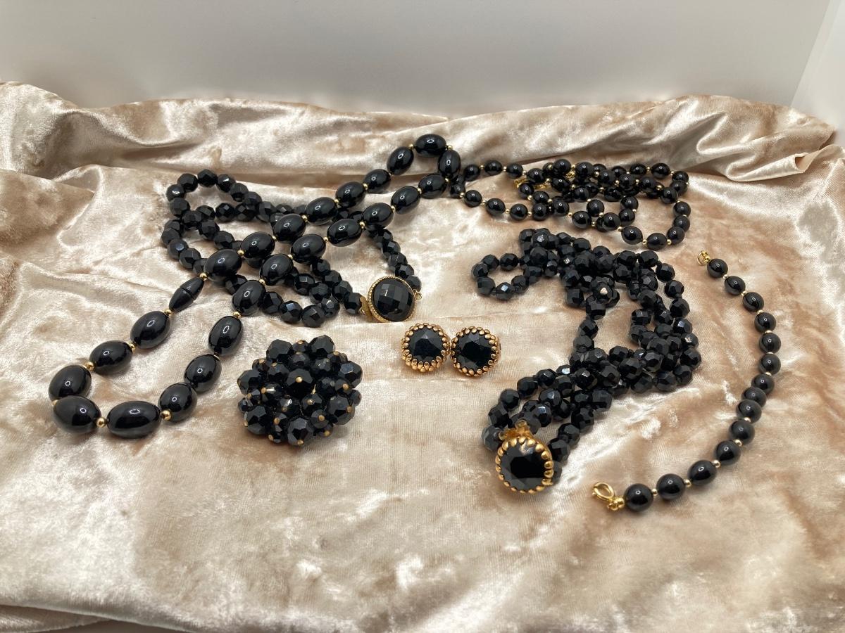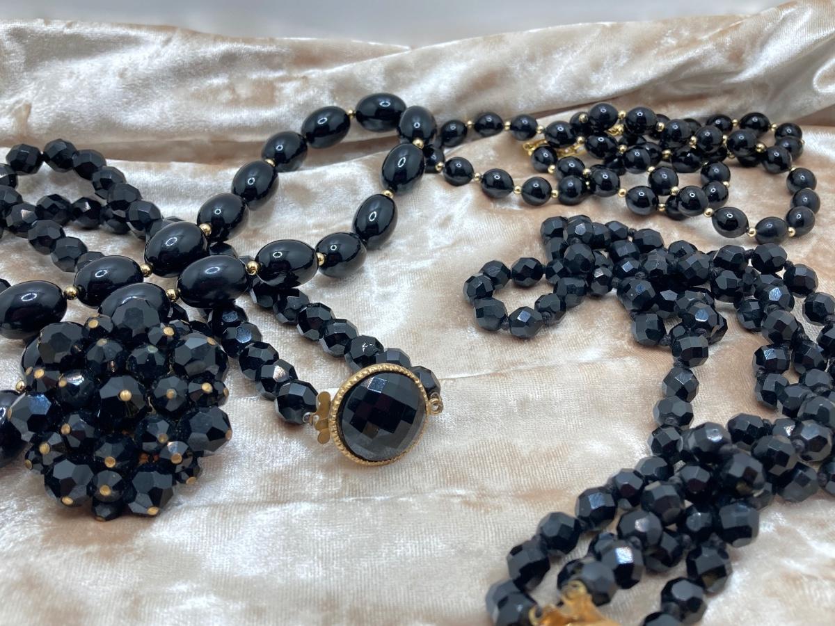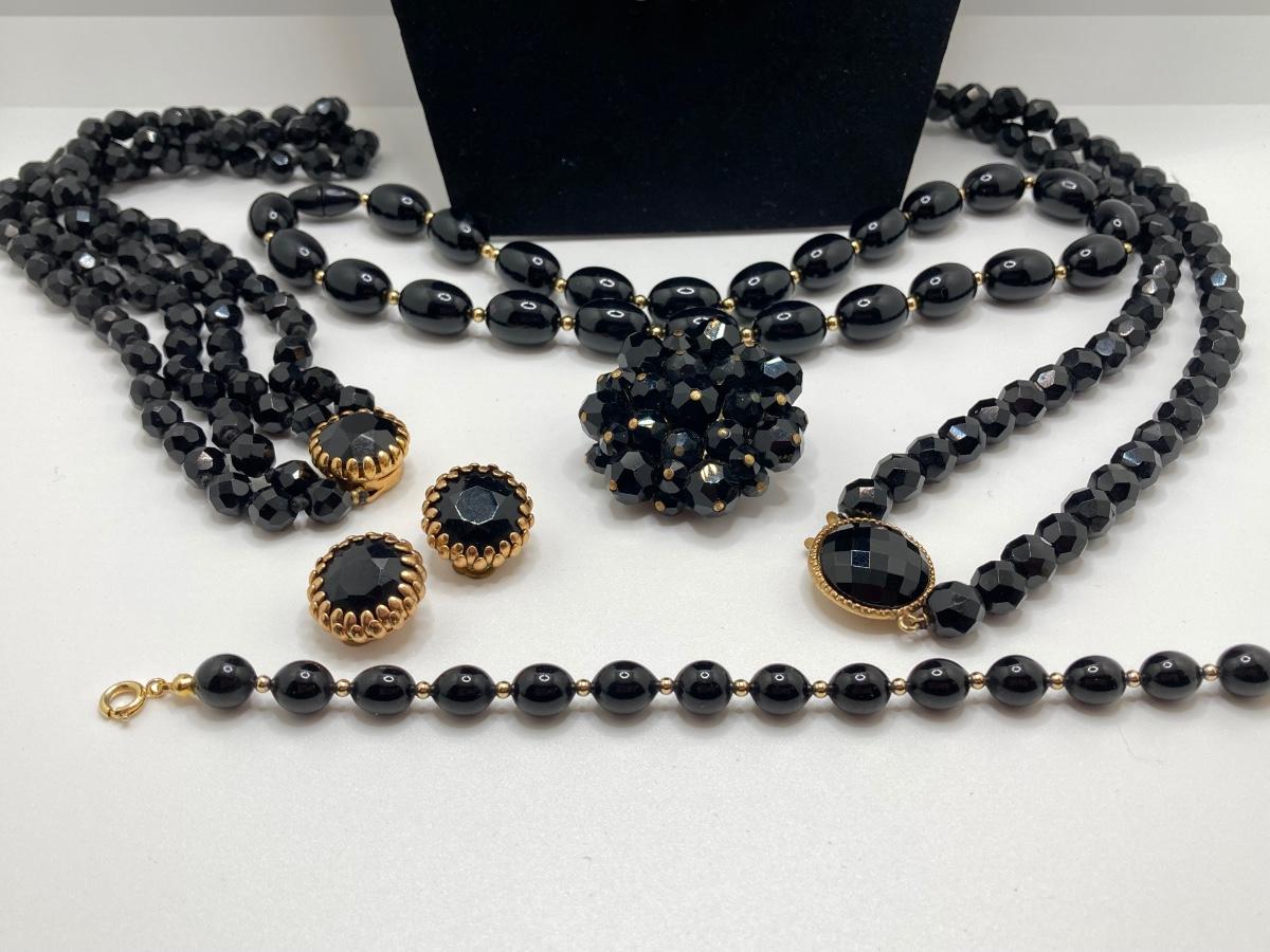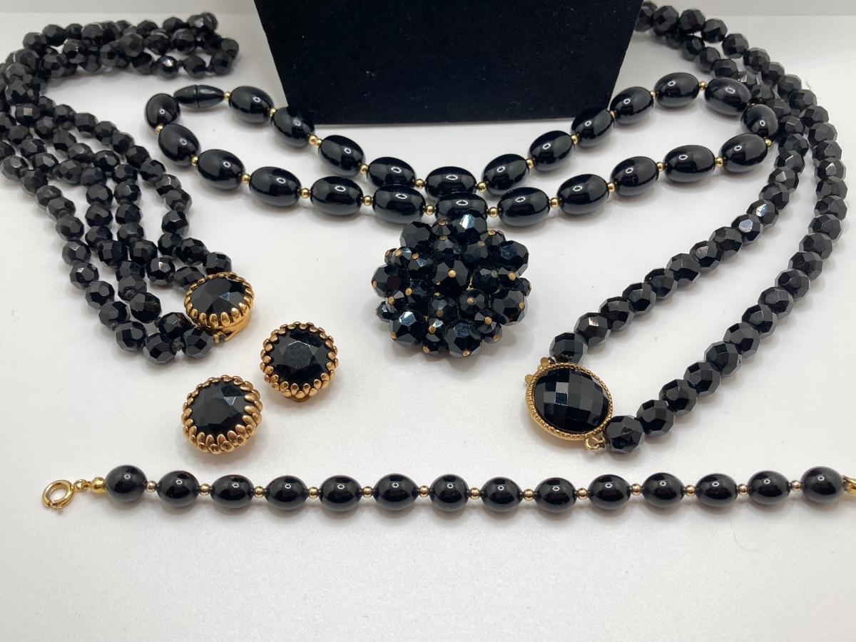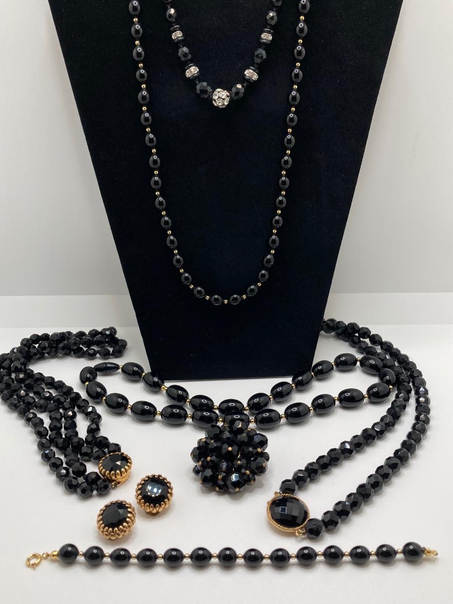 LOT 147J: Vintage Black Jewelry Collection - Glass Faceted Bead with Rhinestone Necklace and More