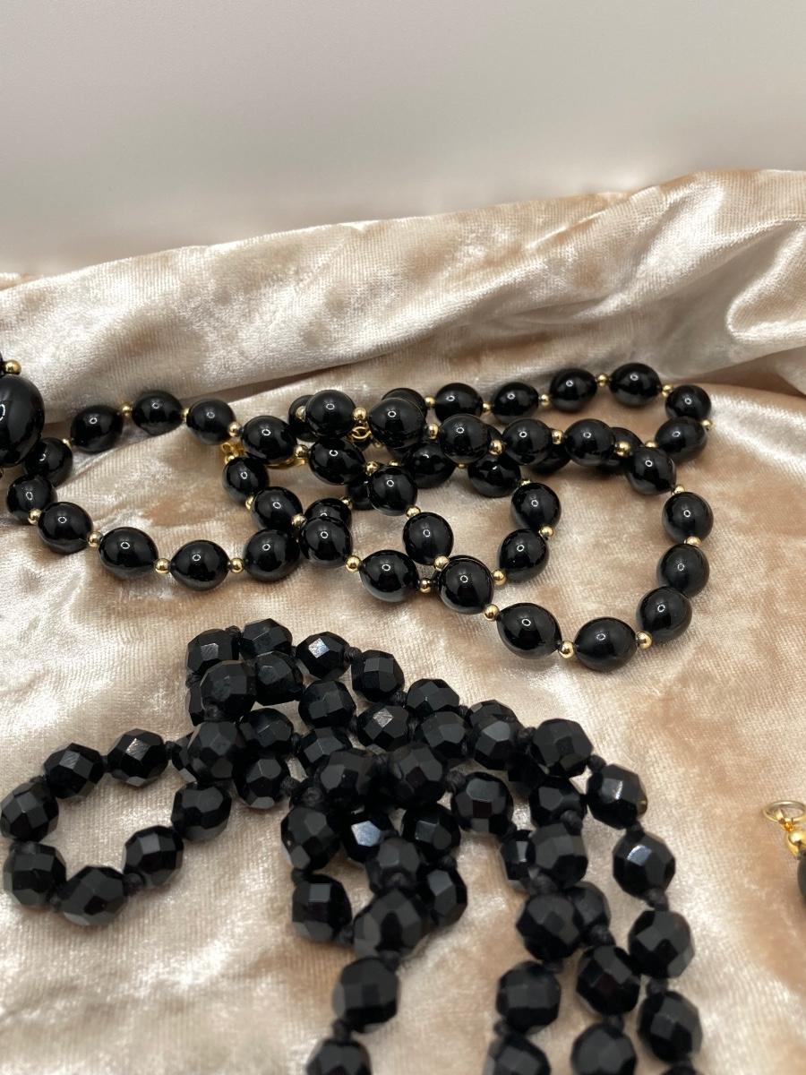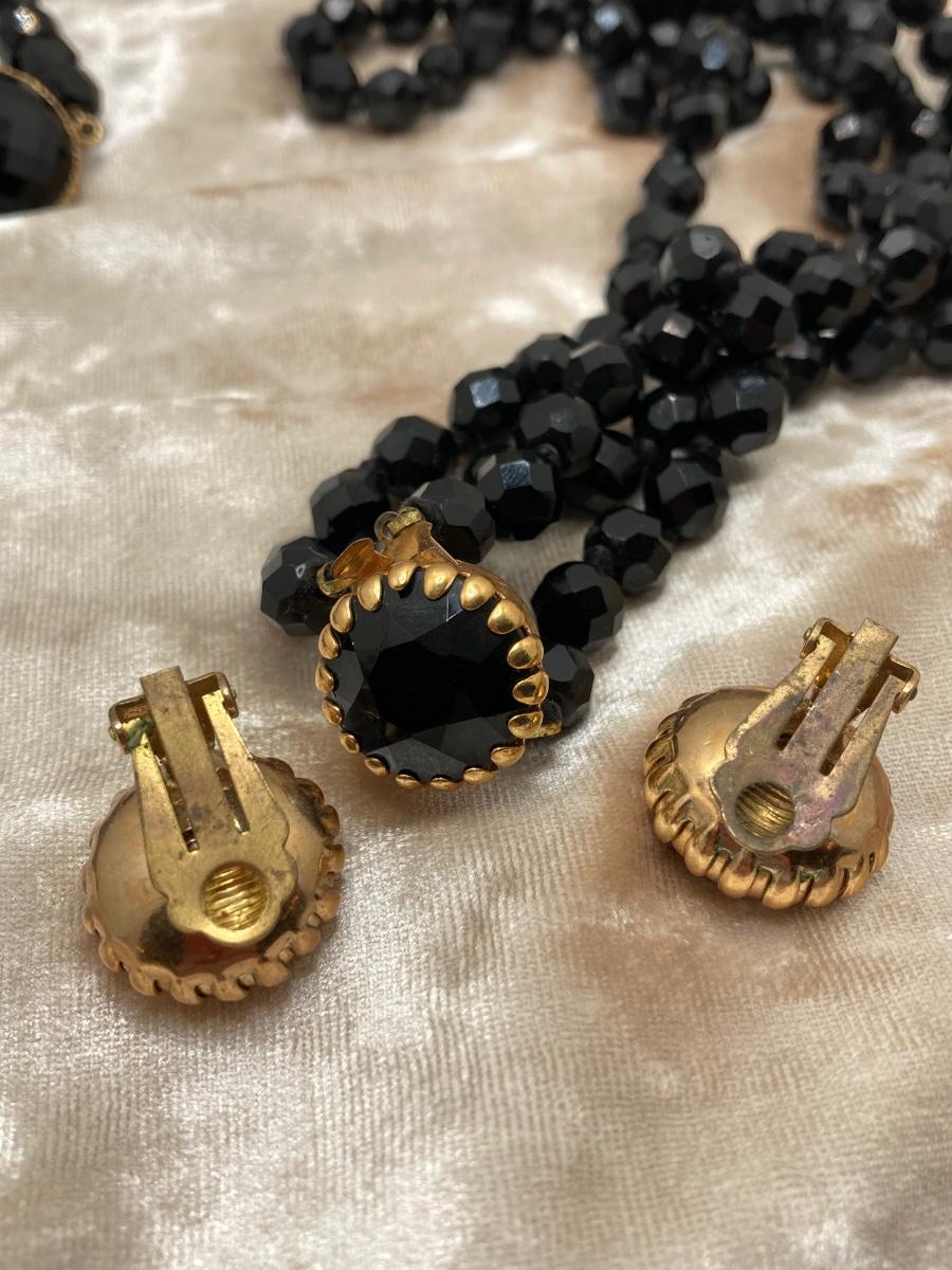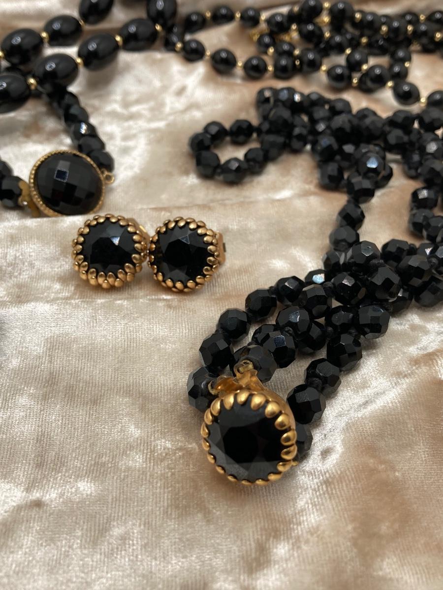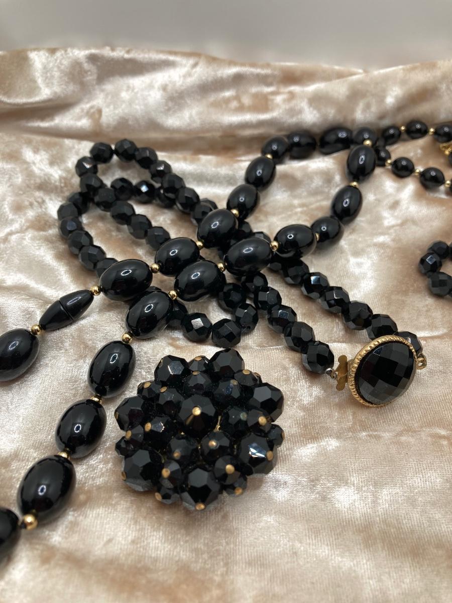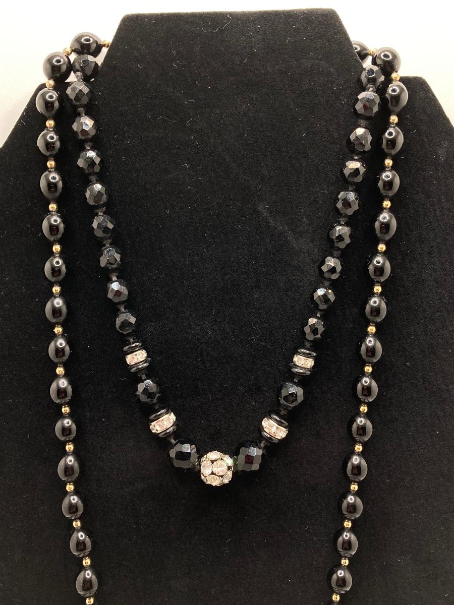 LOT 147J: Vintage Black Jewelry Collection - Glass Faceted Bead with Rhinestone Necklace and More