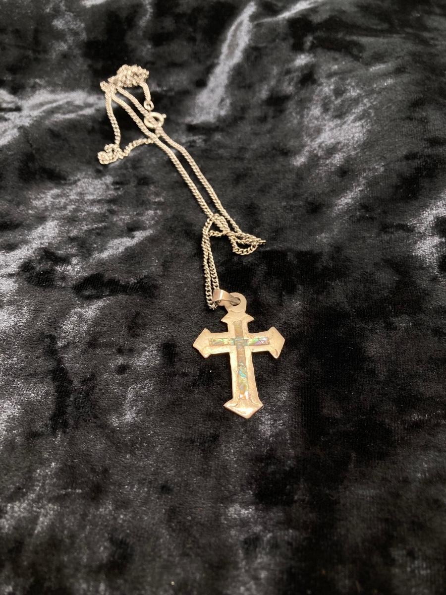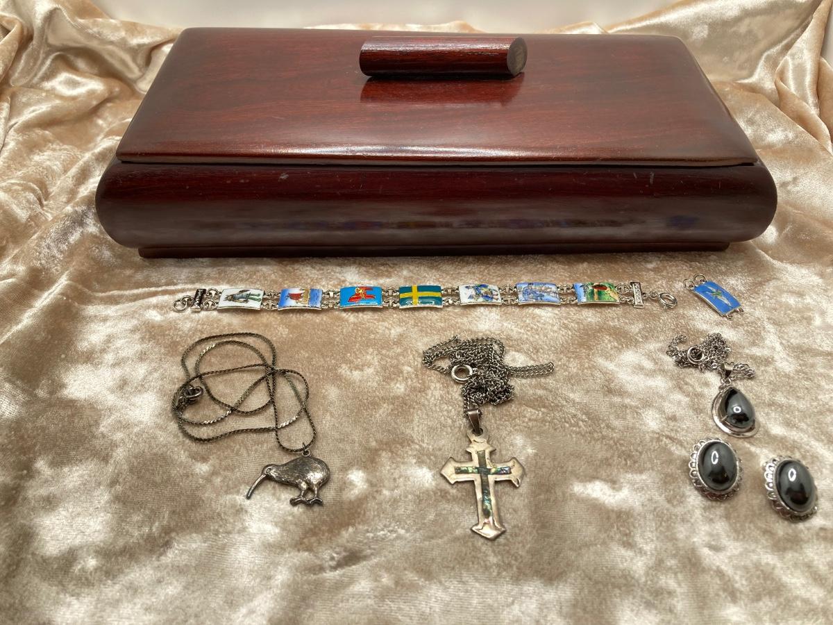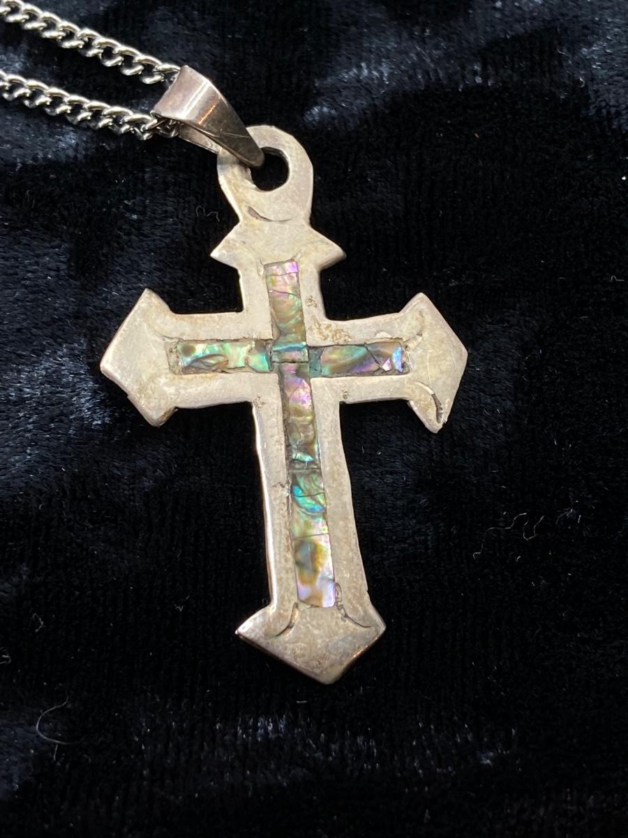 LOT 153J: Vintage Mexico Abalone Cross Pendant, Wooden Storage Box and More