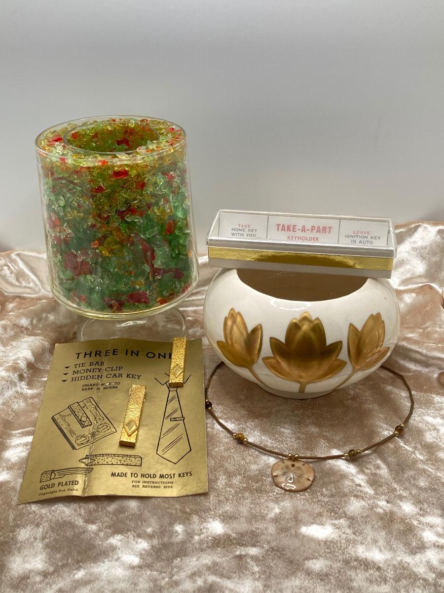 LOT 154J: Real Sand Dollar Tiger's Eye Necklace with Vintage Key Holders and More