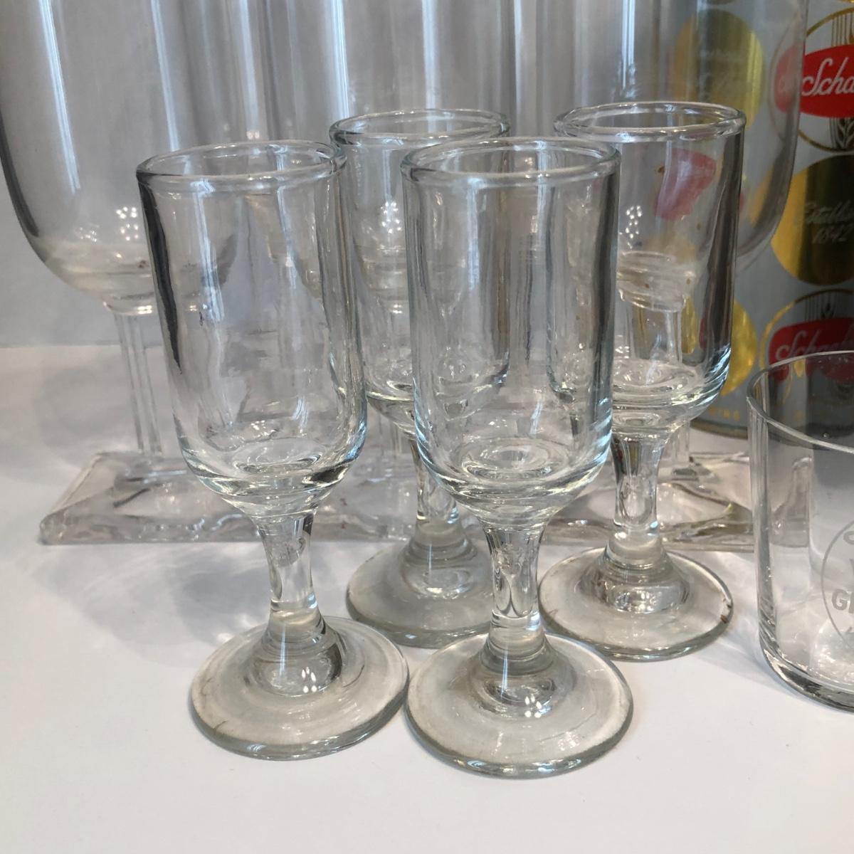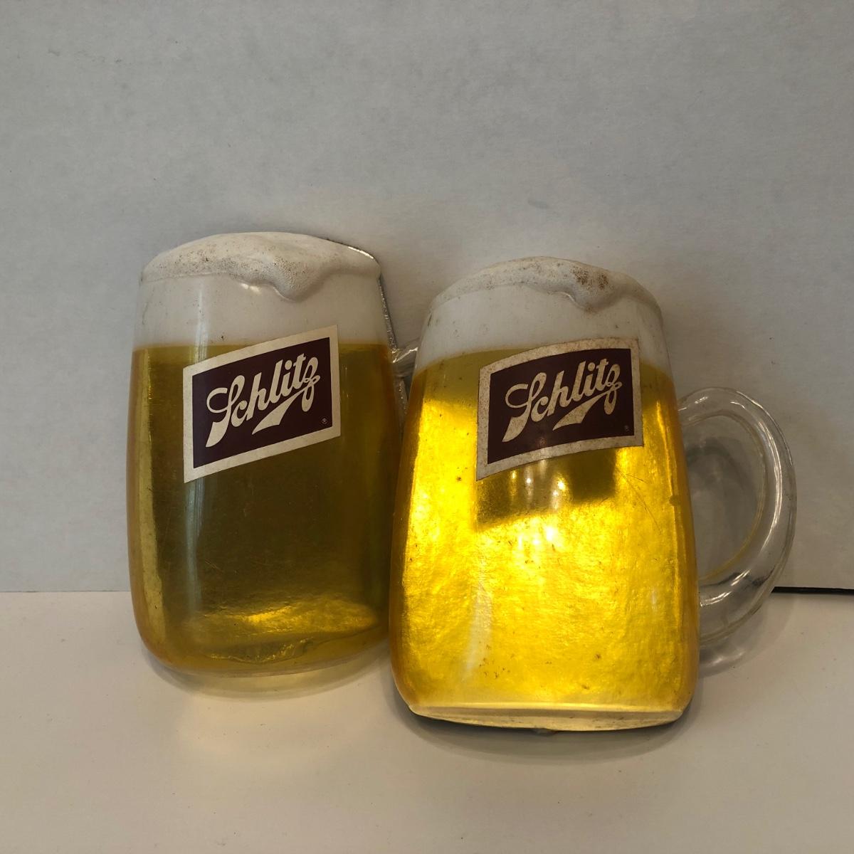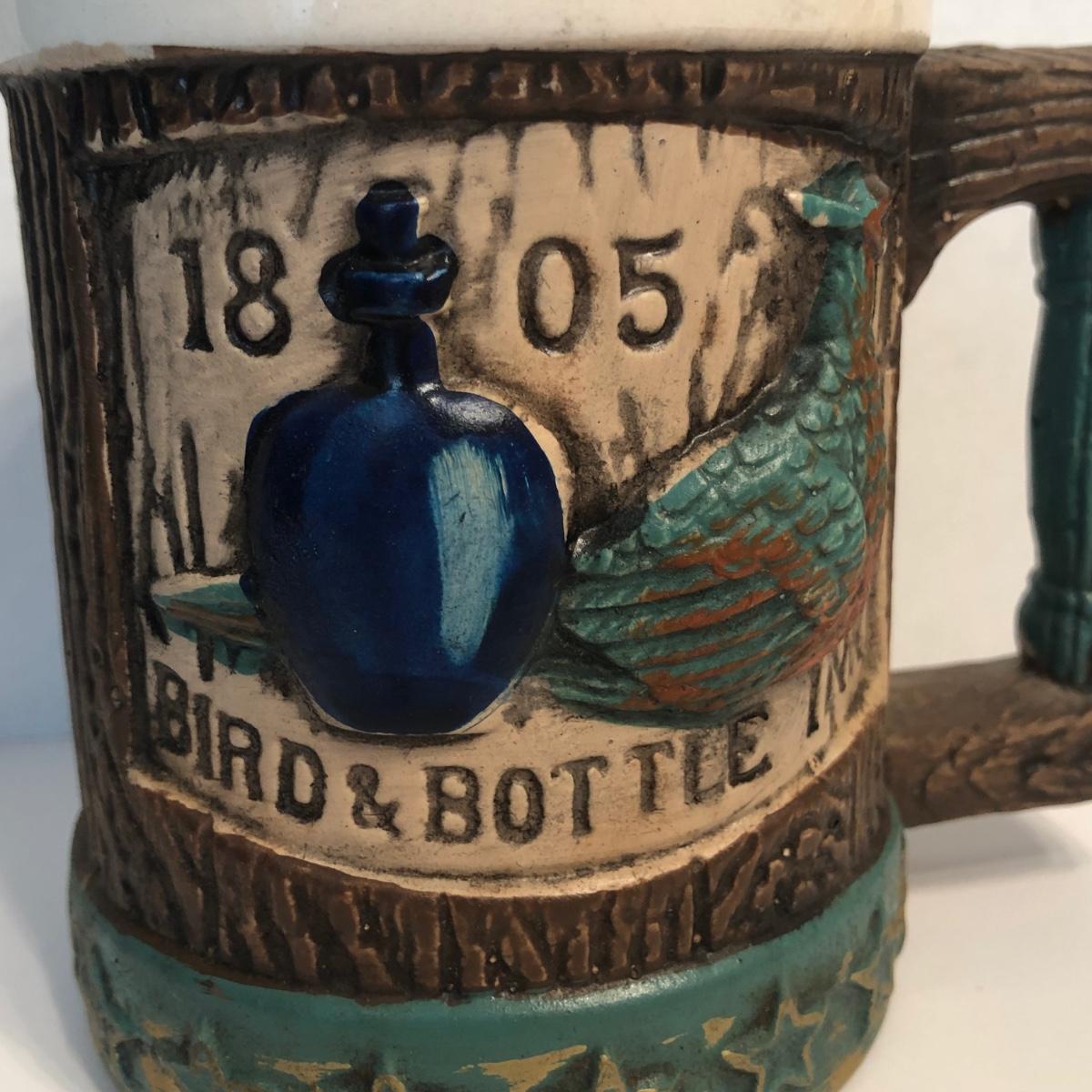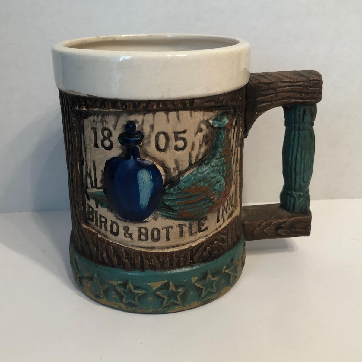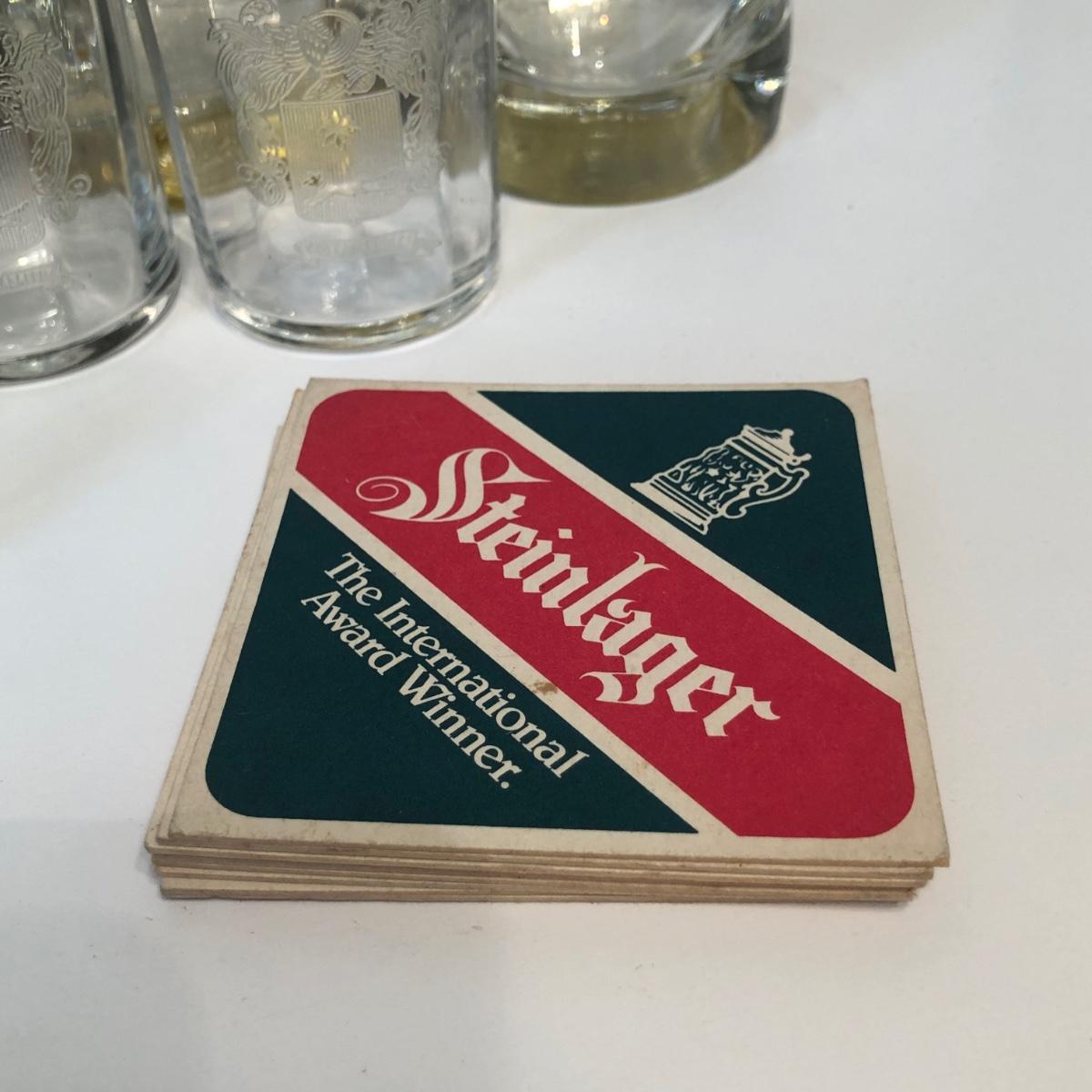 LOT 164M: Large Bar Collection - Federal Mini Beer Mug Shot Glasses, Schlitz Plastic Beer Mug Decor, Vintage Shaefer & Steinlager Paper Coasters, 1805 Bird & Bottle Inn Napcowarae Pottery Mug & More