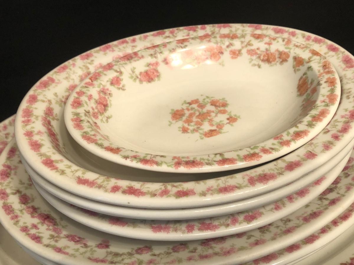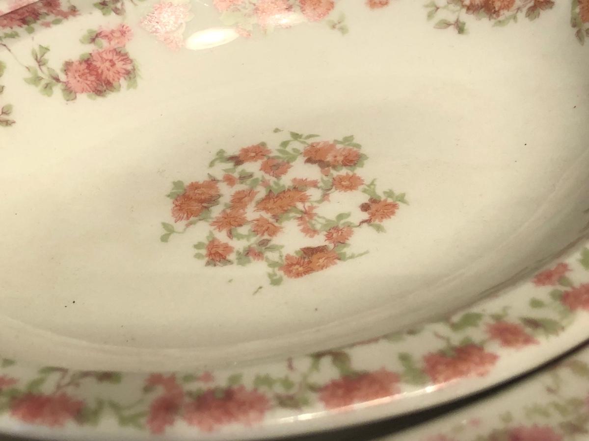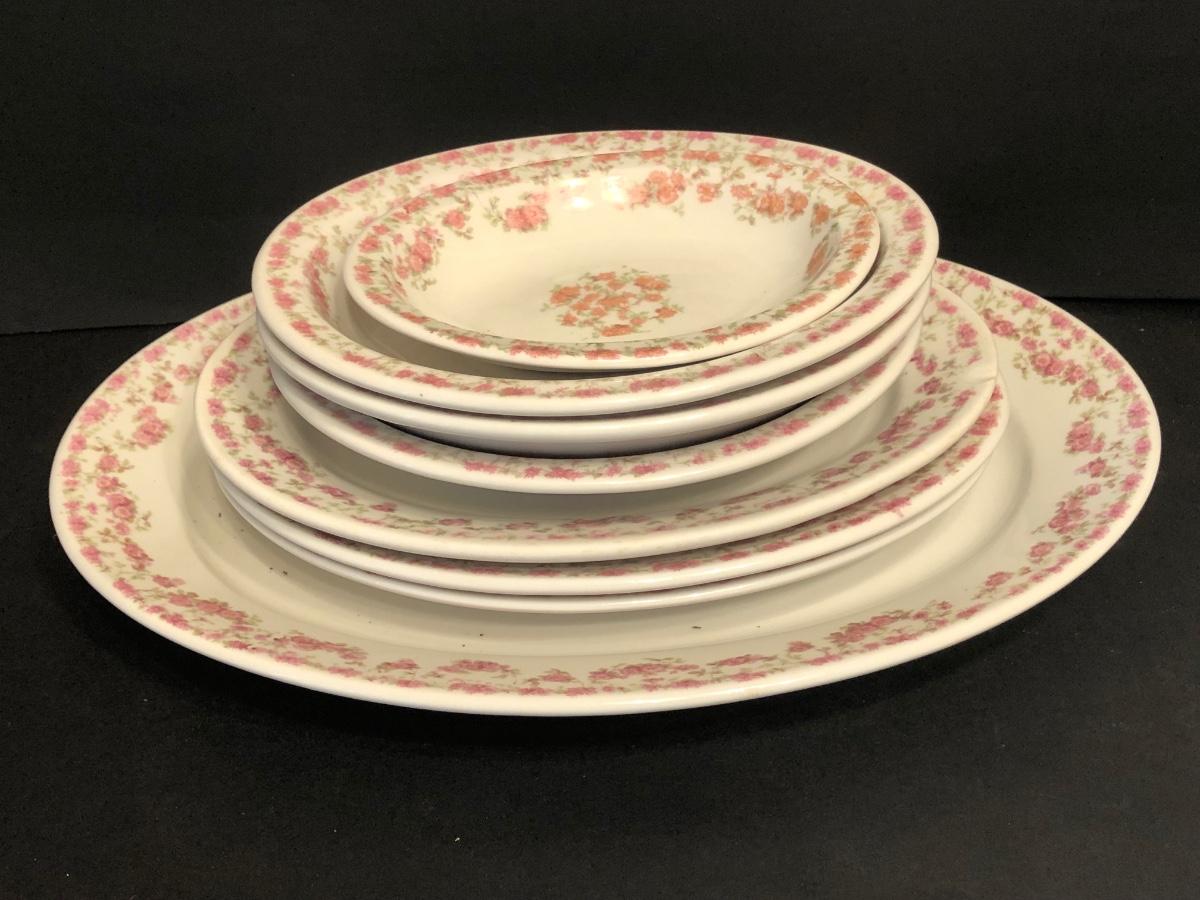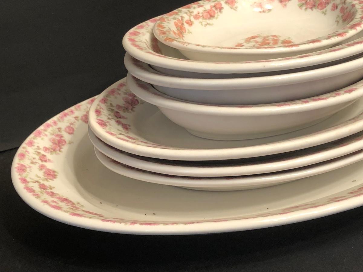 LOT 171M: Lamberton China Serving Platters, Federal Crystal Dish, Silver Plate Serving Utensils