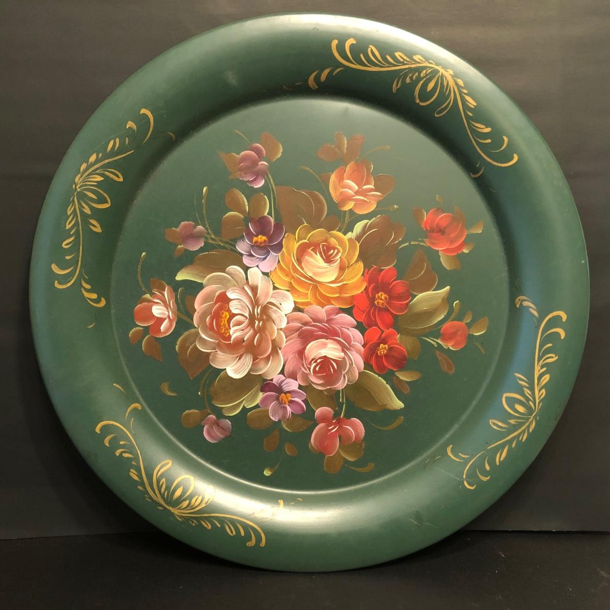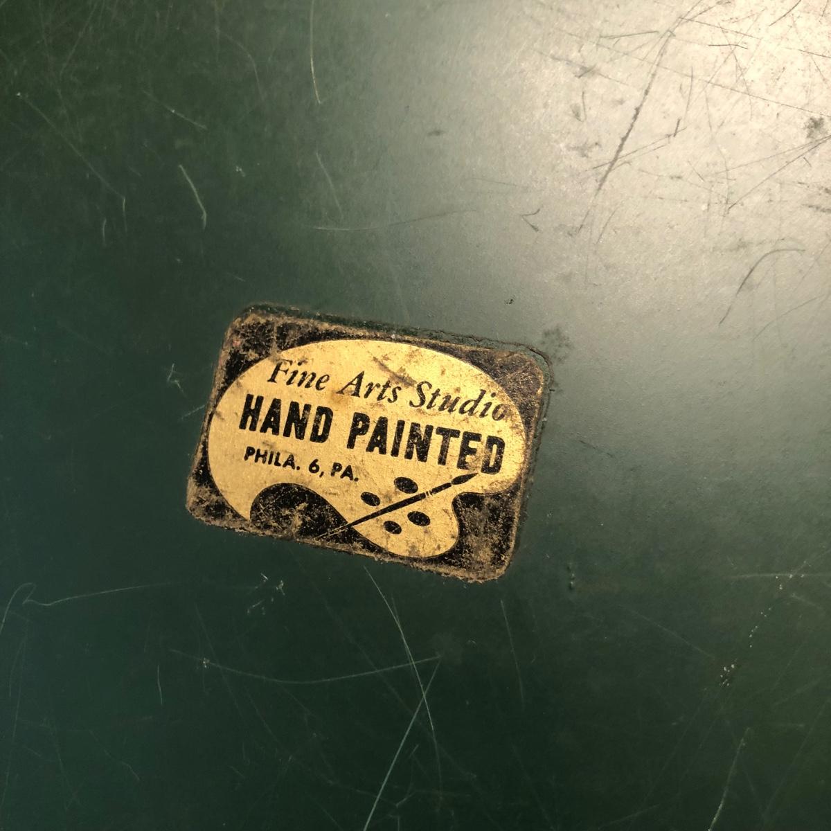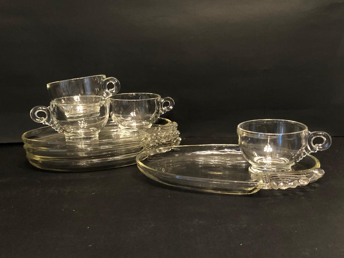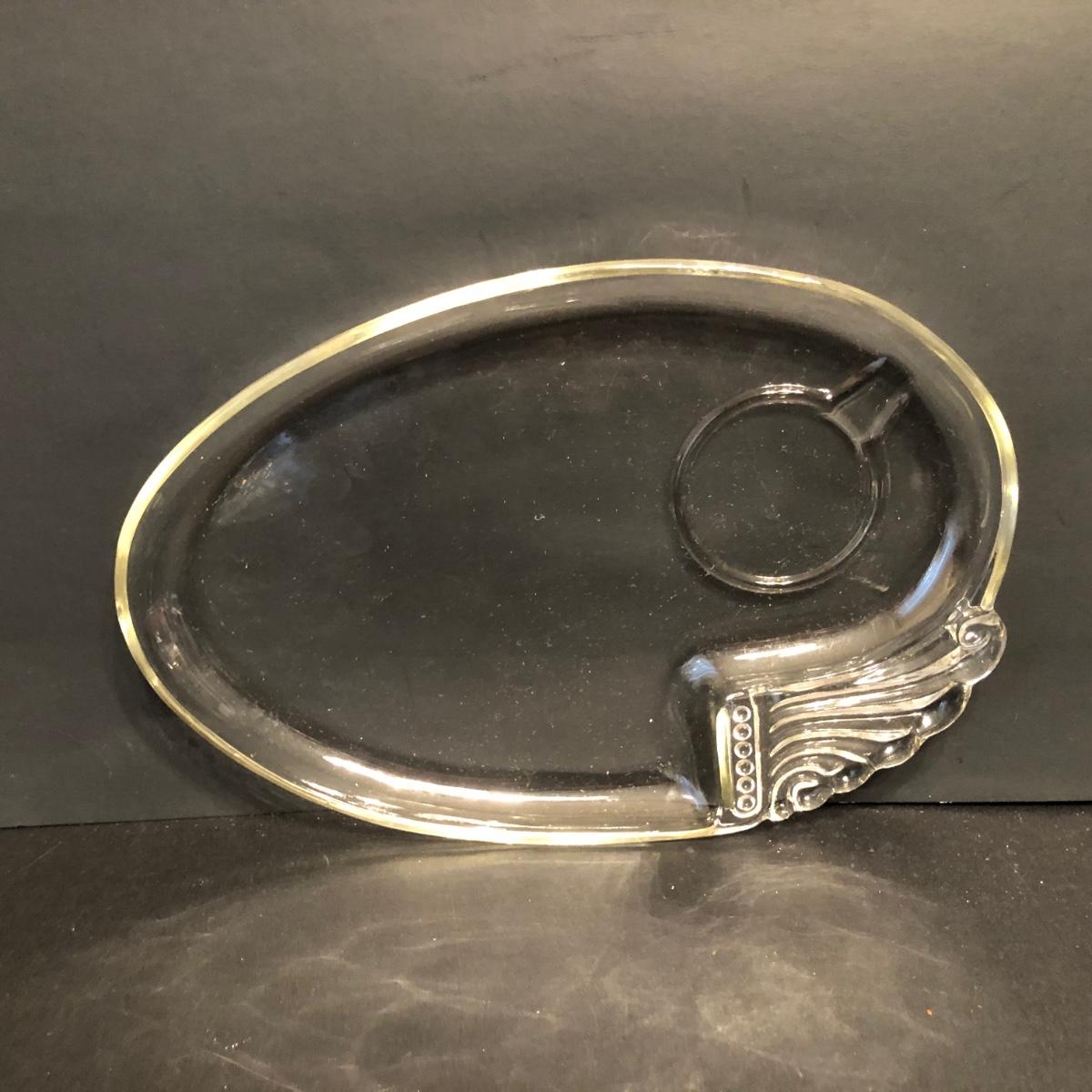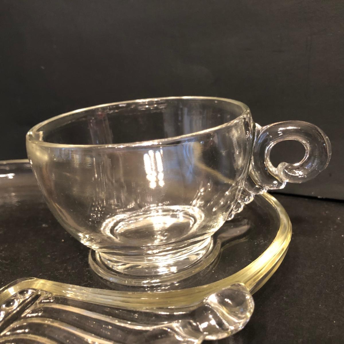 LOT 172M: Large Hand Painted Decor Piece & 1940s Art Deco Hazel Atlas Glass Parti-Ade Snack Plates & Cups (4)