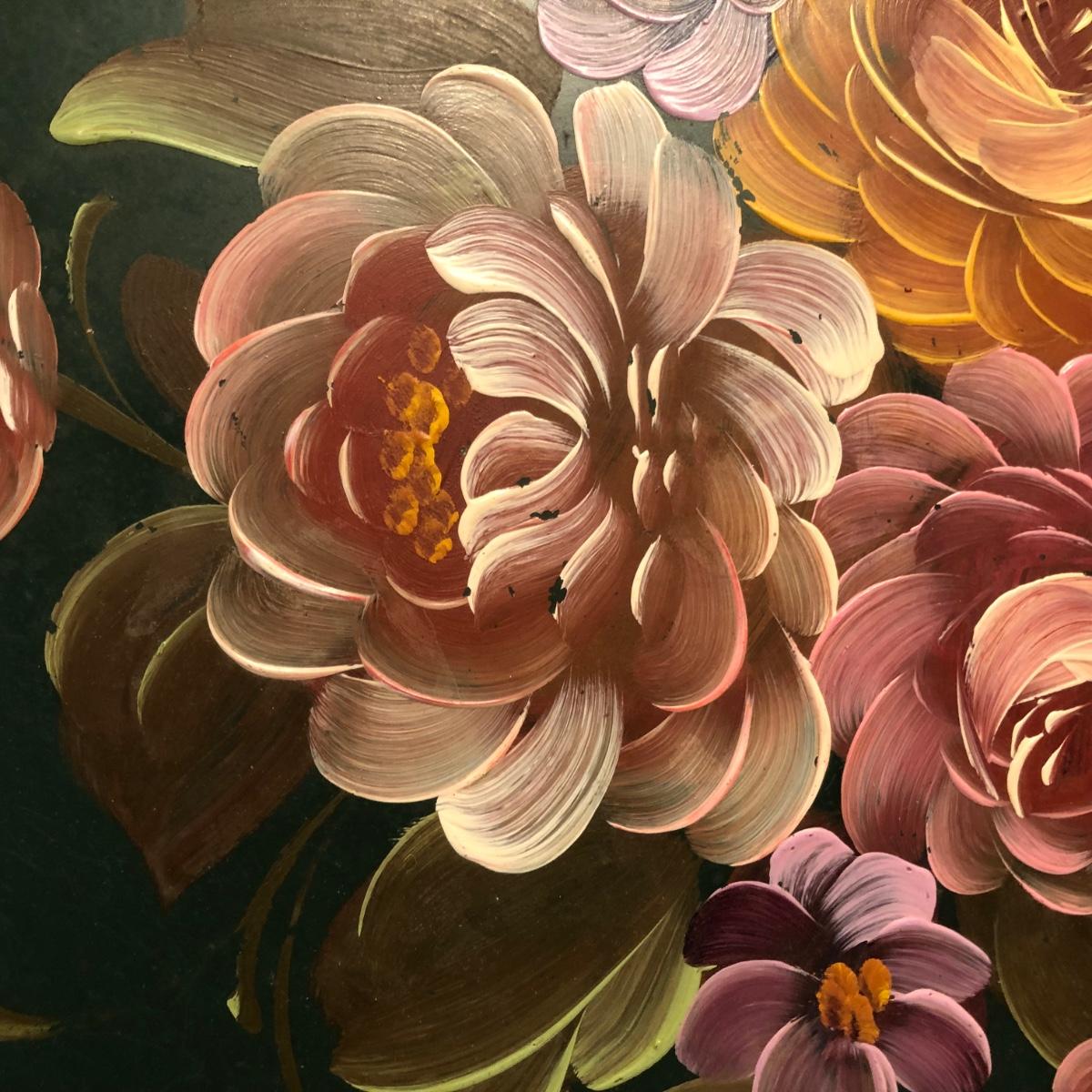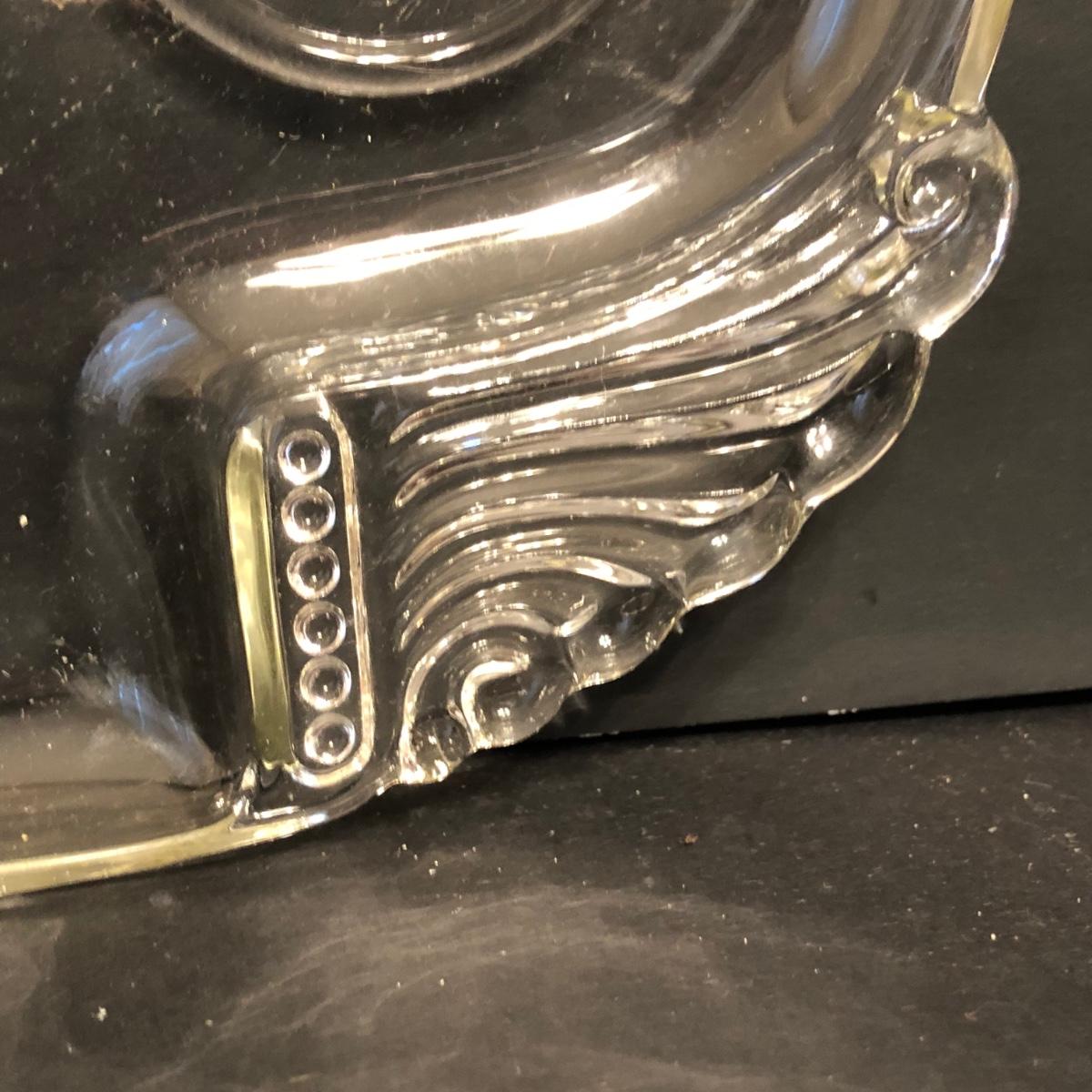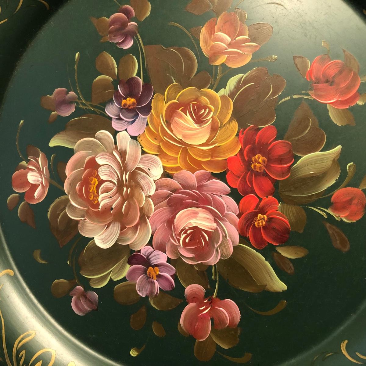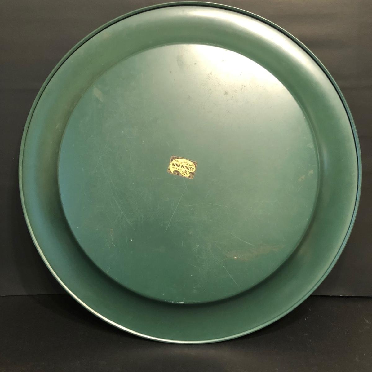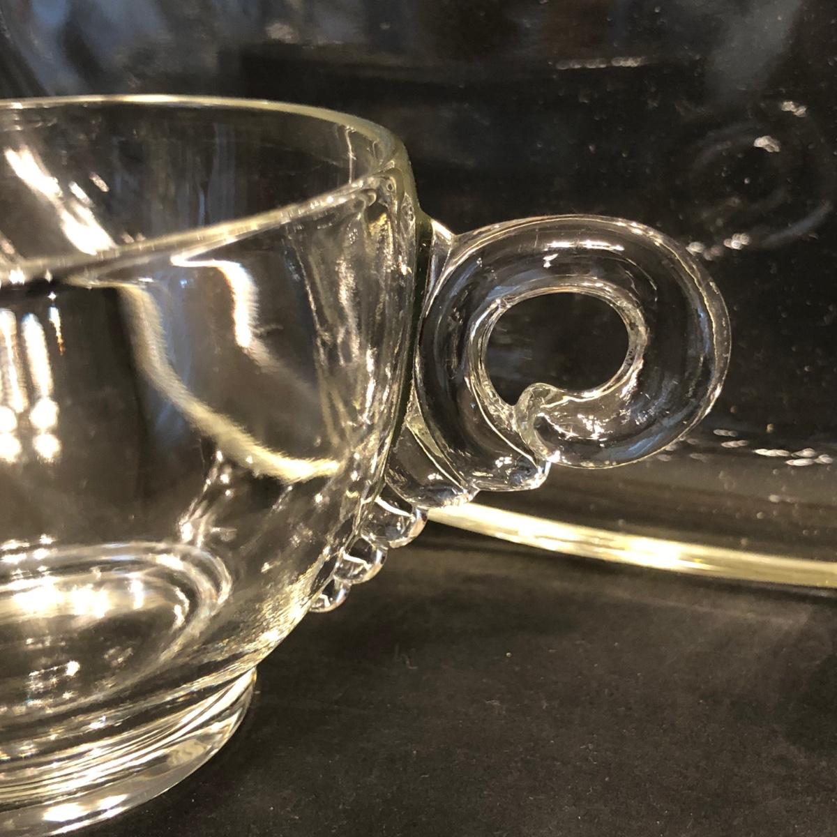 LOT 172M: Large Hand Painted Decor Piece & 1940s Art Deco Hazel Atlas Glass Parti-Ade Snack Plates & Cups (4)