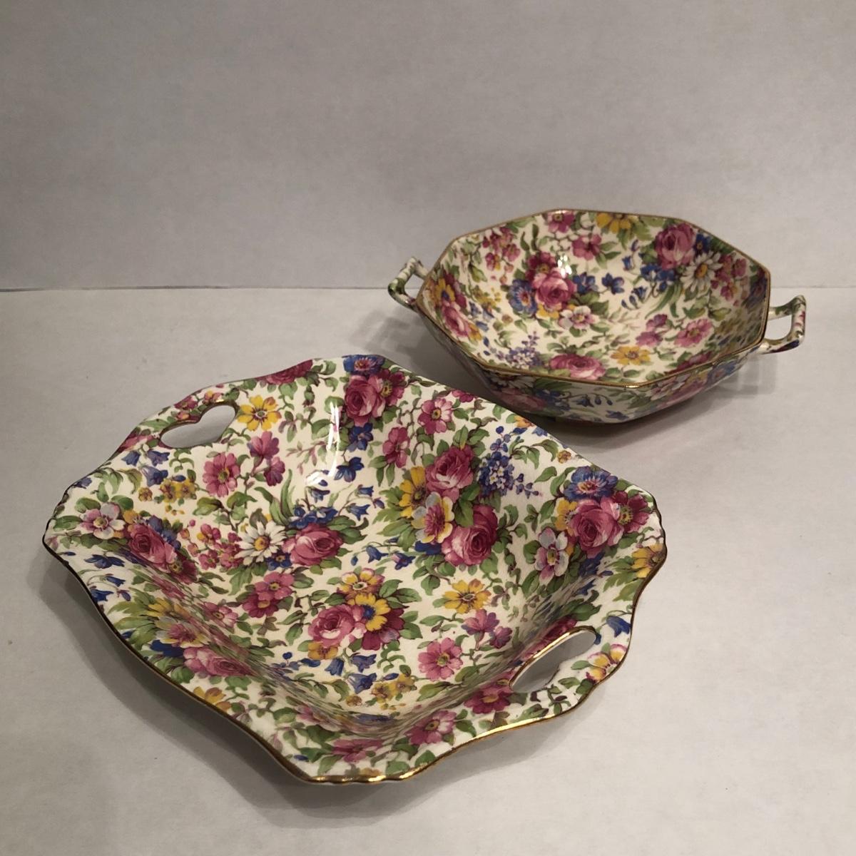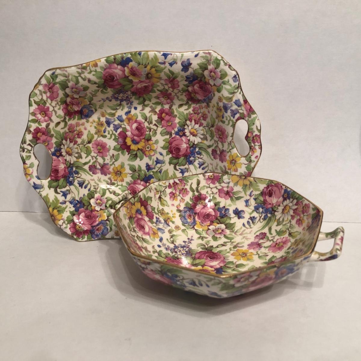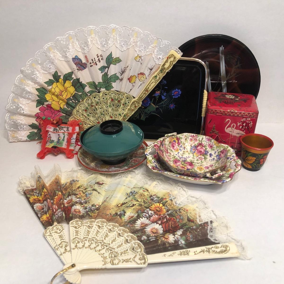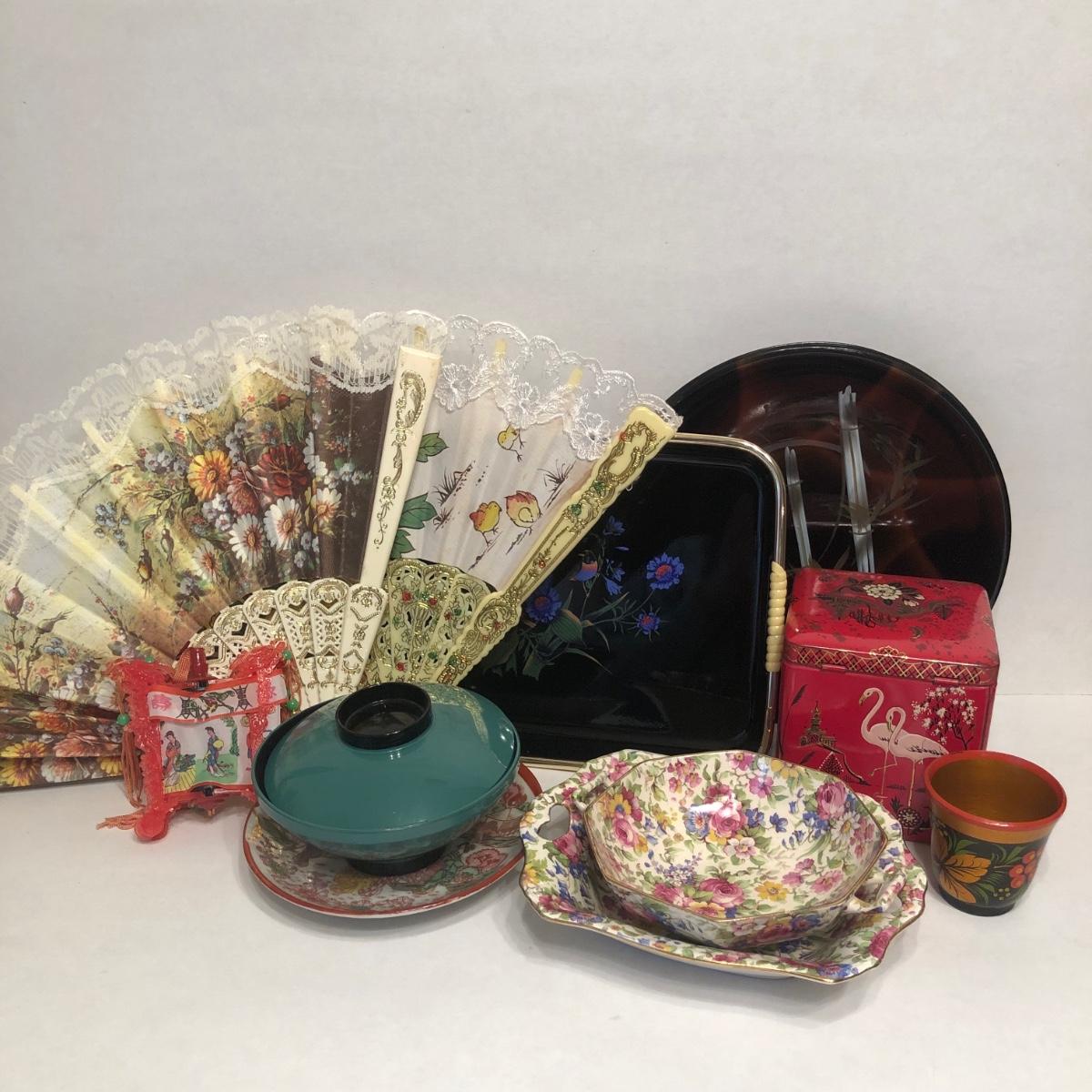 LOT 173M: Vintage Lidded Rice Bowl, Tea Tin, Floral China, Plates & More