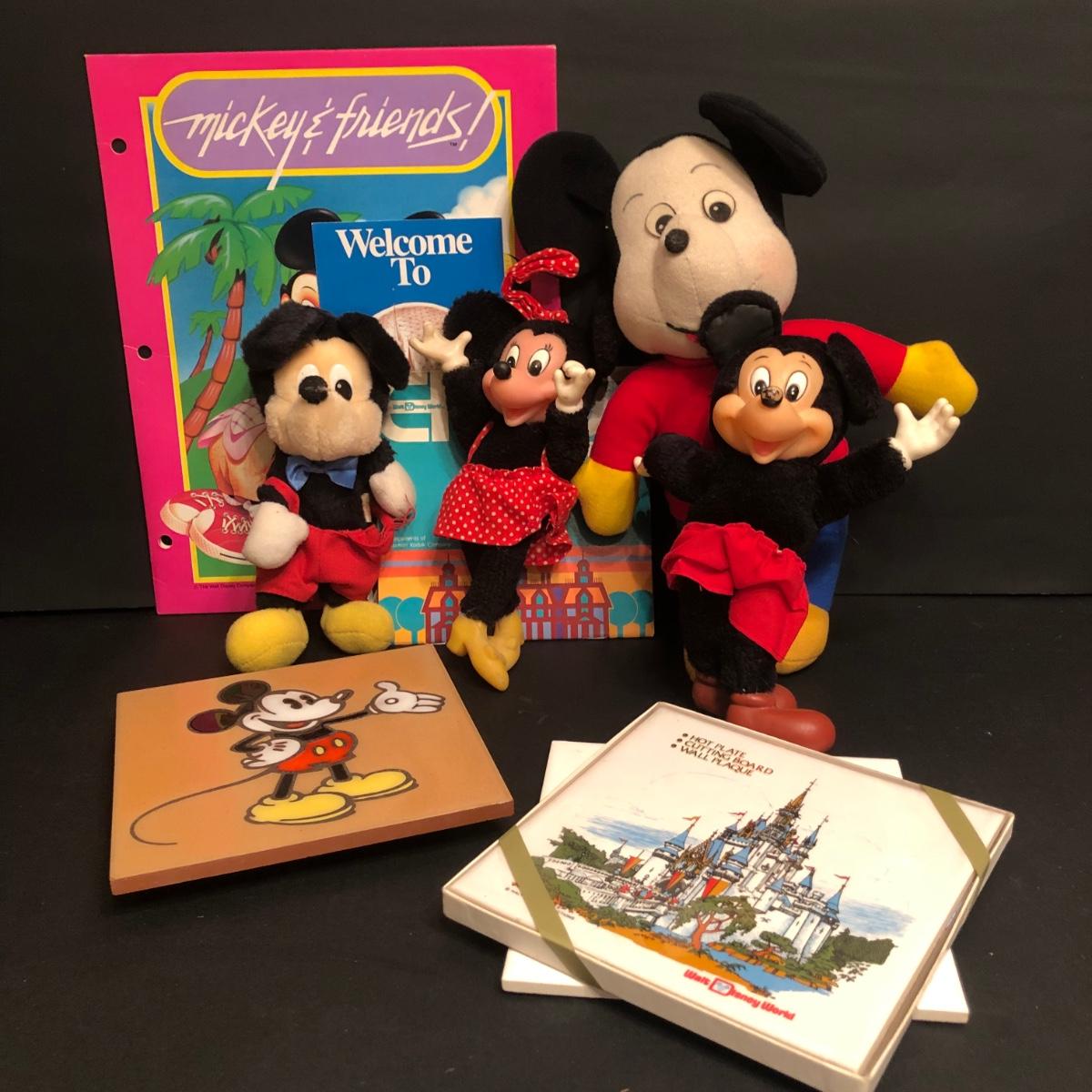 LOT 176M: Vintage Disney Collection - Souvenir Trivets, Folder, 1980s Epcot Guides & Mickey Mouse Toys