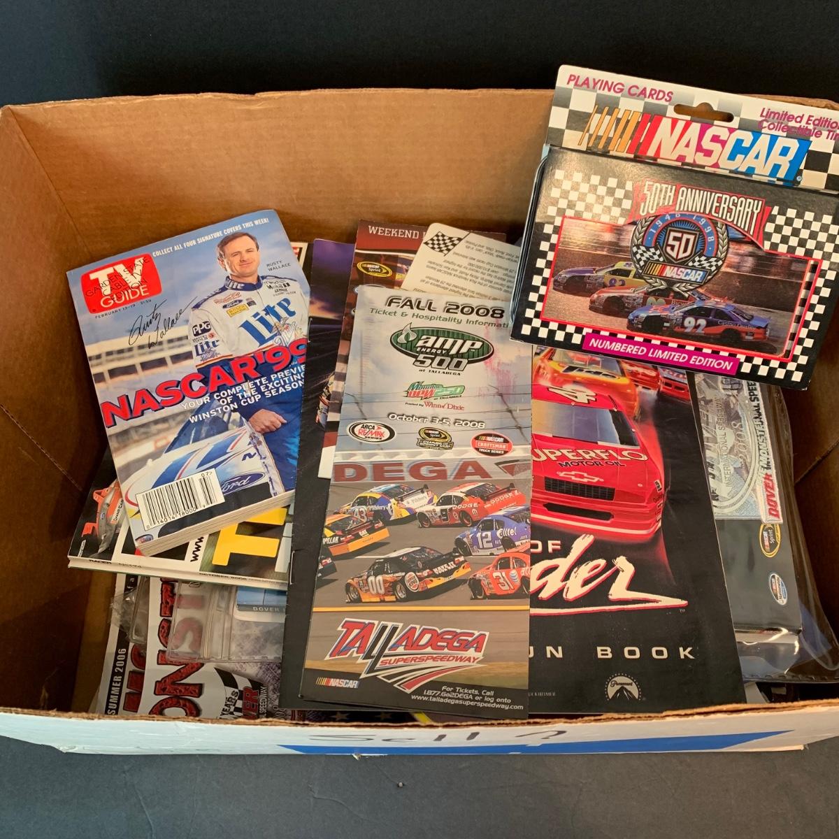 LOT 180R: Large Collection of Nascar Memorabilia/Magazines, Programs etc..