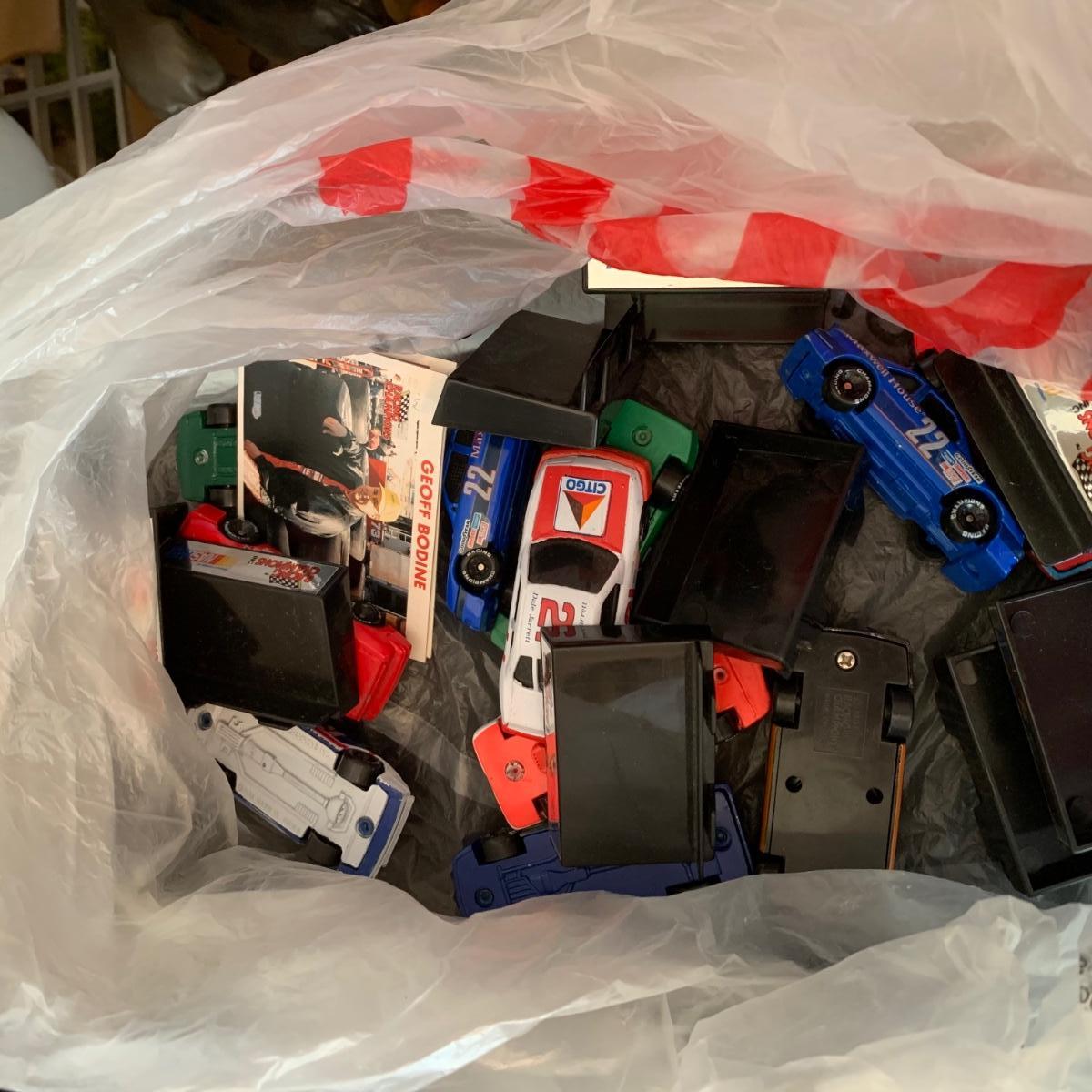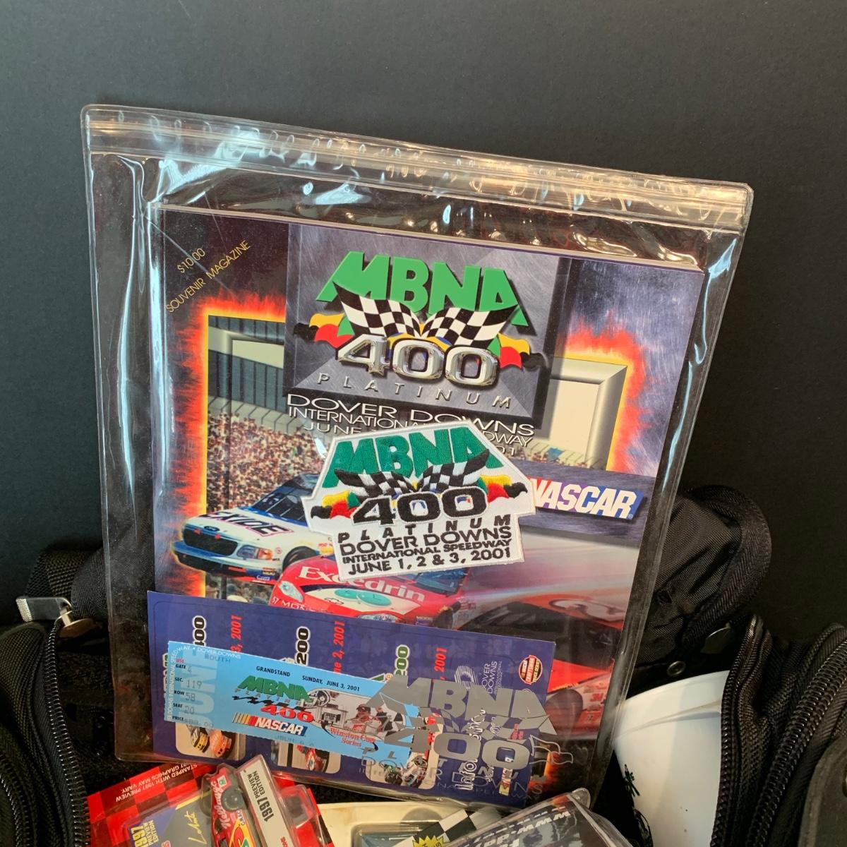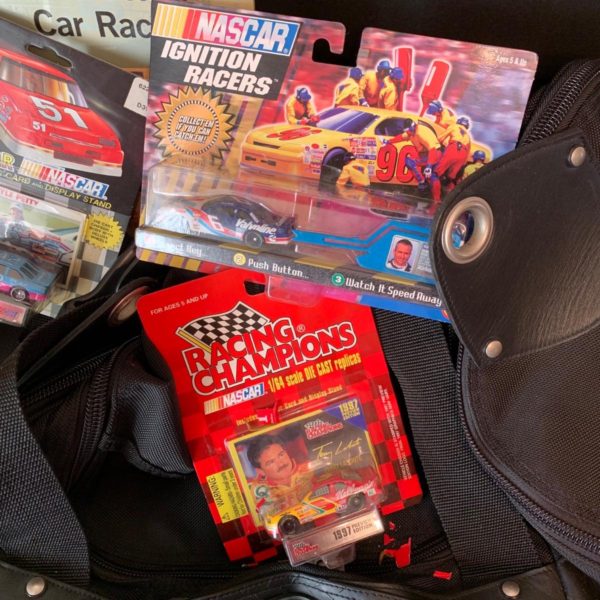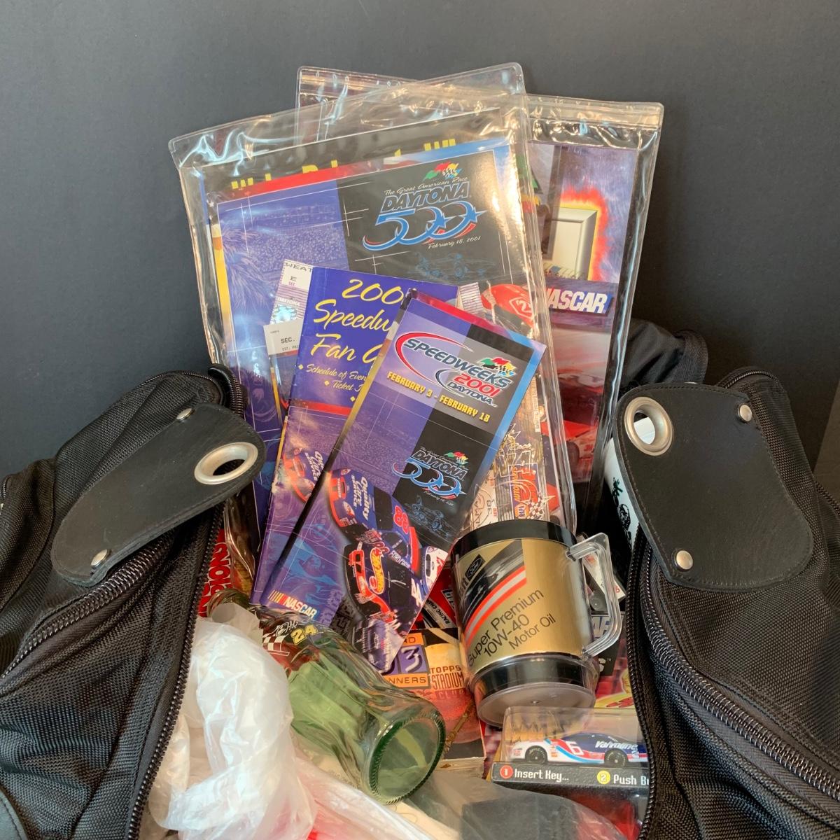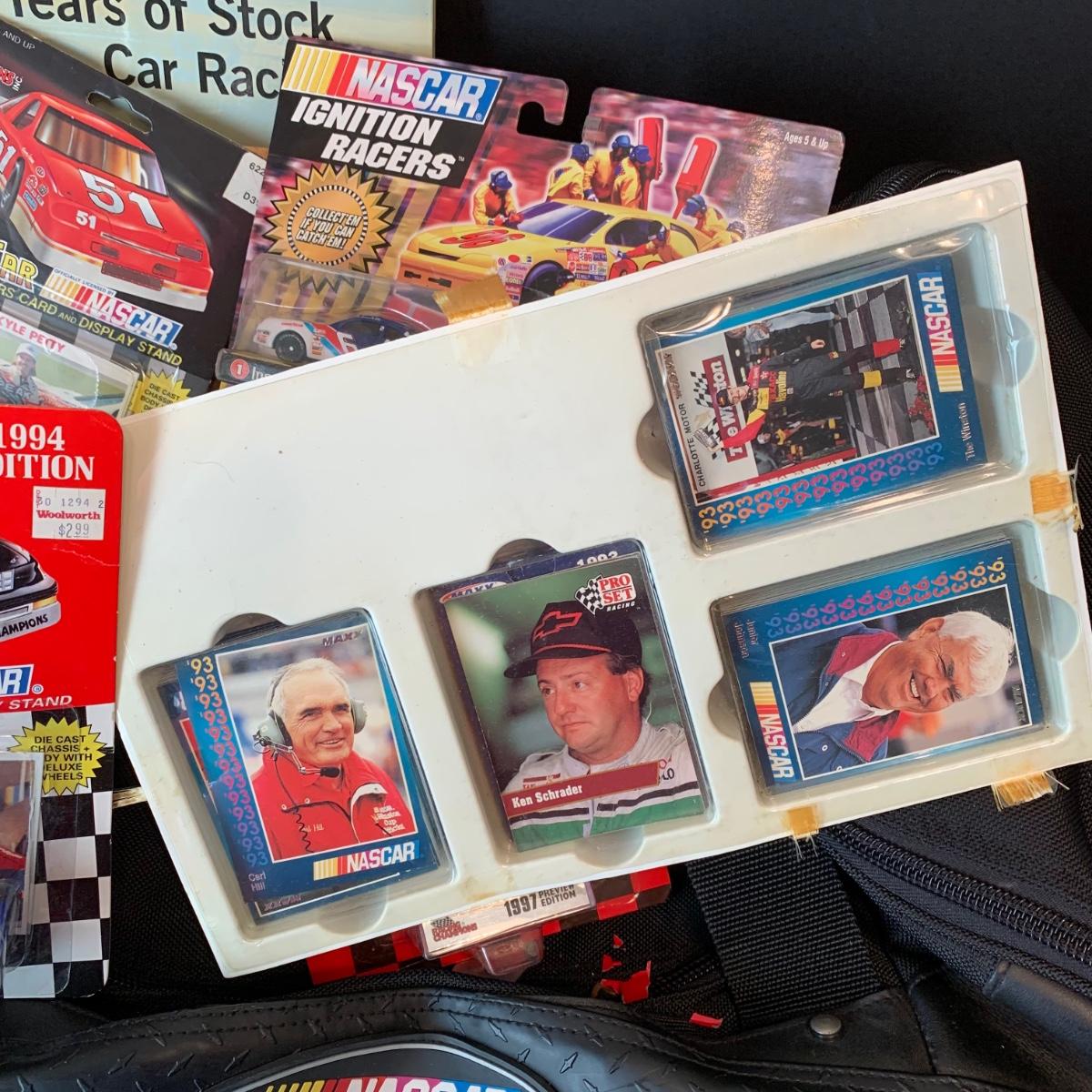 LOT 182R: Large Collection of Nascar Cars, Trading Cards, Duffle Bag etc.