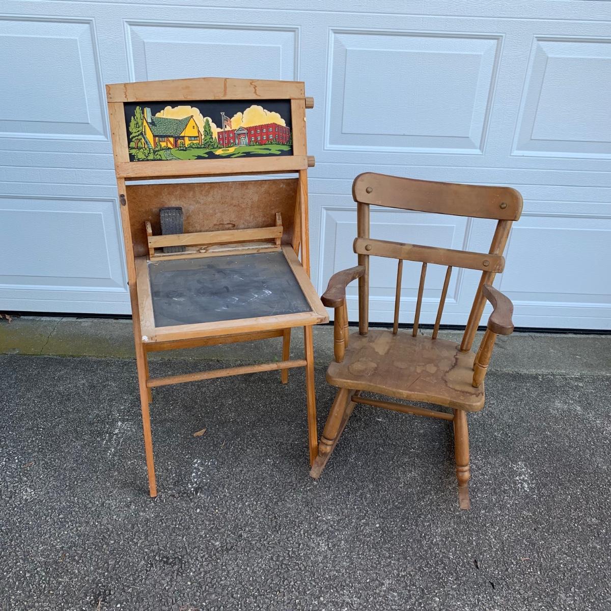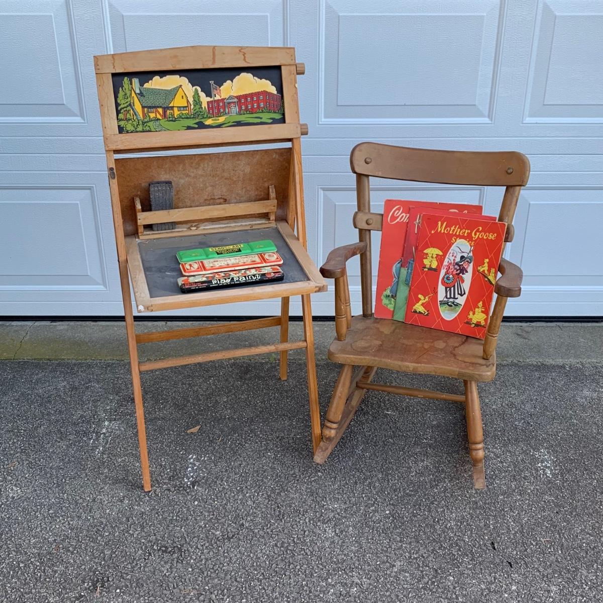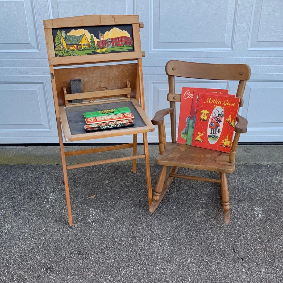 LOT: 186R: Childrens Chalkboard, Rocking Chair, Storybooks & More