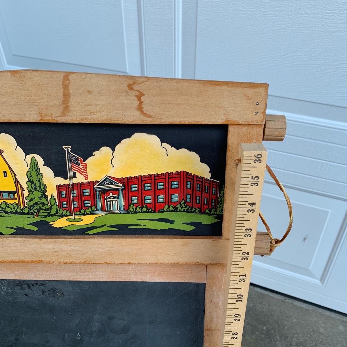Graphic on the chalkboard is a paper scroll with other scenes. Other scenes were not pictured in other not to caue any further damage to the paper.