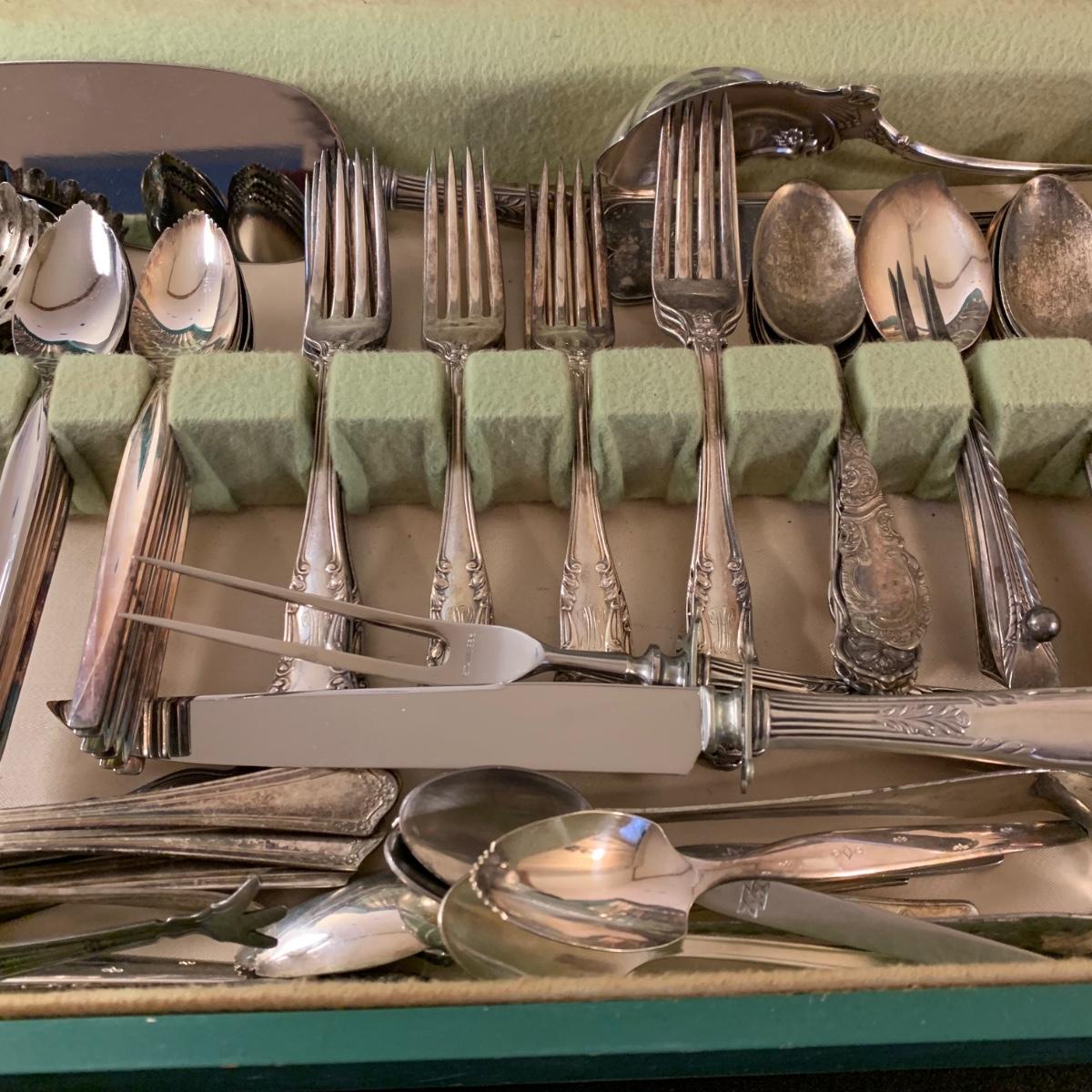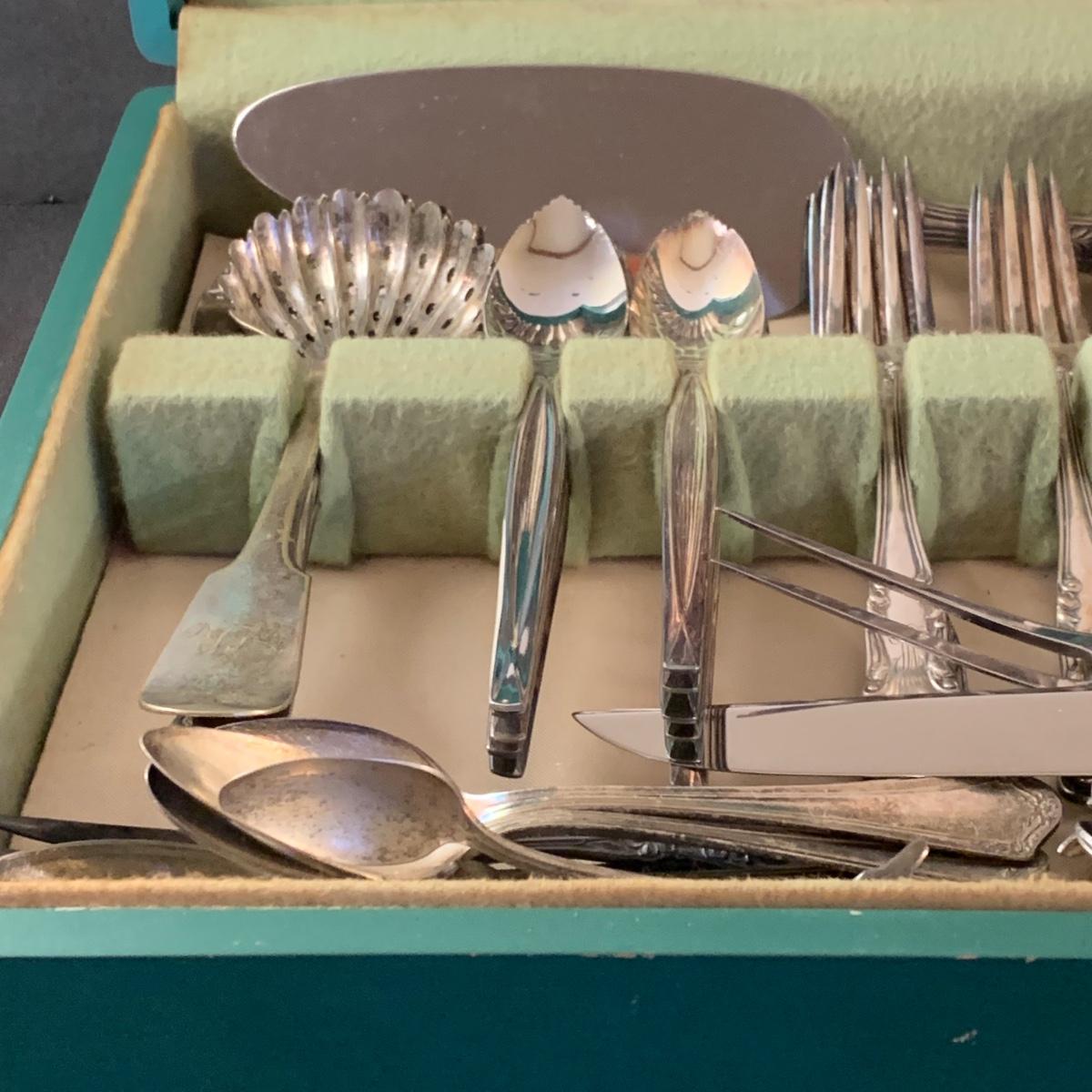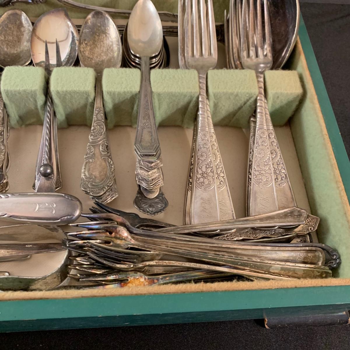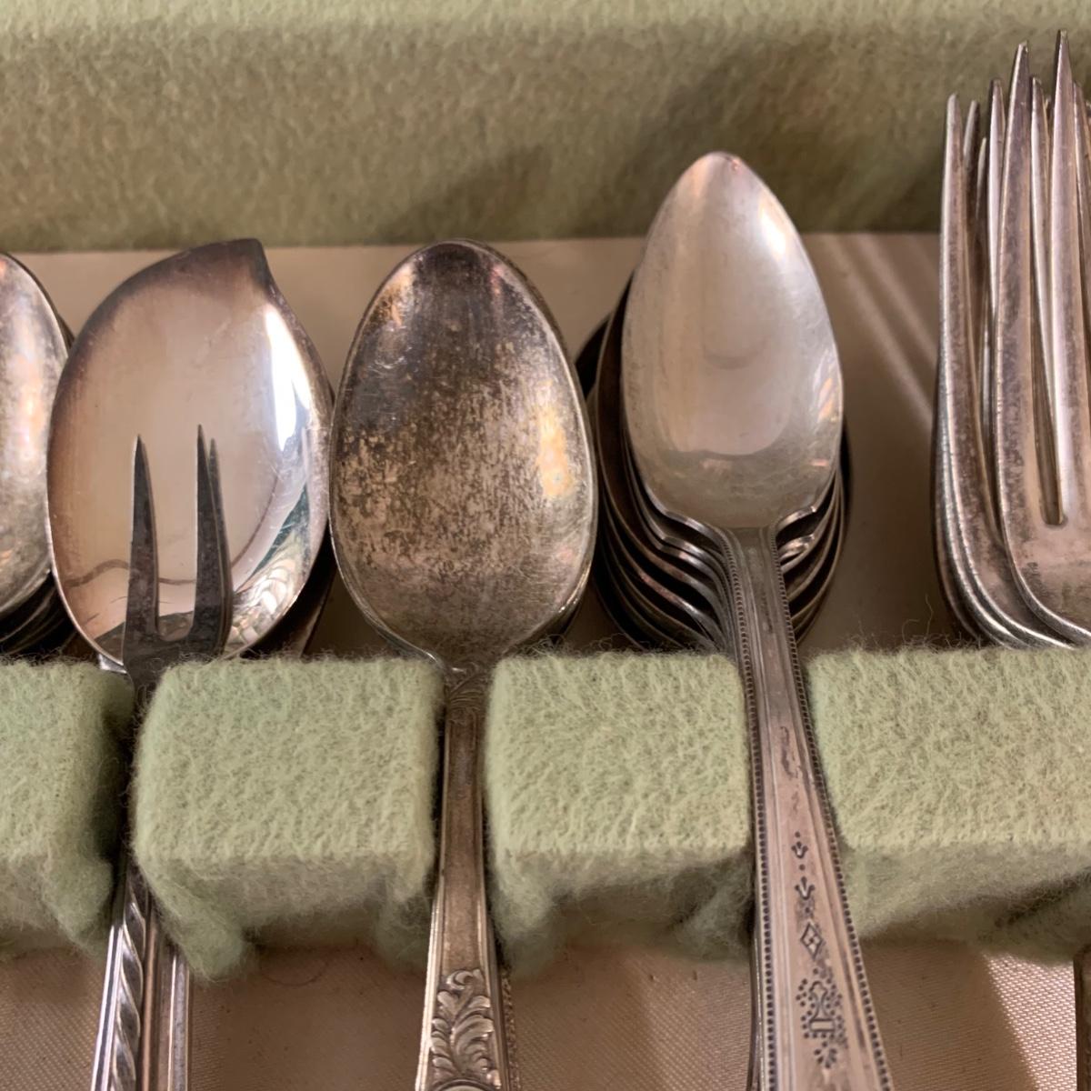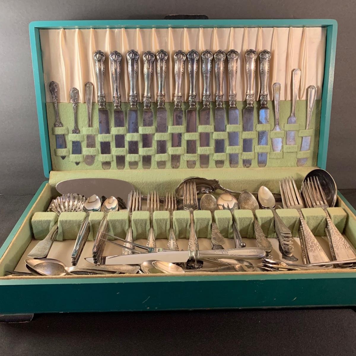 LOT 190R: Vintage Flatware w/Storage Box: Gorham, Wm Rogers & More