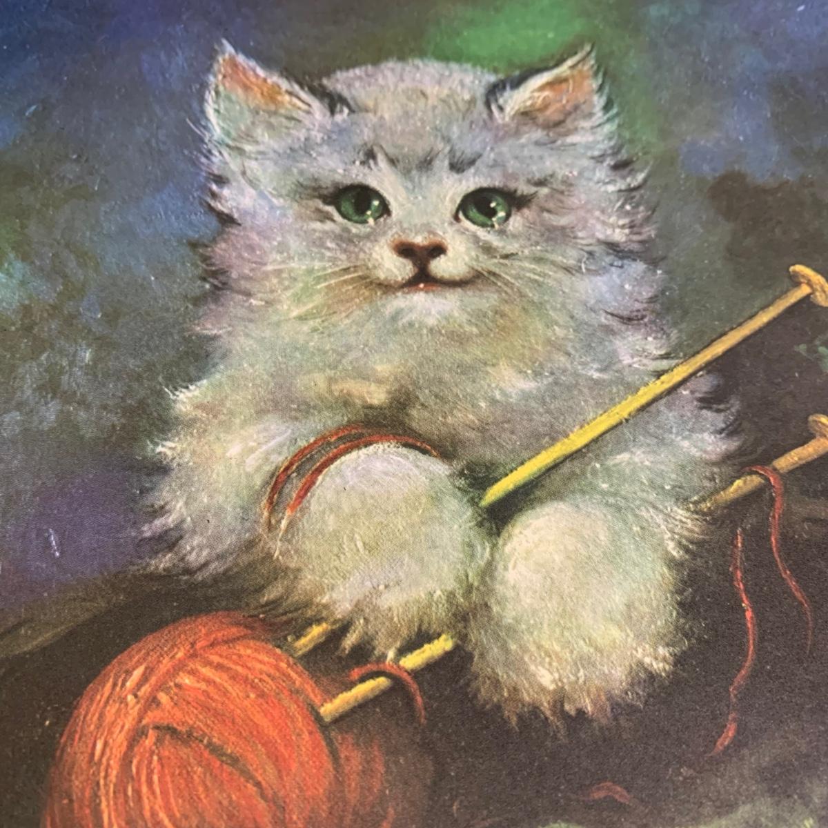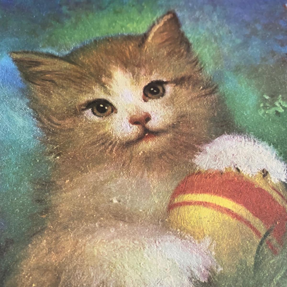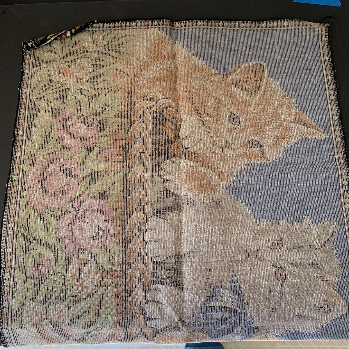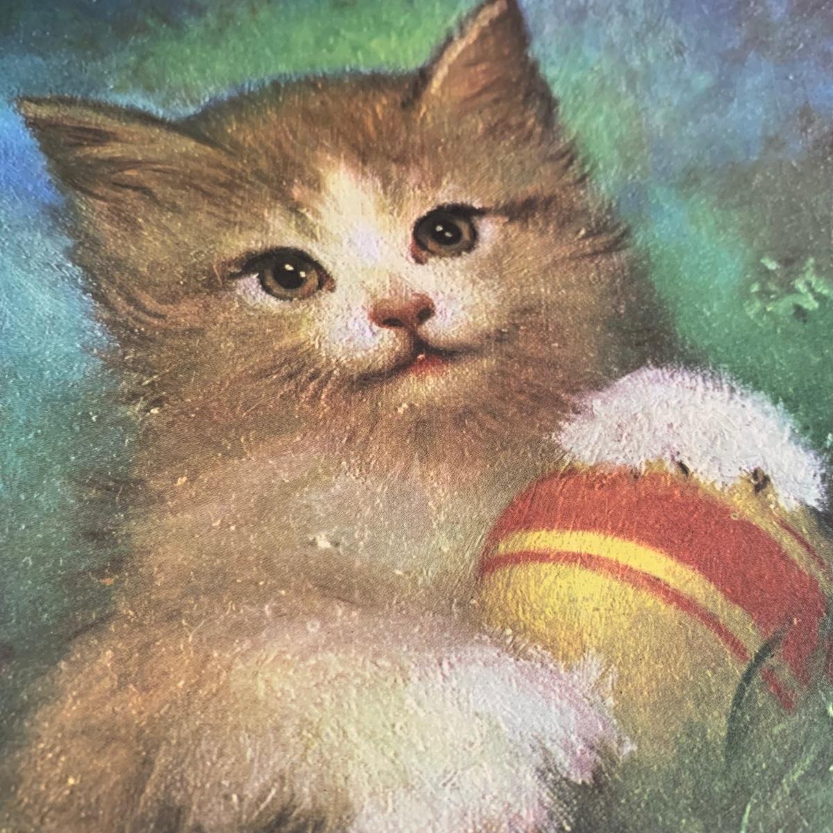 LOT 197R: Cats & Dogs: 3-Kittens Tapestry, Florence Kroger Kitten Cat Lithograph Prints, Get Well Doggy Planters & More