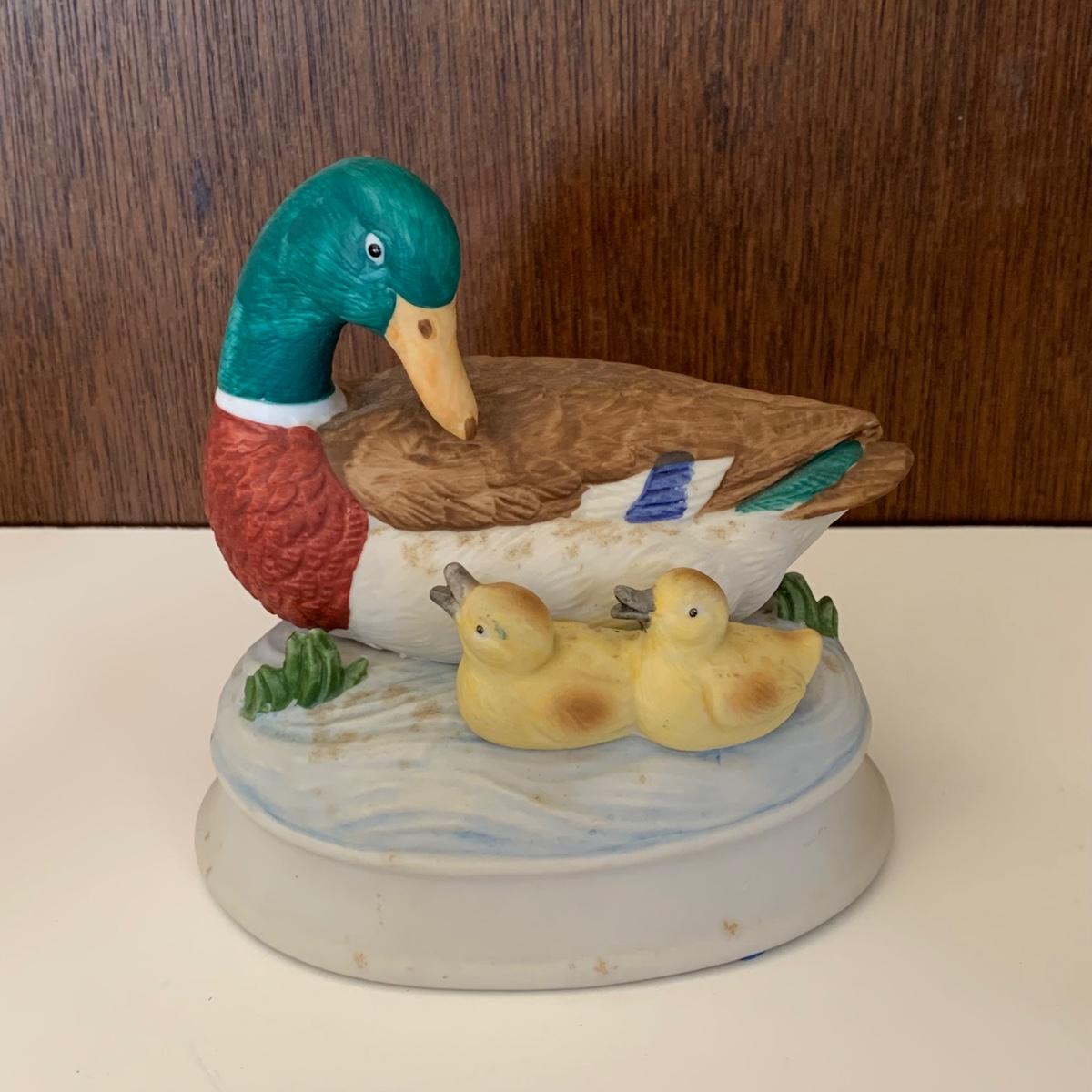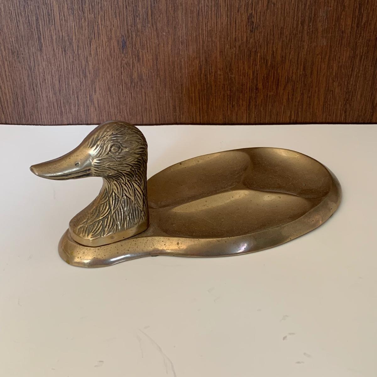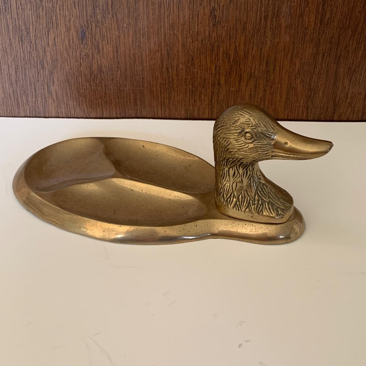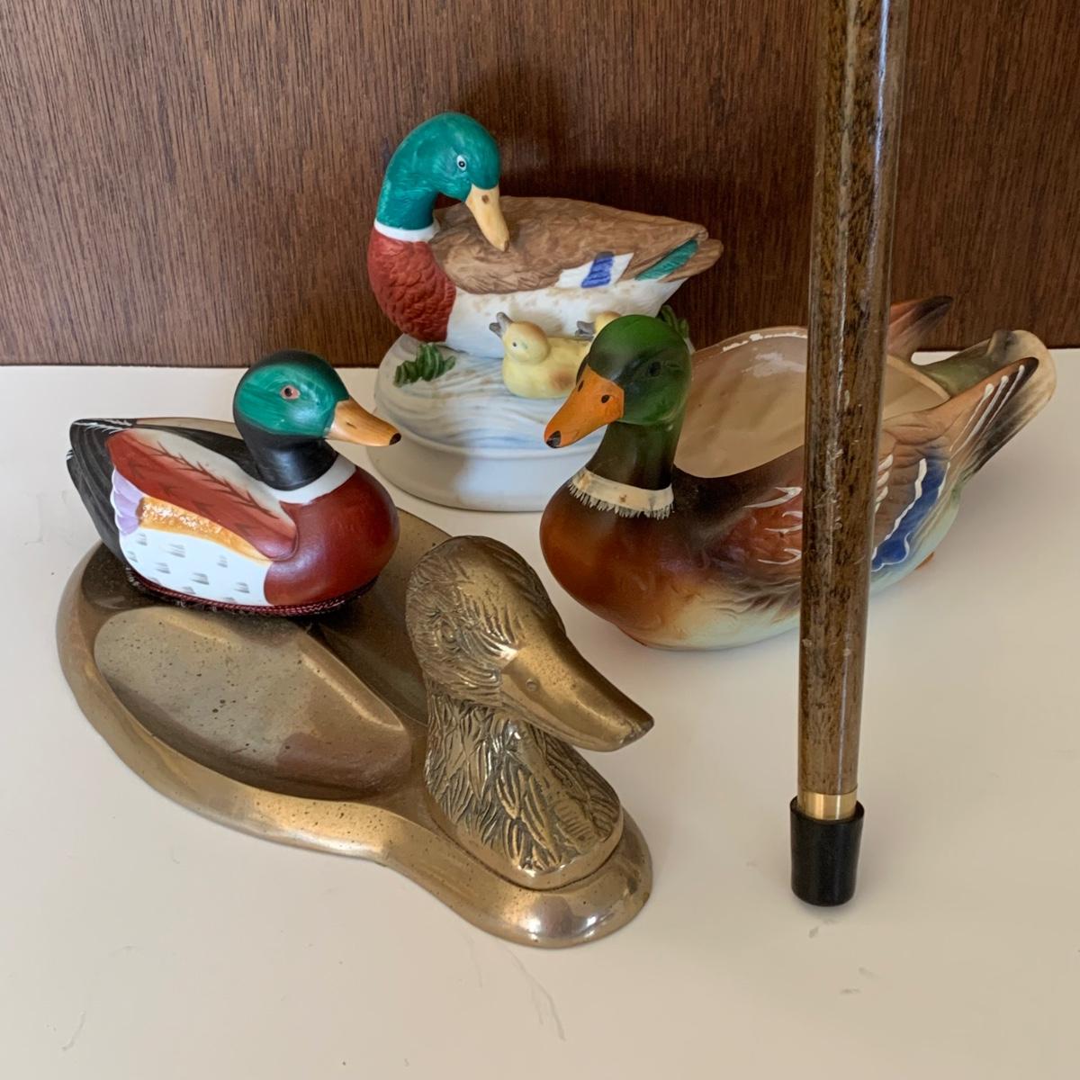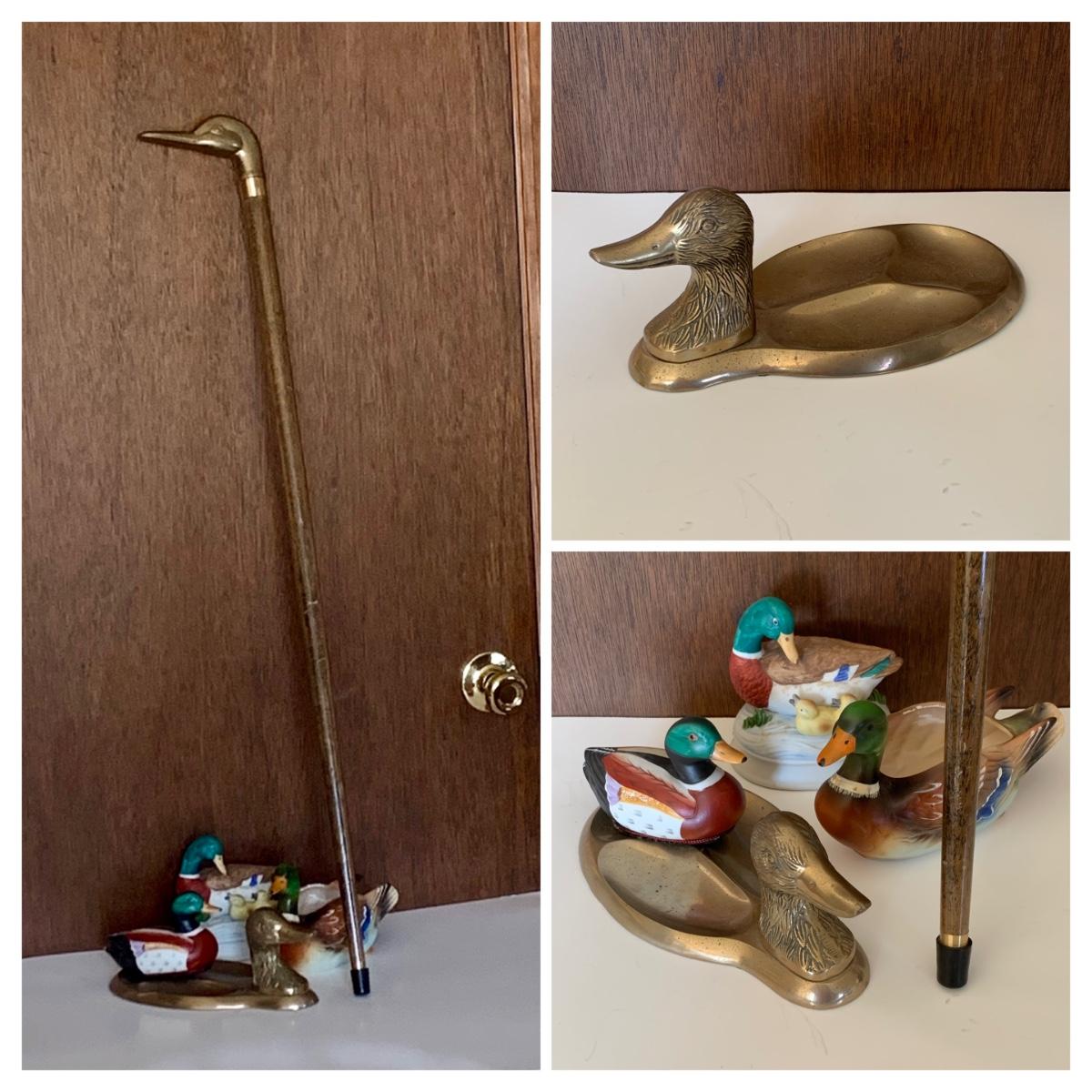 LOT 198R: Brass Duck Head Walking Cane, Vintage Solid Brass Mallard Duck Trinket/Valet, Gorham Music Box & ore