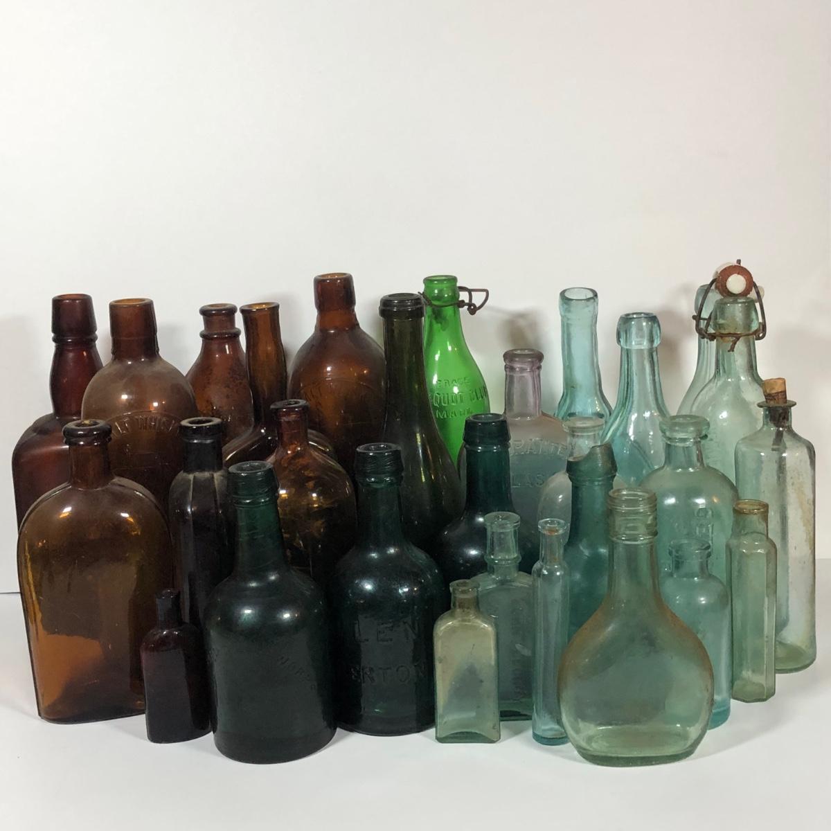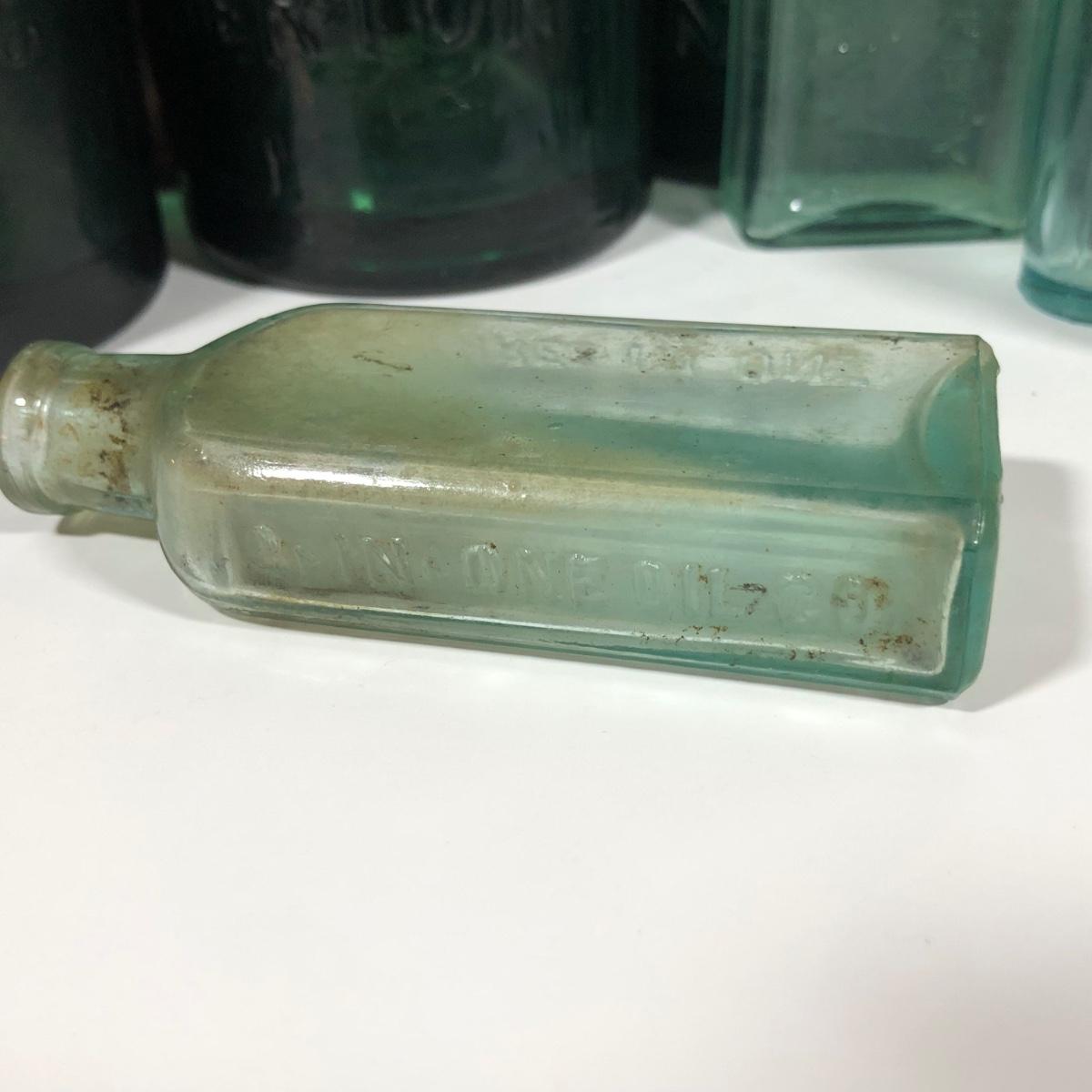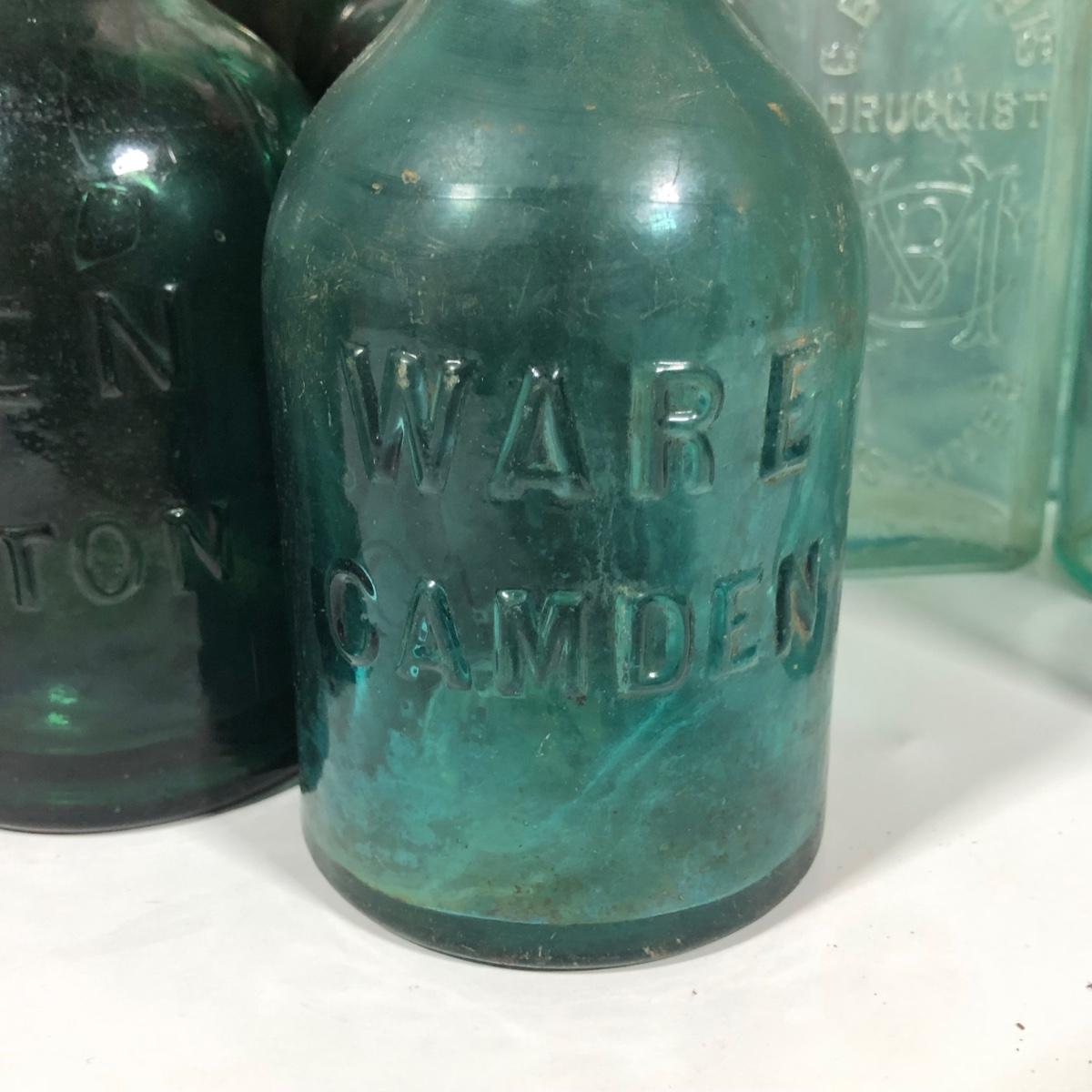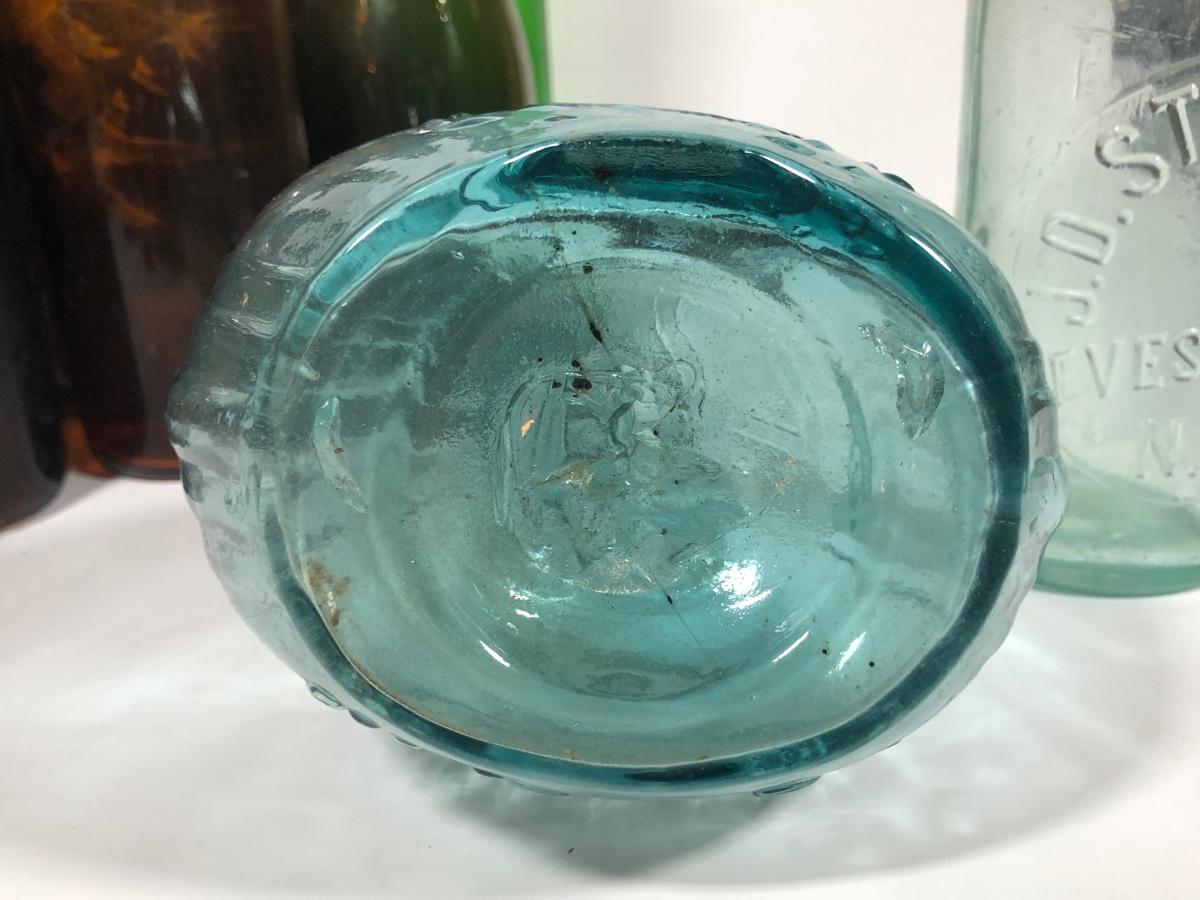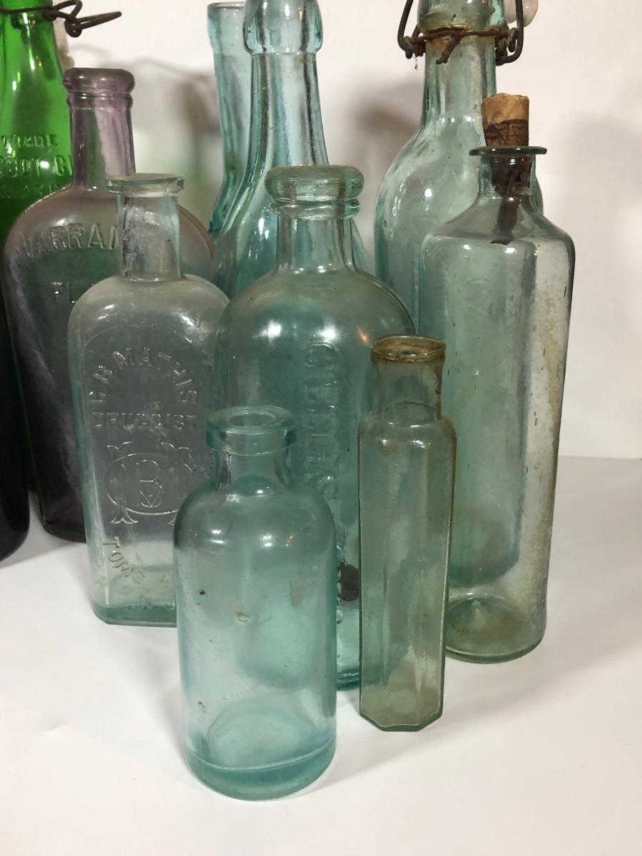 LOT 12L: Vintage Blue, Green & Brown Glass Bottles