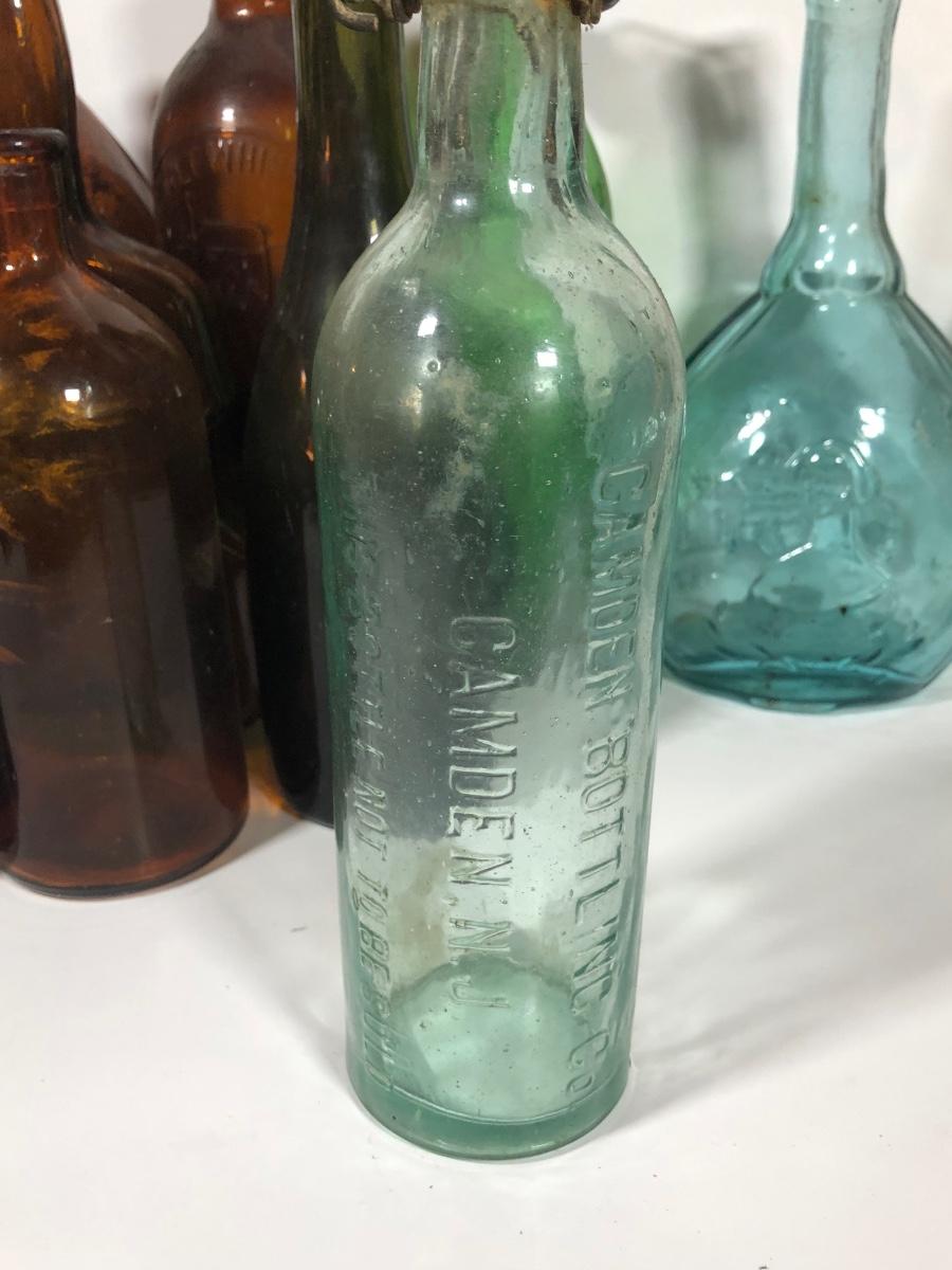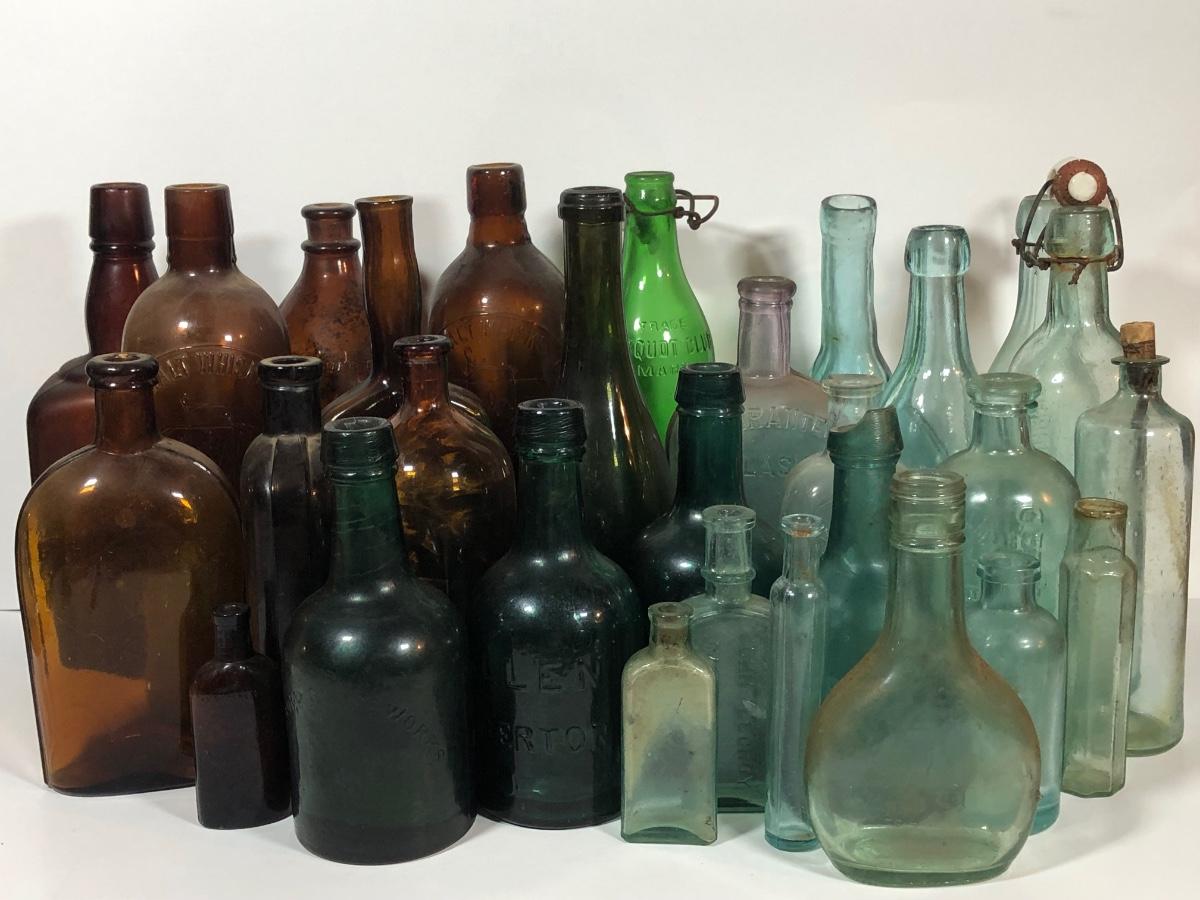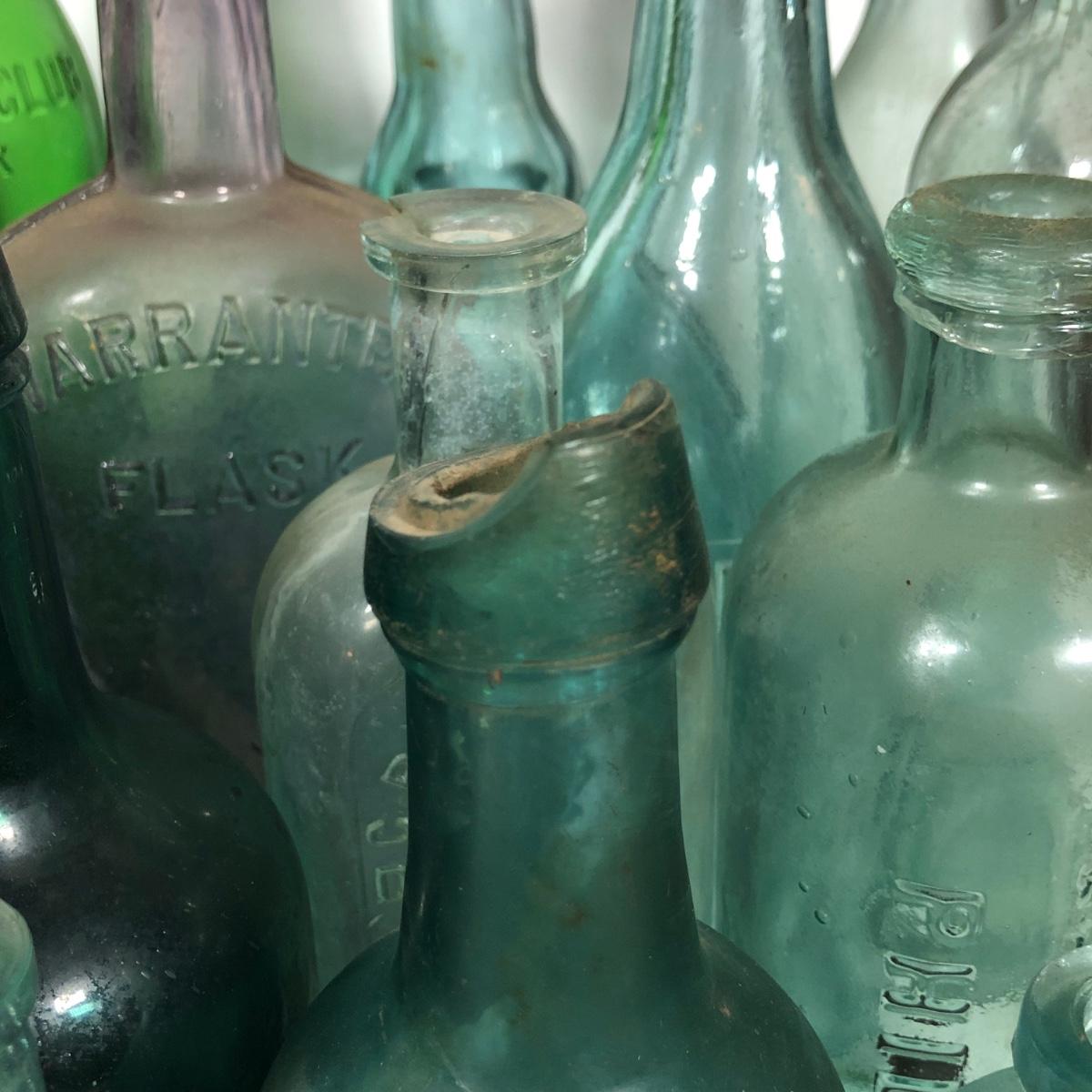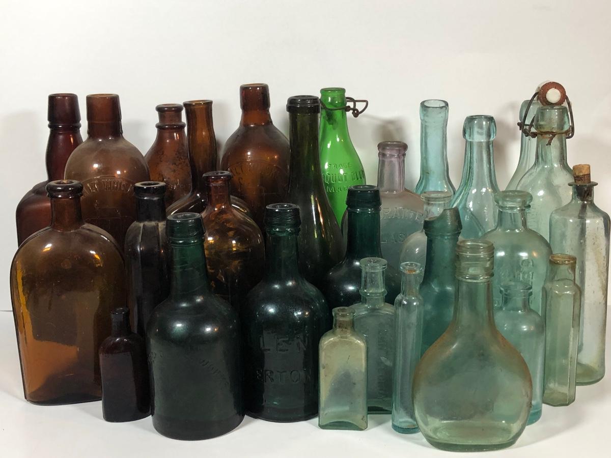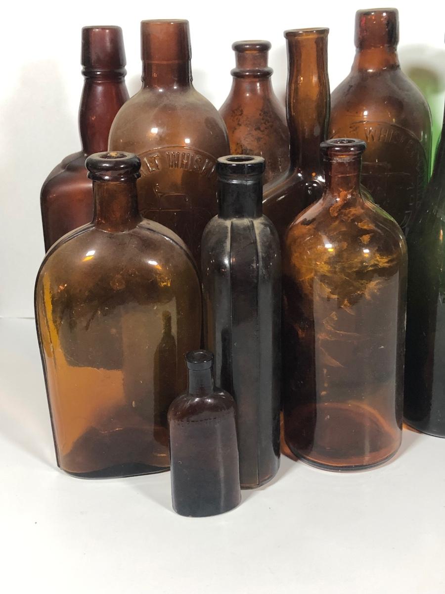 LOT 12L: Vintage Blue, Green & Brown Glass Bottles