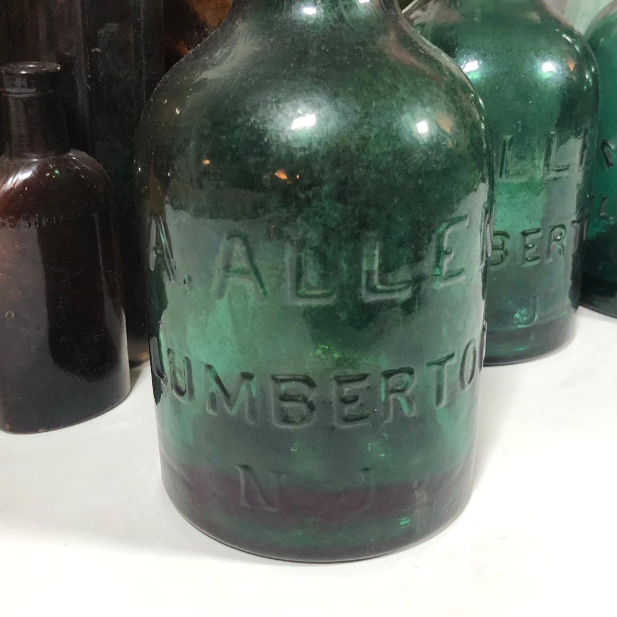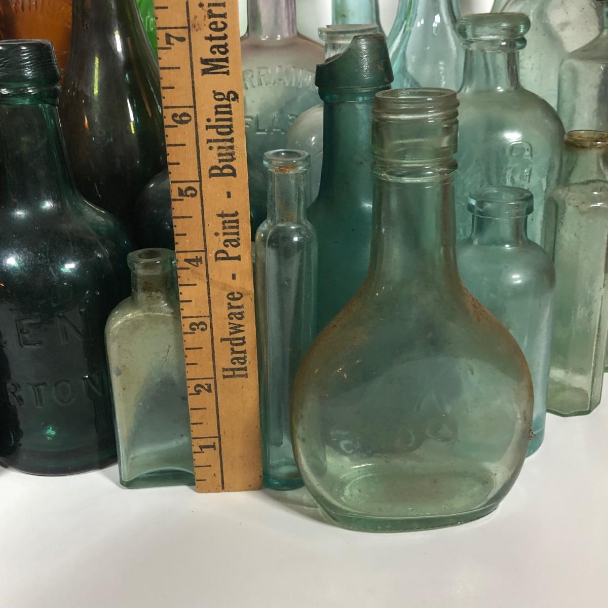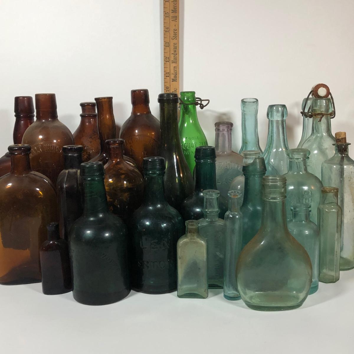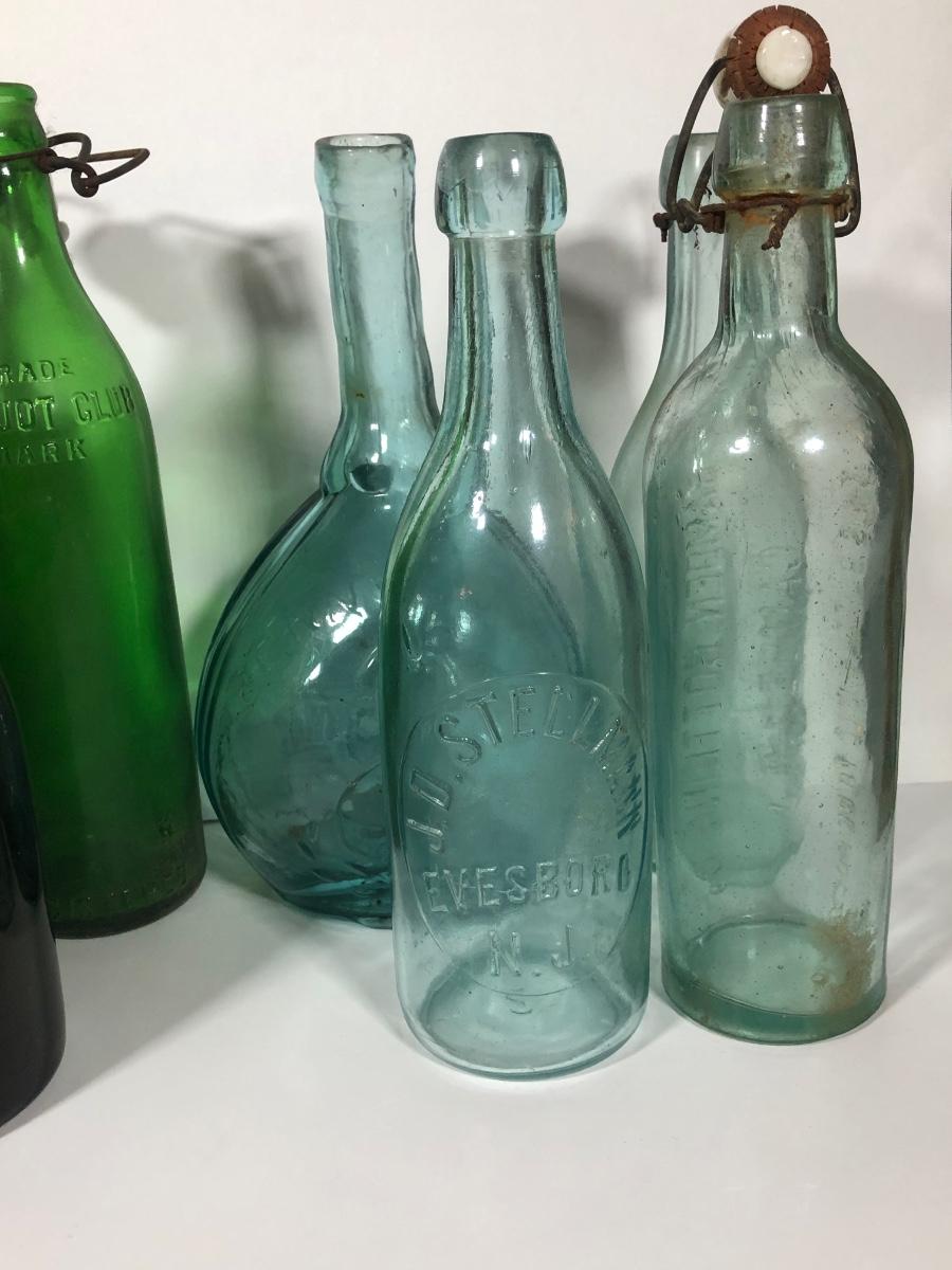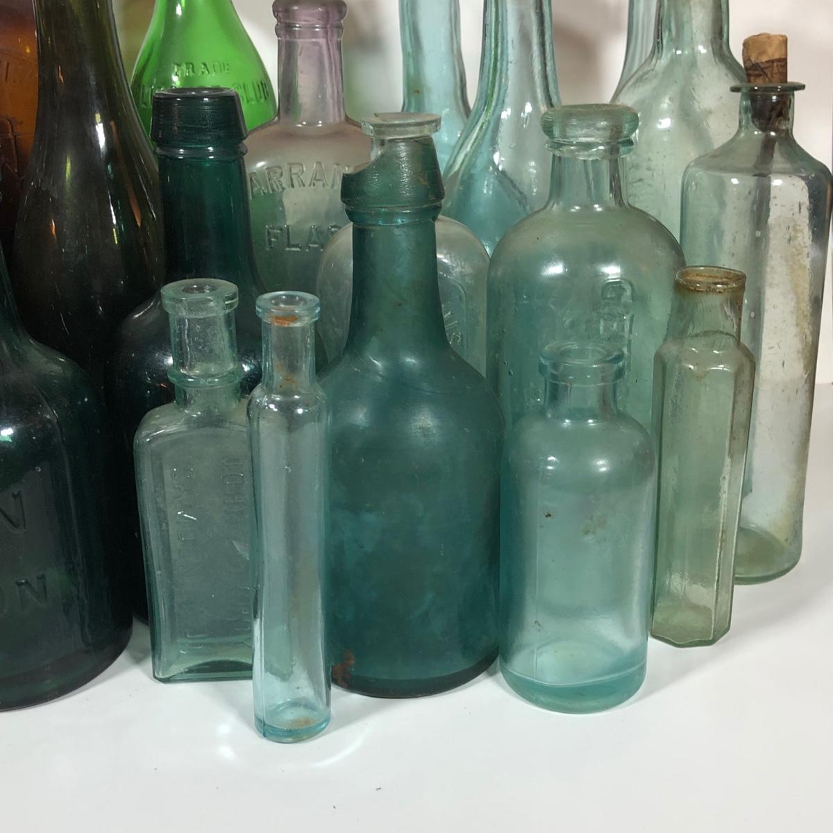 LOT 12L: Vintage Blue, Green & Brown Glass Bottles