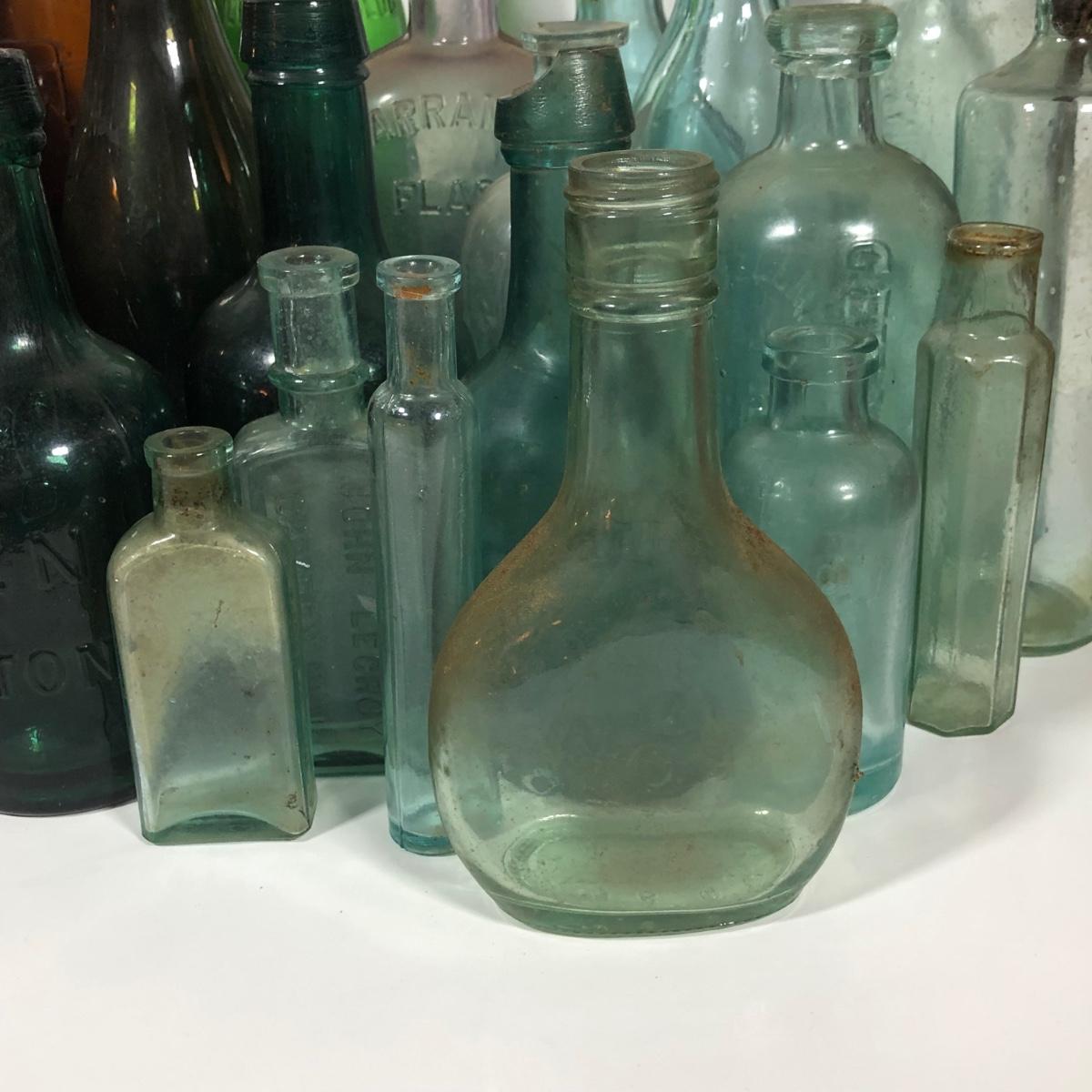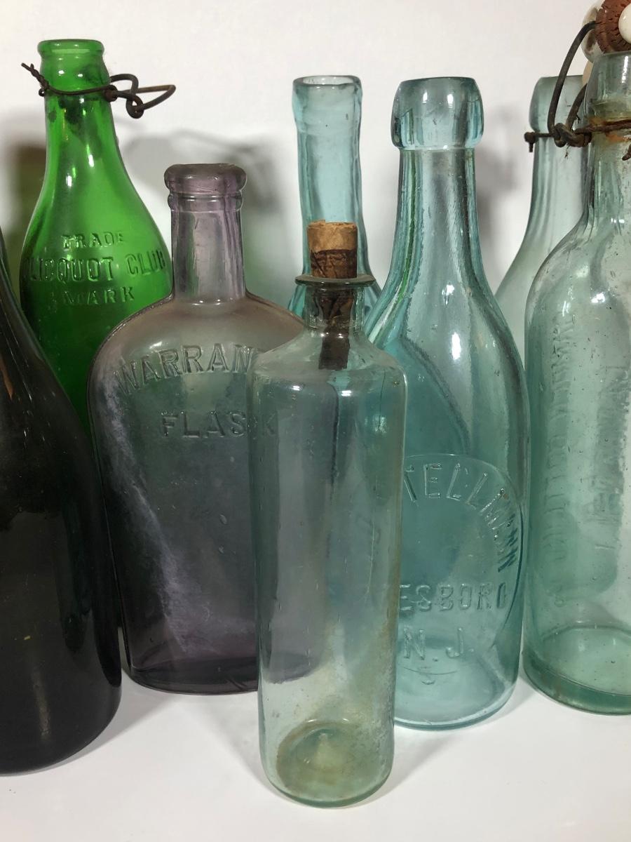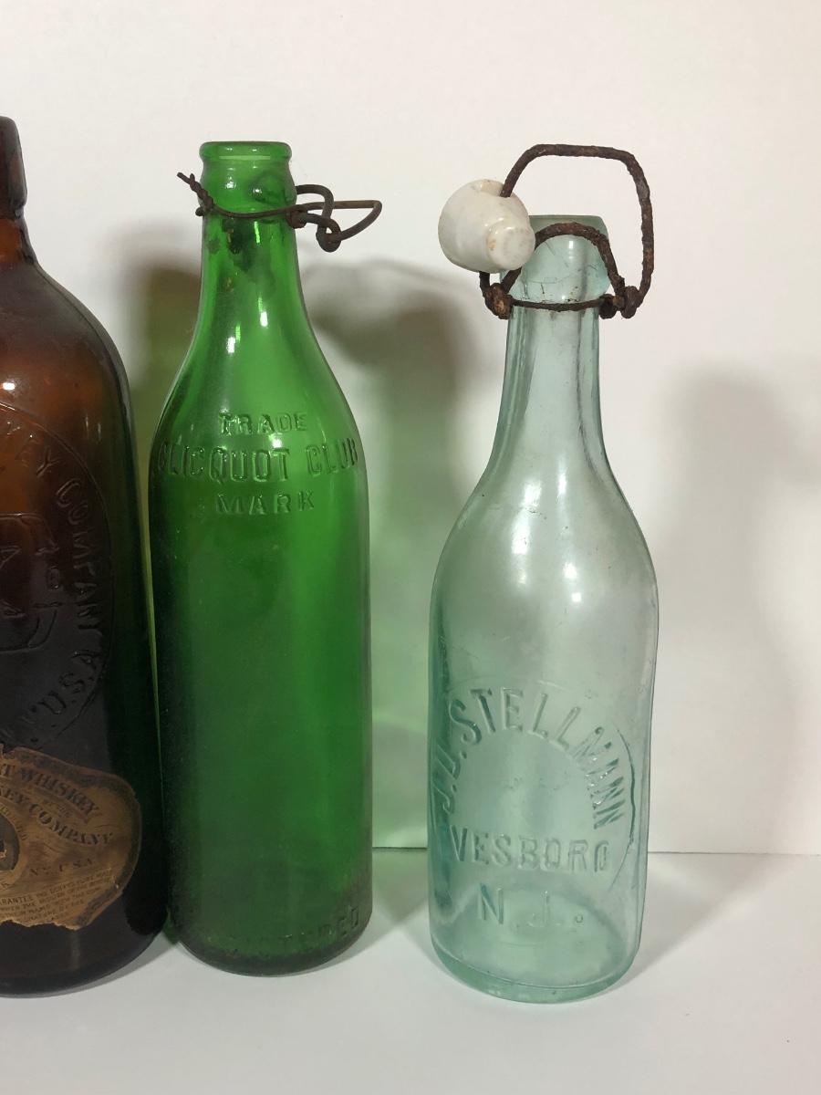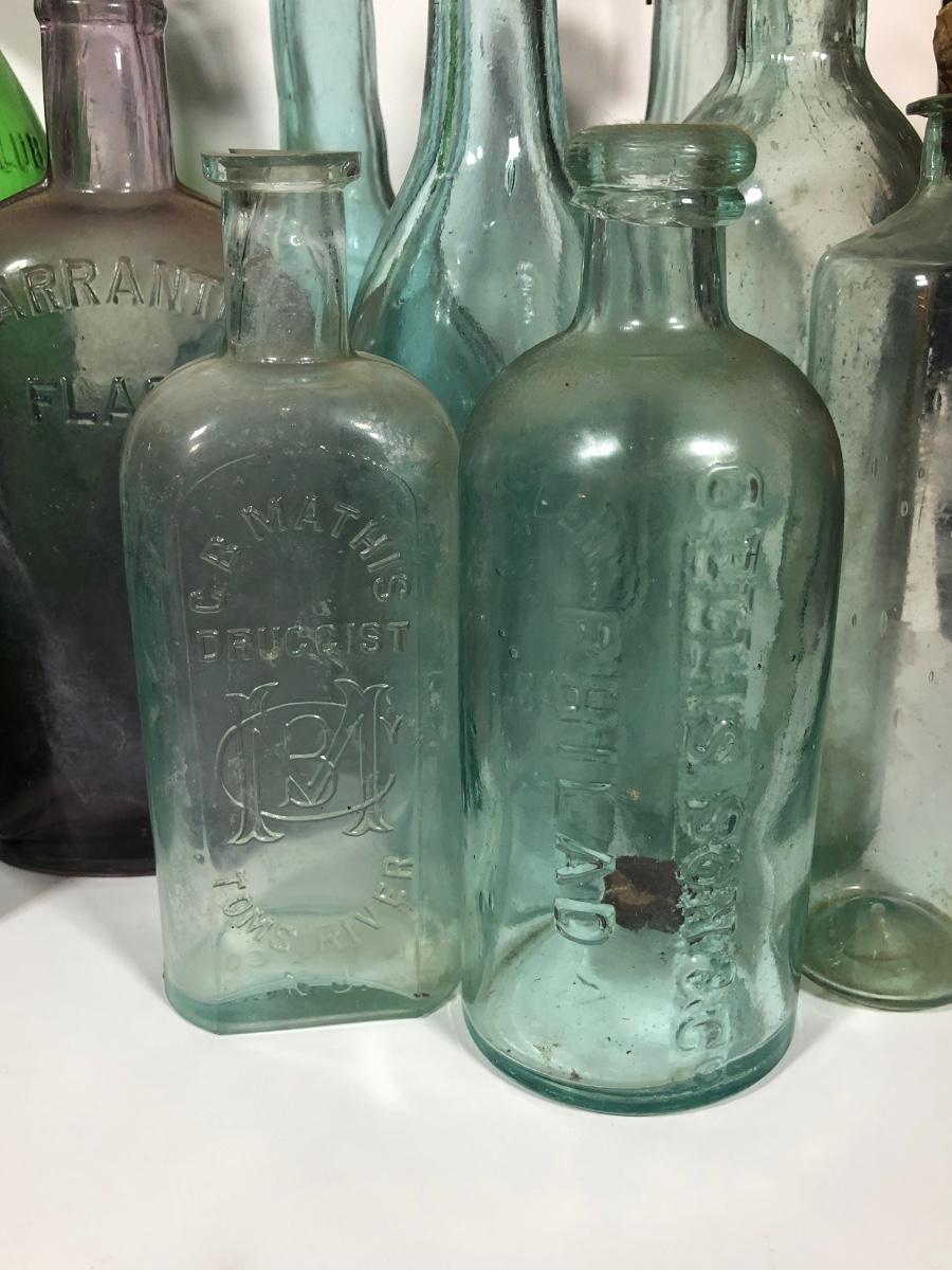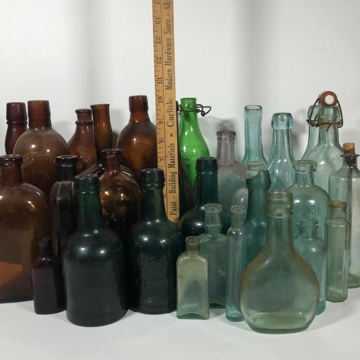 LOT 12L: Vintage Blue, Green & Brown Glass Bottles
